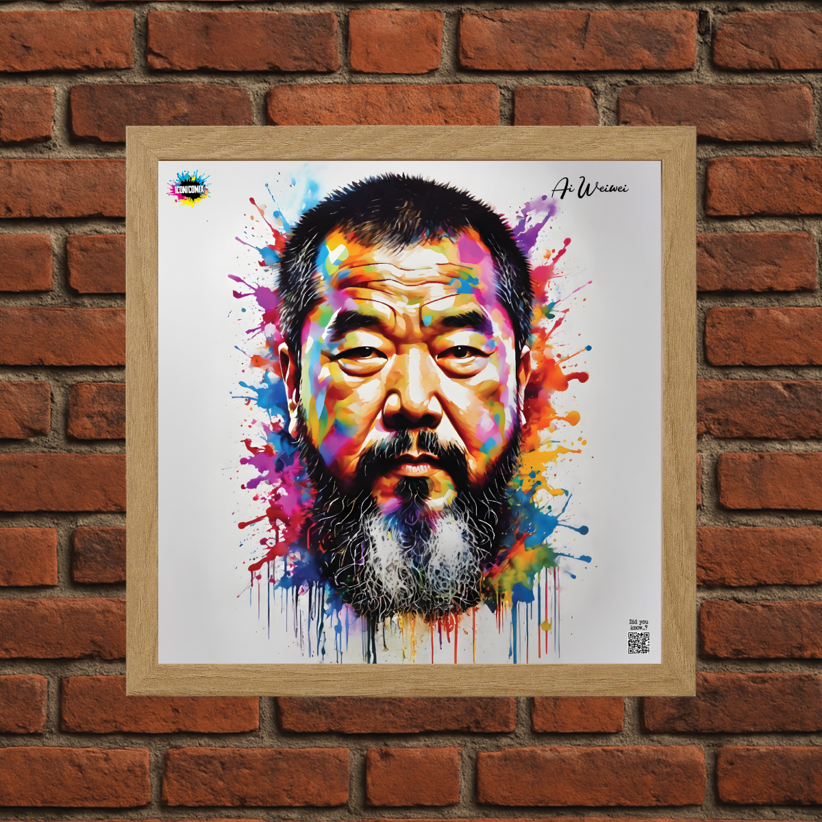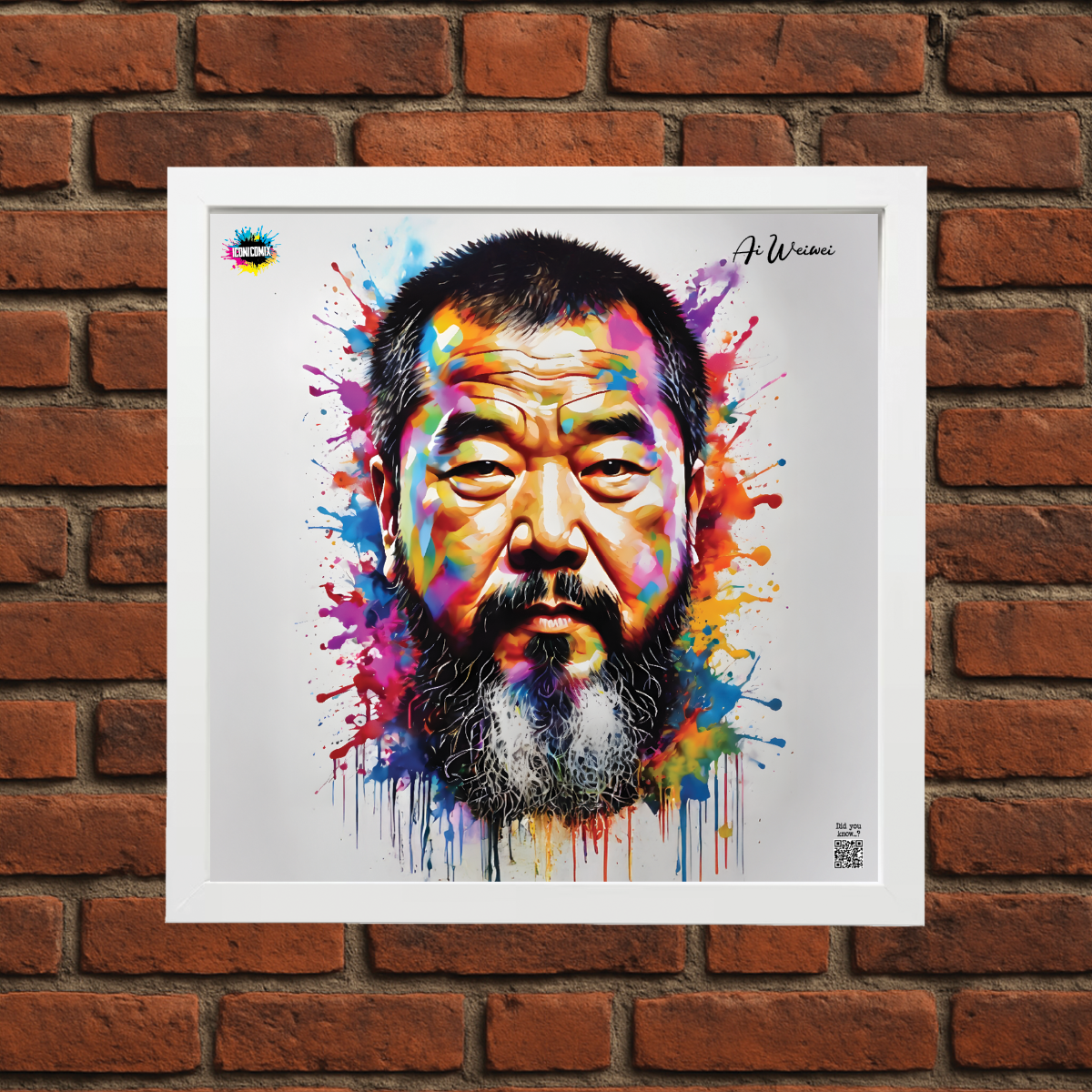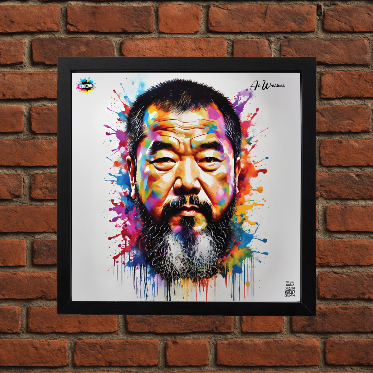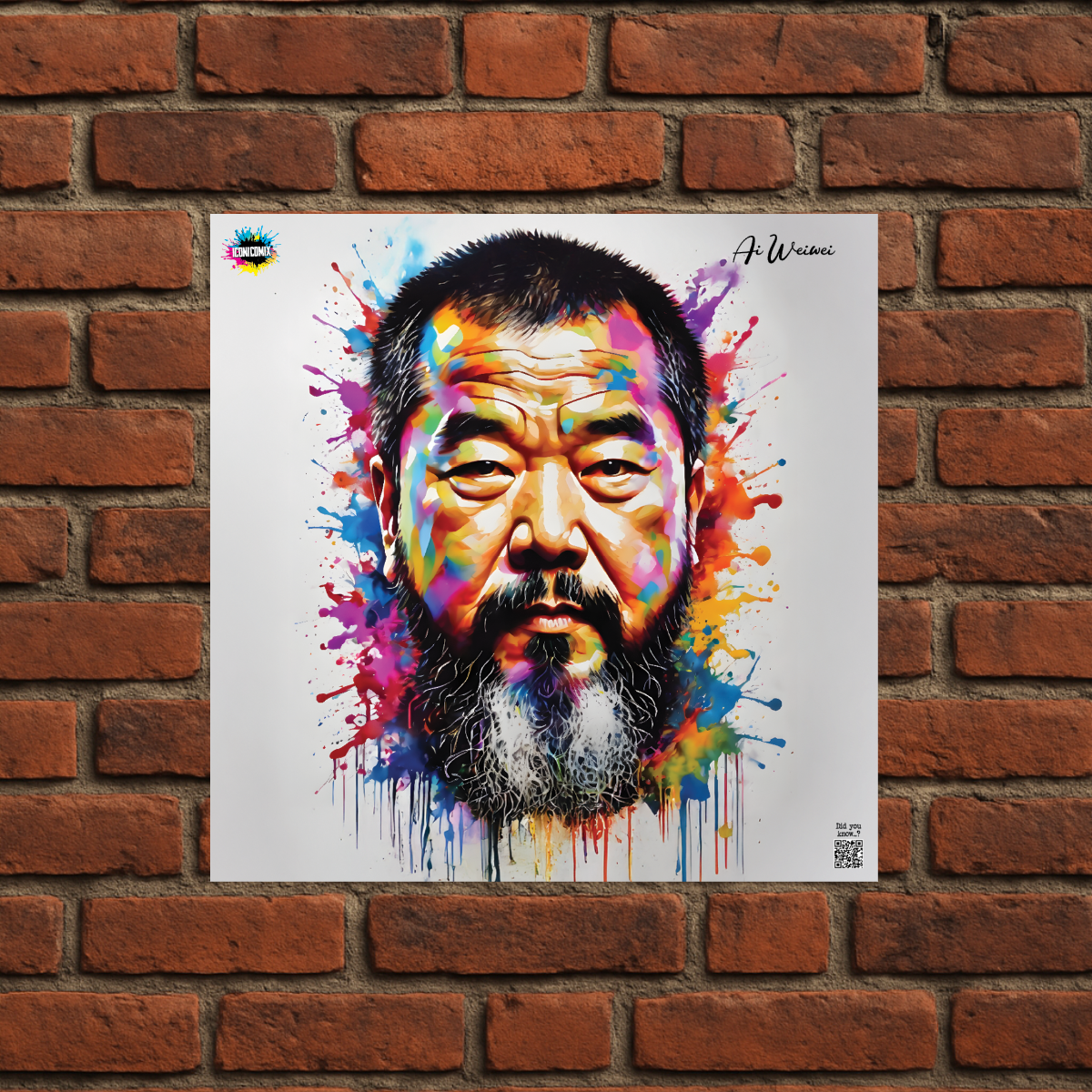 In ogni nostra grafica è presente anche un QR code che reindirizza al sito iconicomix.com, alla pagina ufficiale dell’icona che hai scelto. Una porta digitale che racconta la sua storia, le sue frasi e il suo mondo.
