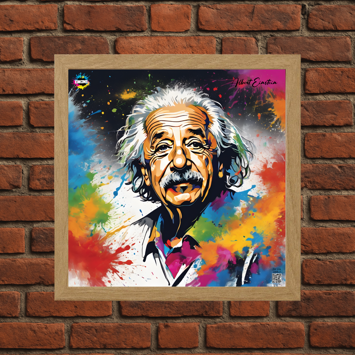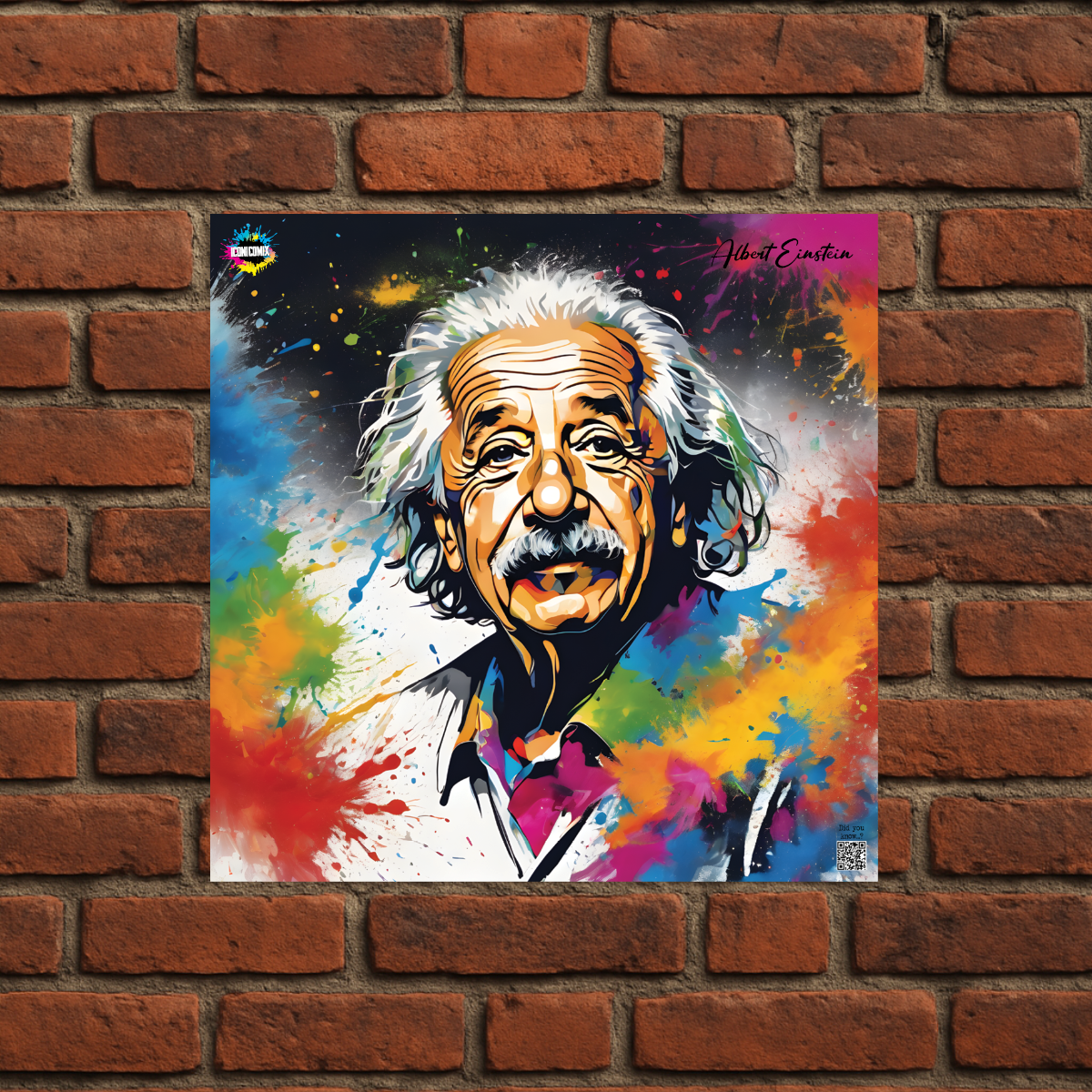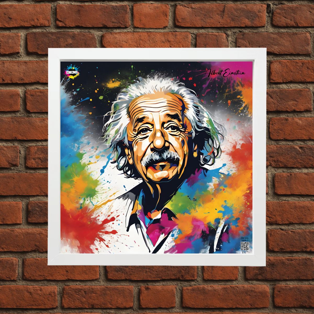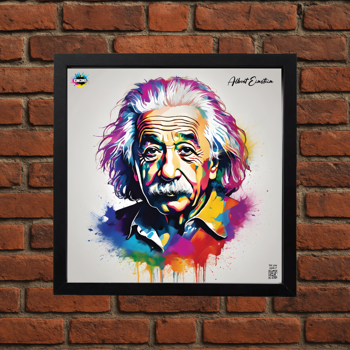 In ogni nostra grafica è presente anche un QR code che reindirizza al sito iconicomix.com, alla pagina ufficiale dell’icona che hai scelto. Una porta digitale che racconta la sua storia, le sue frasi e il suo mondo.