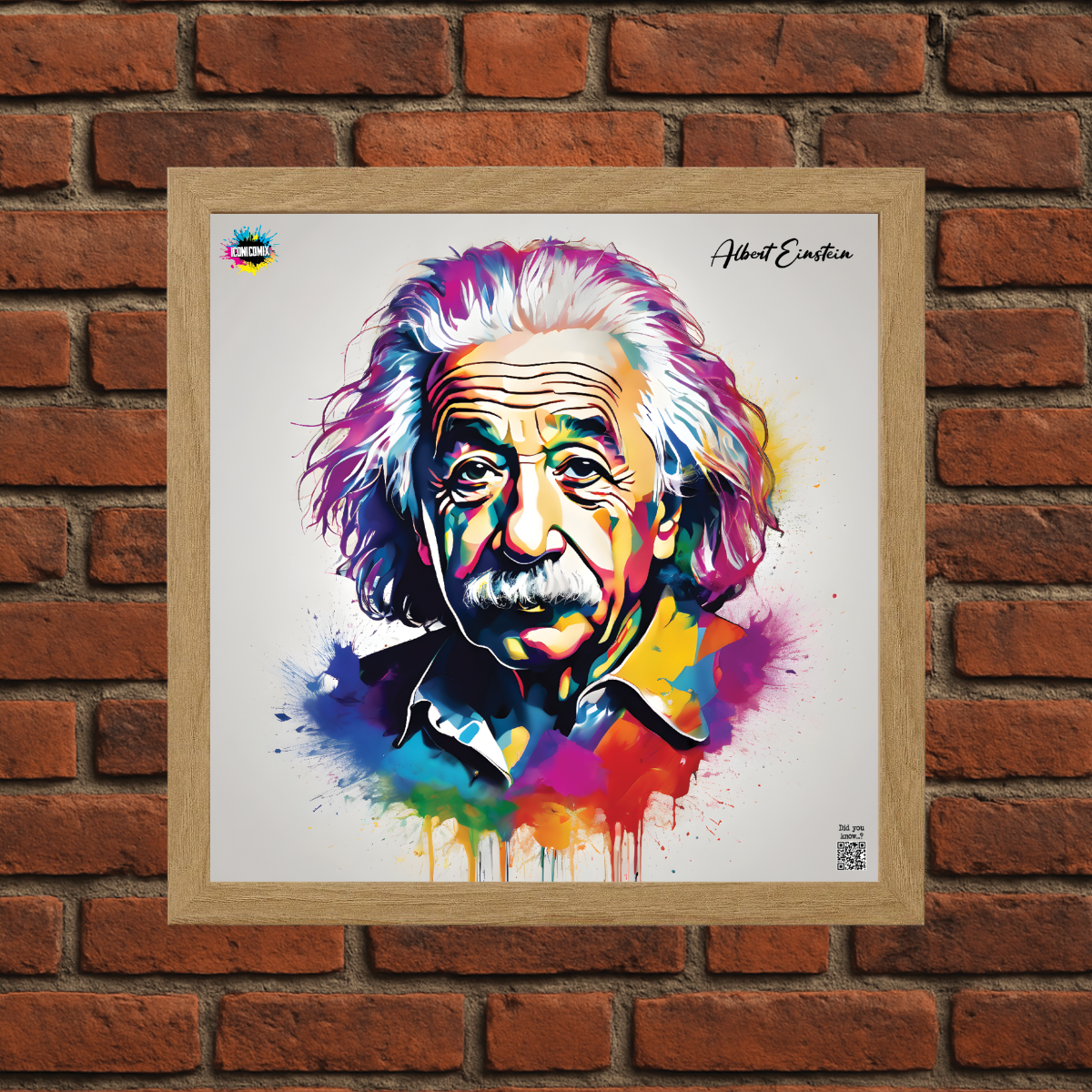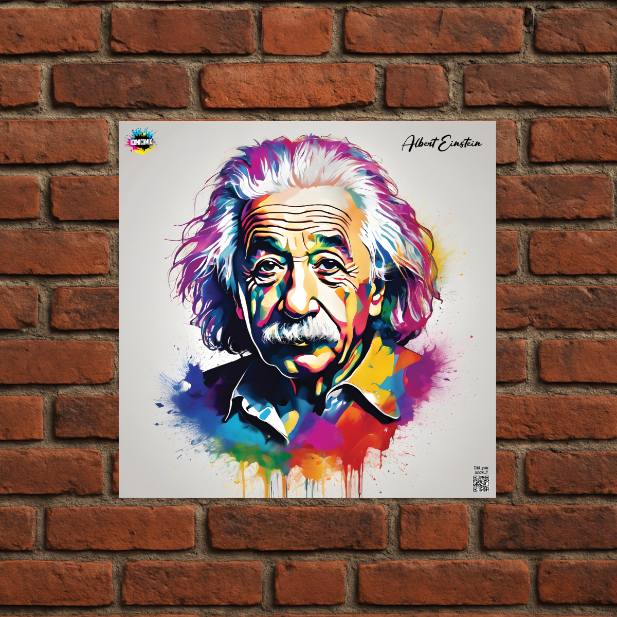 In ogni nostra grafica è presente anche un QR code che reindirizza al sito iconicomix.com, alla pagina ufficiale dell’icona che hai scelto. Una porta digitale che racconta la sua storia, le sue frasi e il suo mondo.