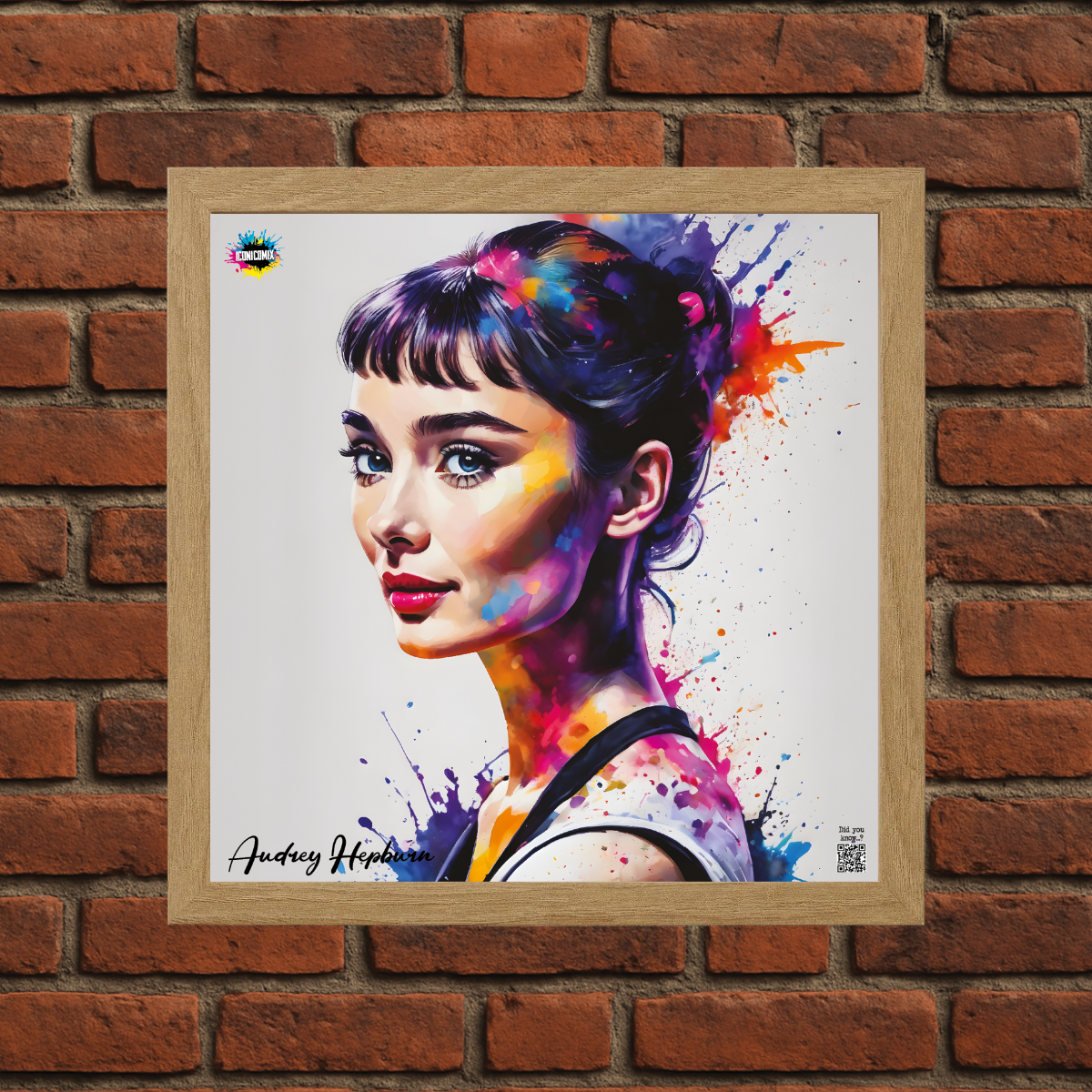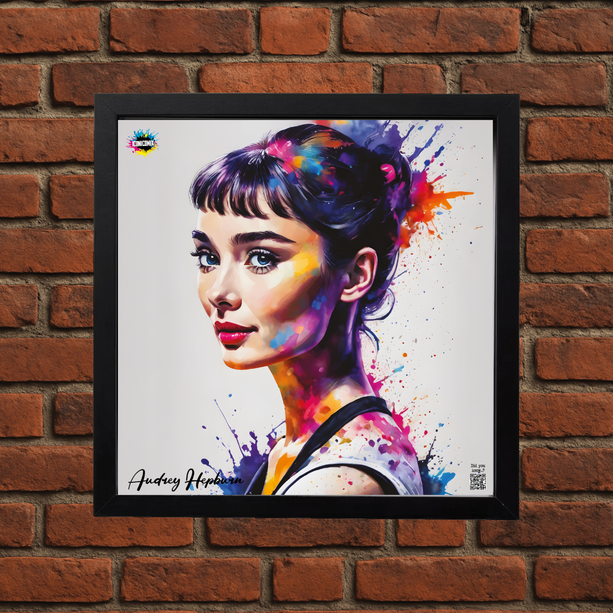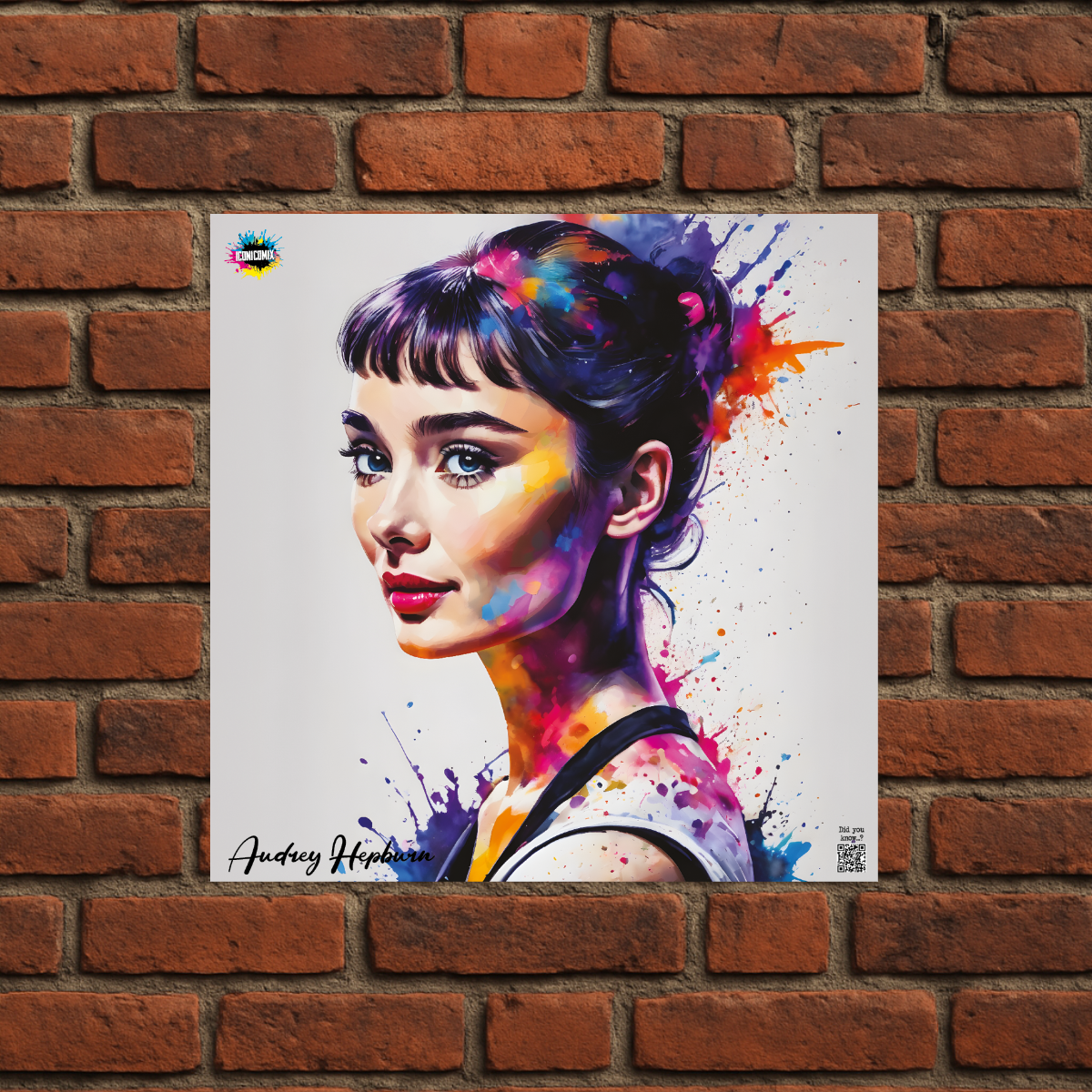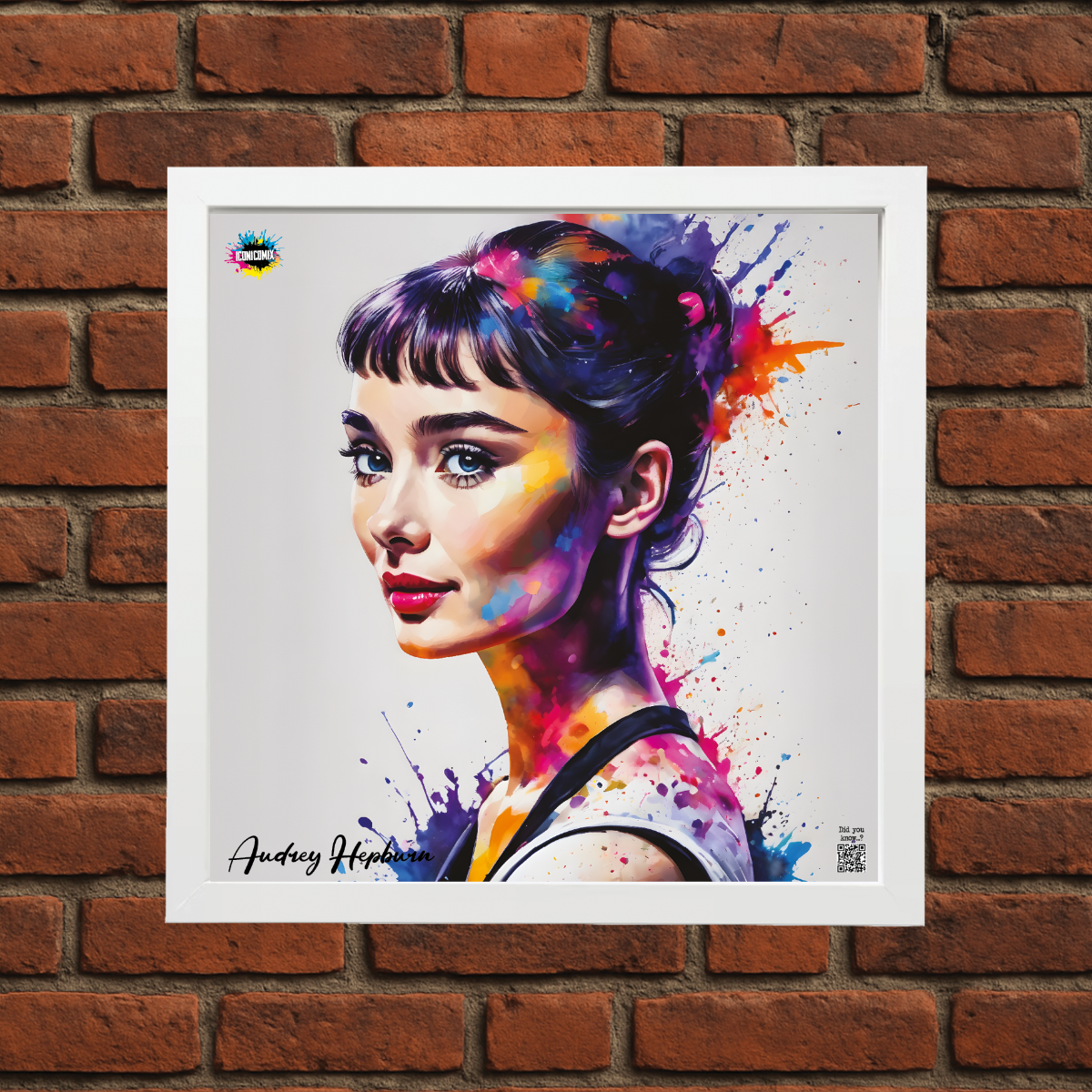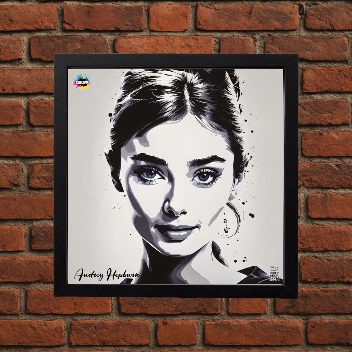 In ogni nostra grafica è presente anche un QR code che reindirizza al sito iconicomix.com, alla pagina ufficiale dell’icona che hai scelto. Una porta digitale che racconta la sua storia, le sue frasi e il suo mondo.