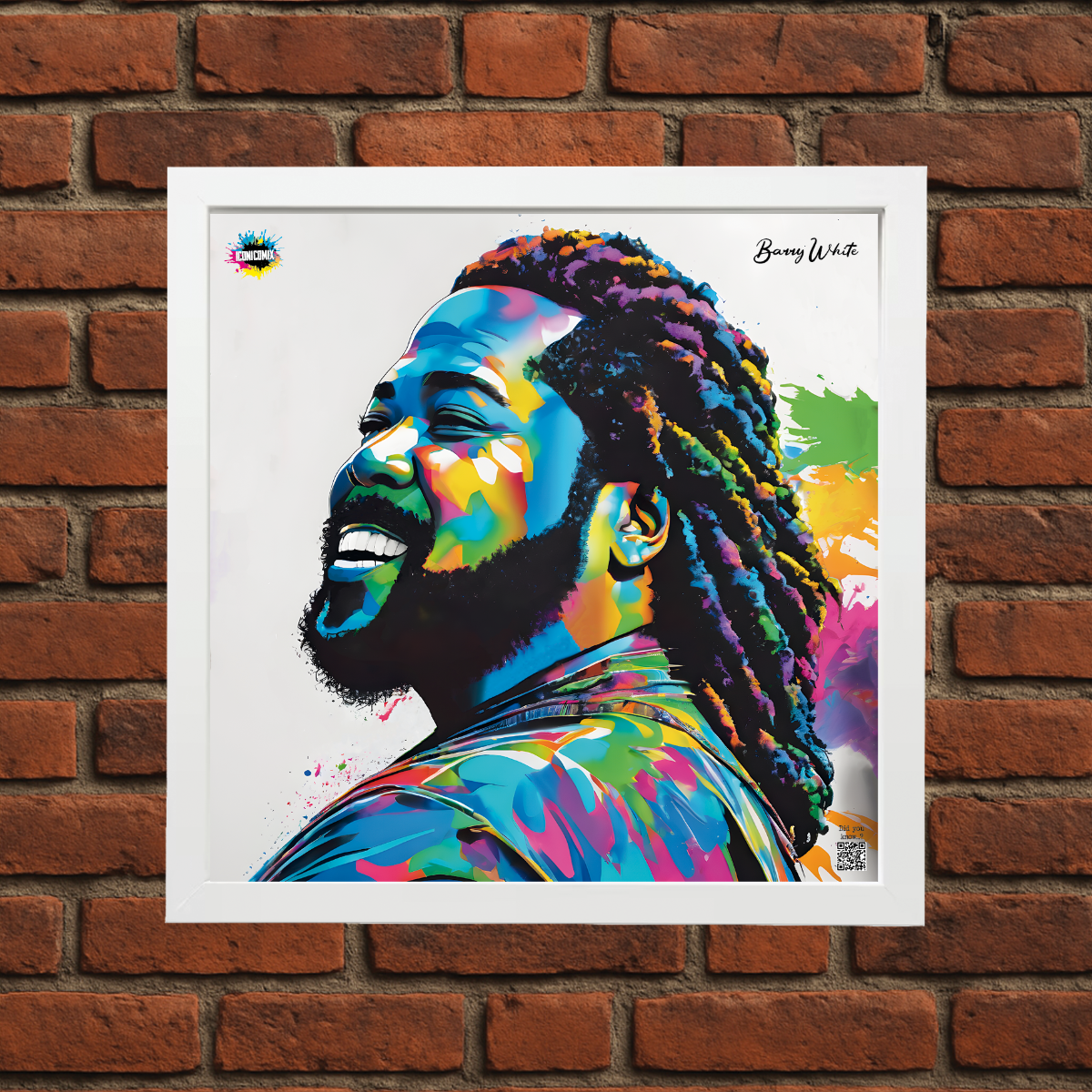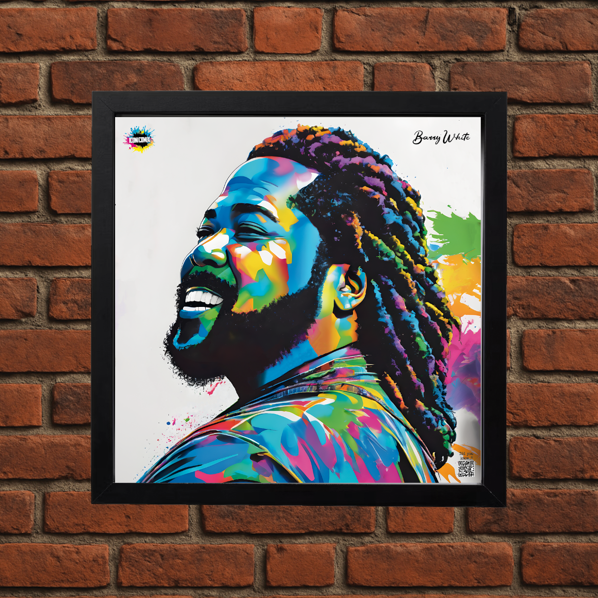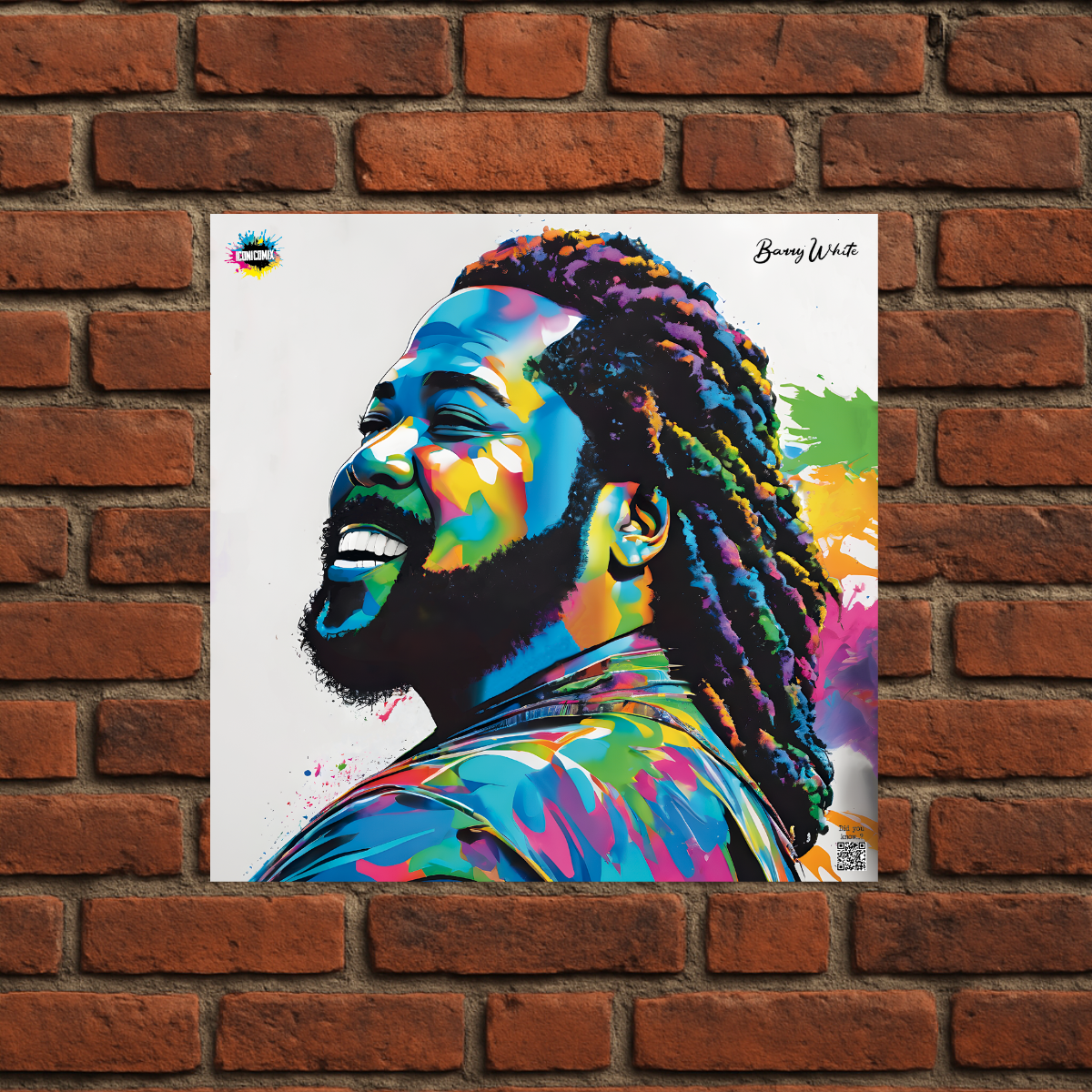 Chacun de nos visuels comporte également un code QR qui vous redirige vers le site web iconicomix.com, la page officielle de l'icône choisie. Une passerelle numérique qui vous dévoile son histoire, ses slogans et son univers.
