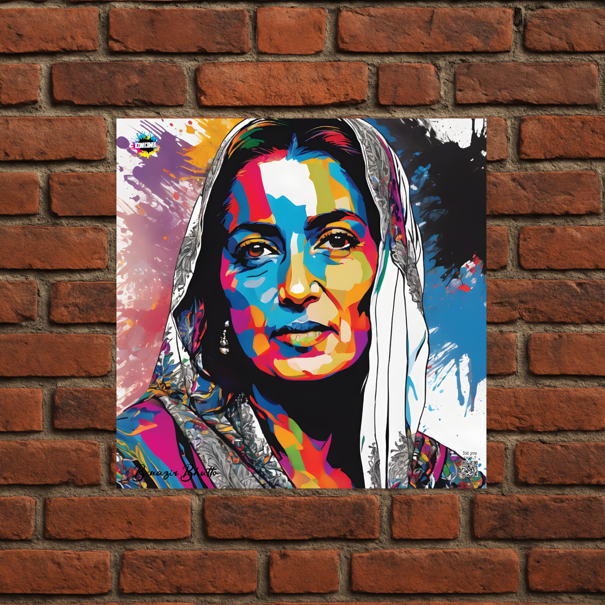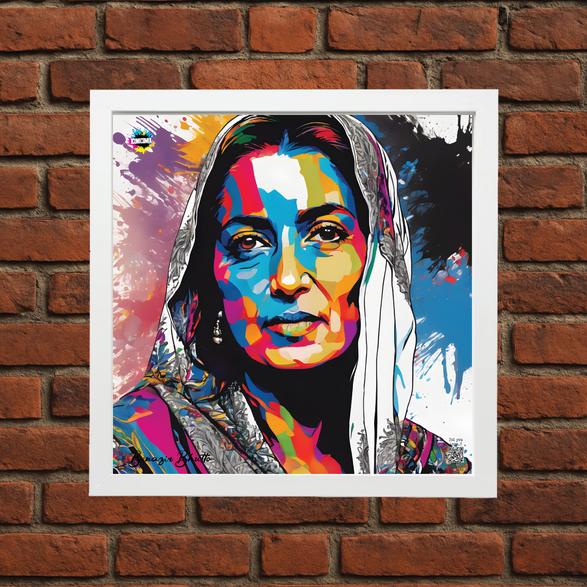 Chacun de nos visuels comporte également un code QR qui vous redirige vers le site web iconicomix.com, la page officielle de l'icône choisie. Une passerelle numérique qui vous dévoile son histoire, ses slogans et son univers.