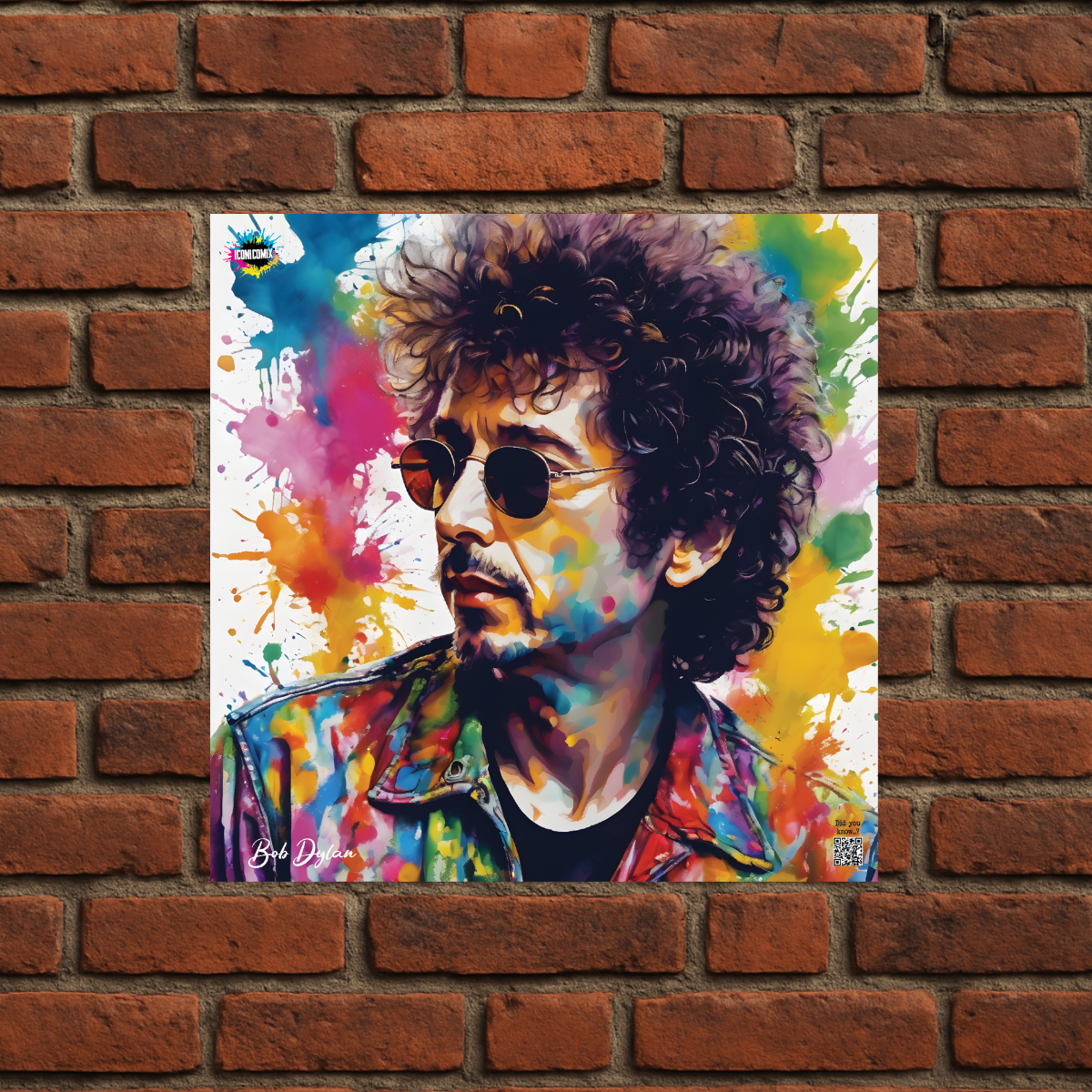 In ogni nostra grafica è presente anche un QR code che reindirizza al sito iconicomix.com, alla pagina ufficiale dell’icona che hai scelto. Una porta digitale che racconta la sua storia, le sue frasi e il suo mondo.