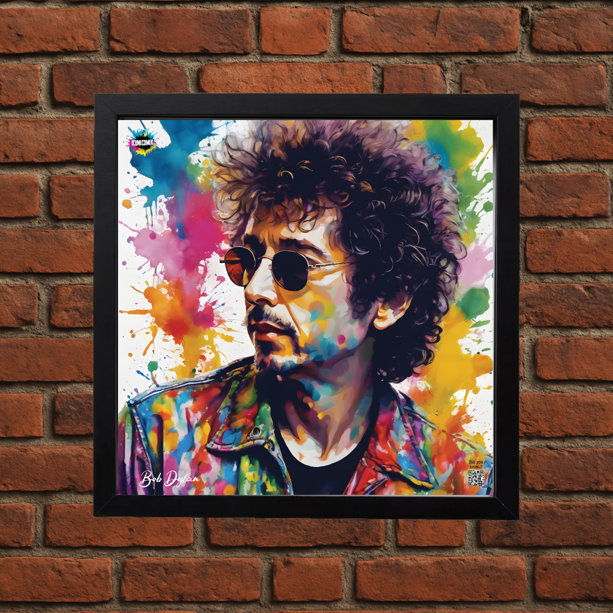 In ogni nostra grafica è presente anche un QR code che reindirizza al sito iconicomix.com, alla pagina ufficiale dell’icona che hai scelto. Una porta digitale che racconta la sua storia, le sue frasi e il suo mondo.