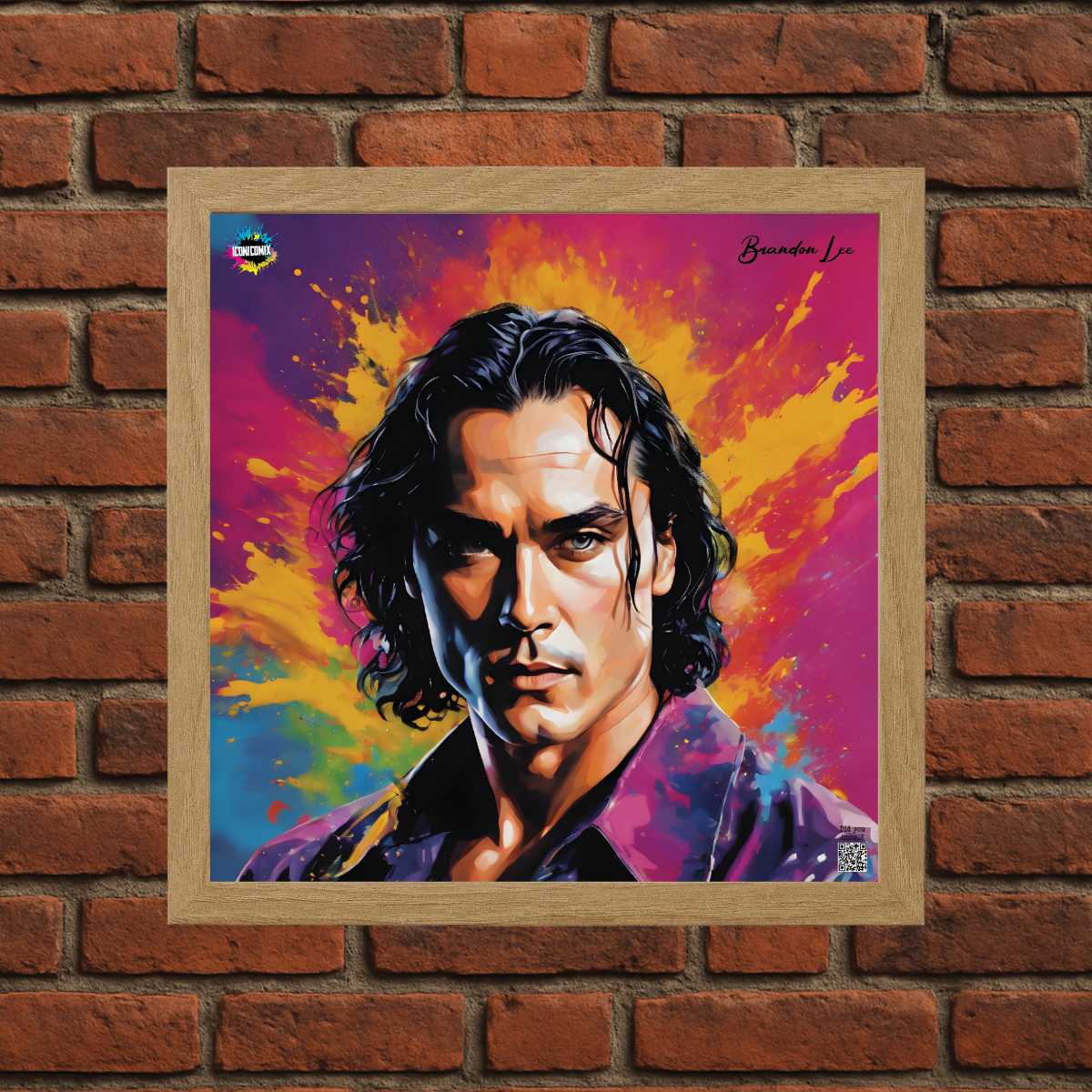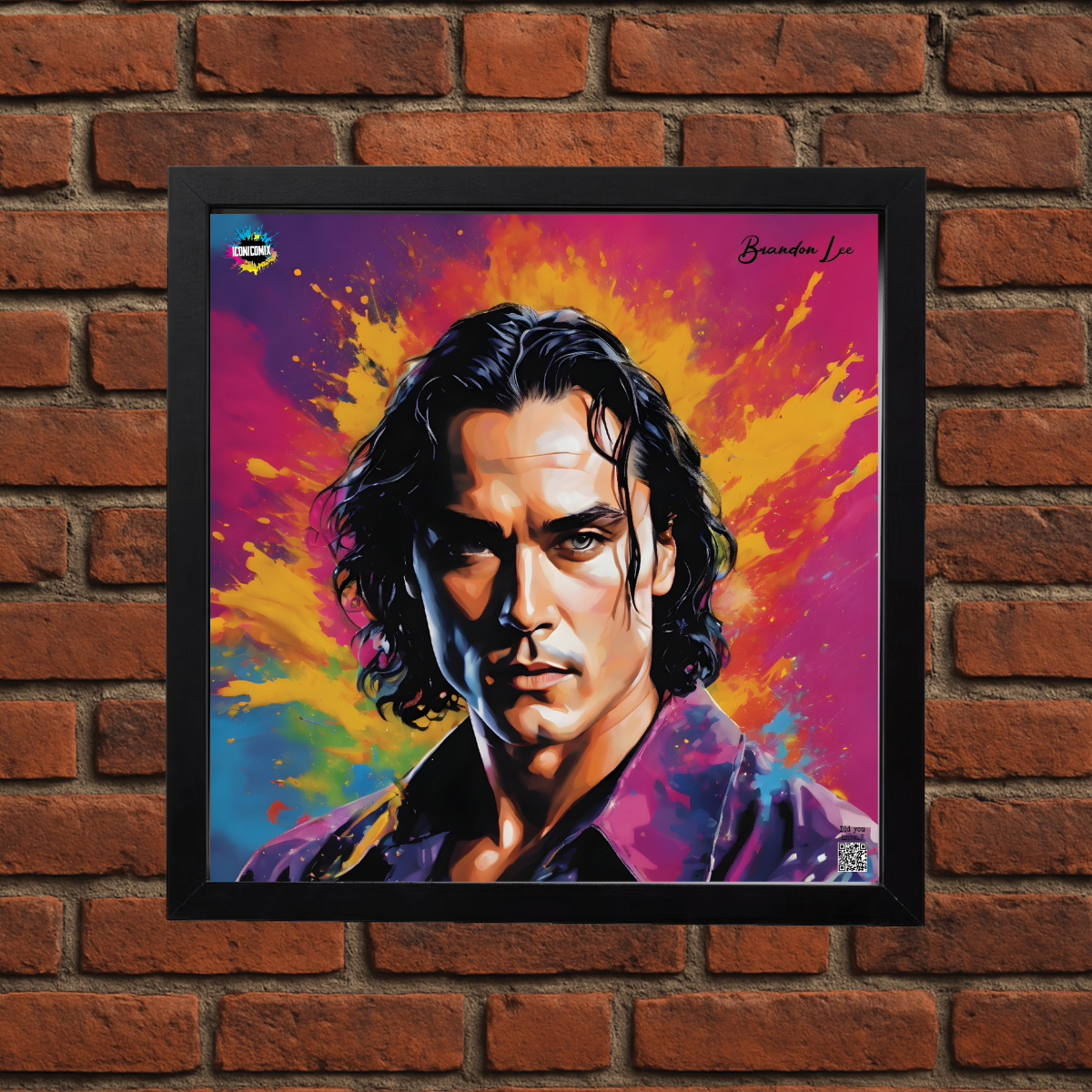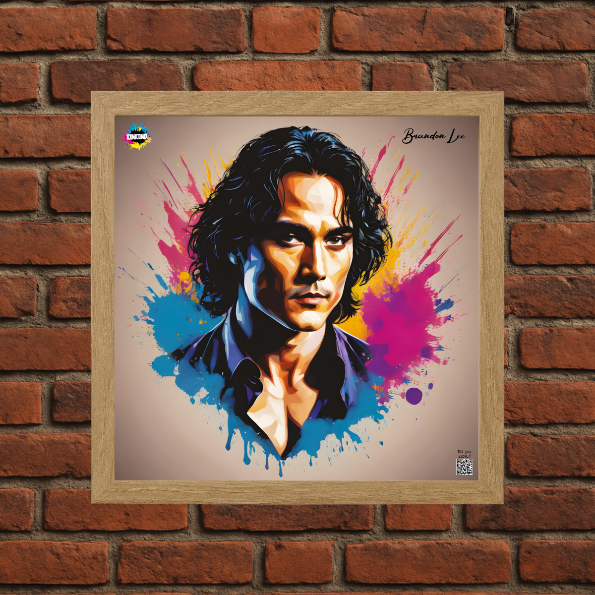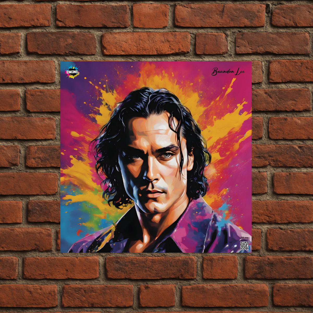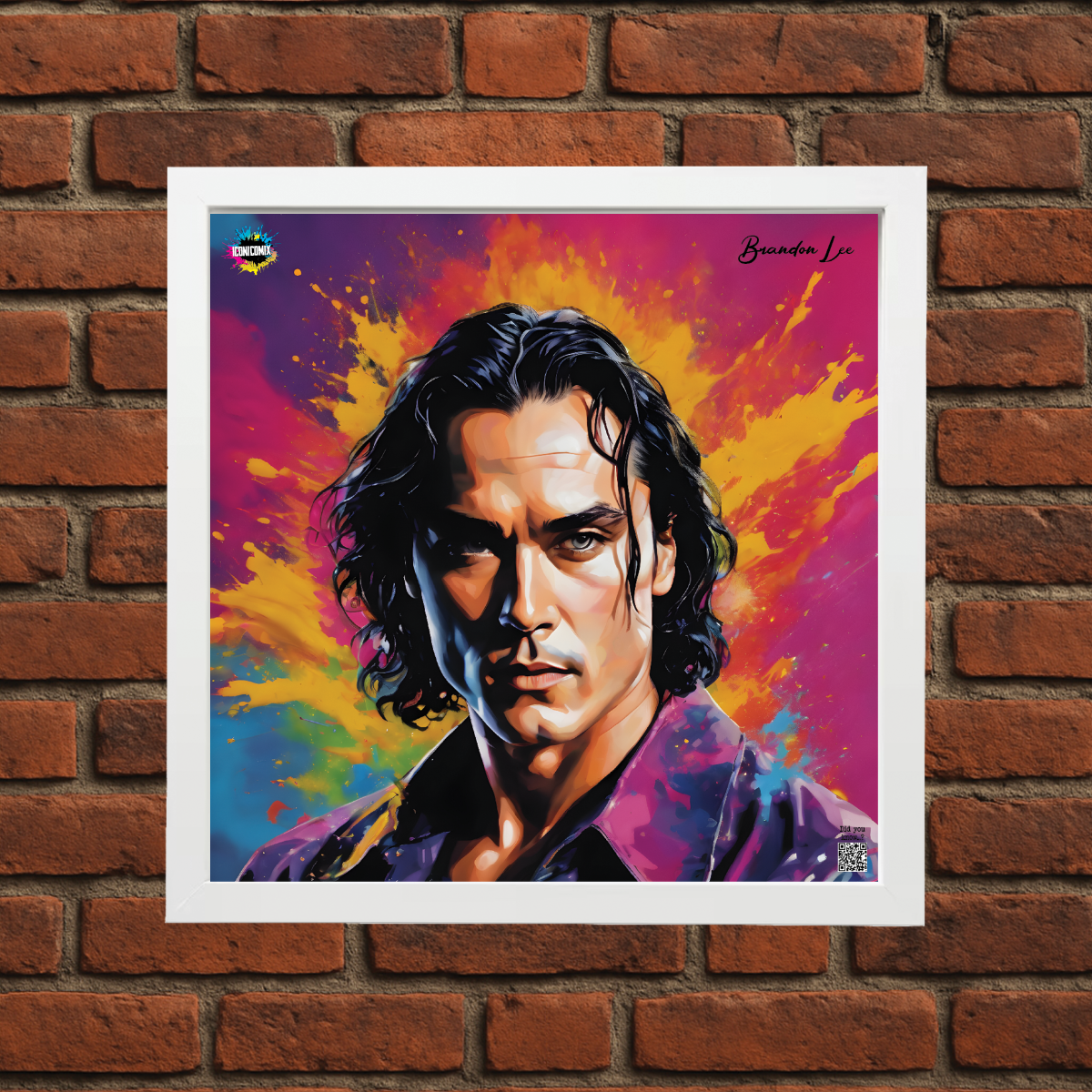 In ogni nostra grafica è presente anche un QR code che reindirizza al sito iconicomix.com, alla pagina ufficiale dell’icona che hai scelto. Una porta digitale che racconta la sua storia, le sue frasi e il suo mondo.