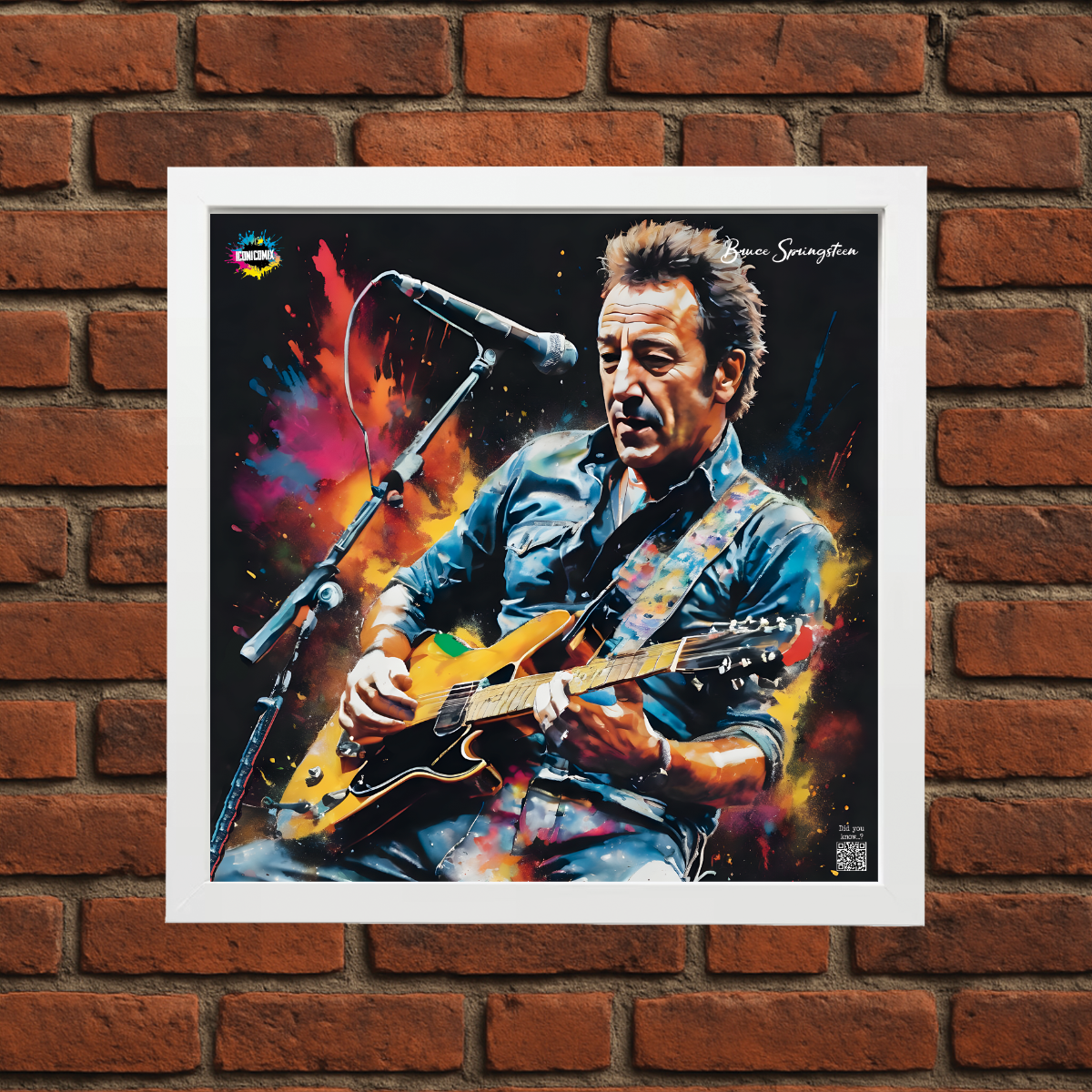 Each of our graphics also features a QR code that redirects you to the iconicomix.com website, the official page of the icon you've chosen. A digital gateway that tells its story, its phrases, and its world.