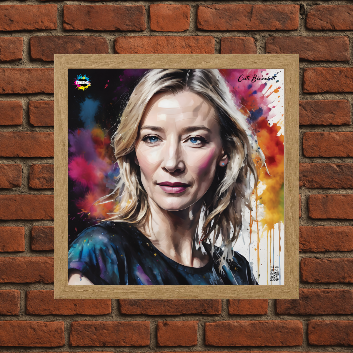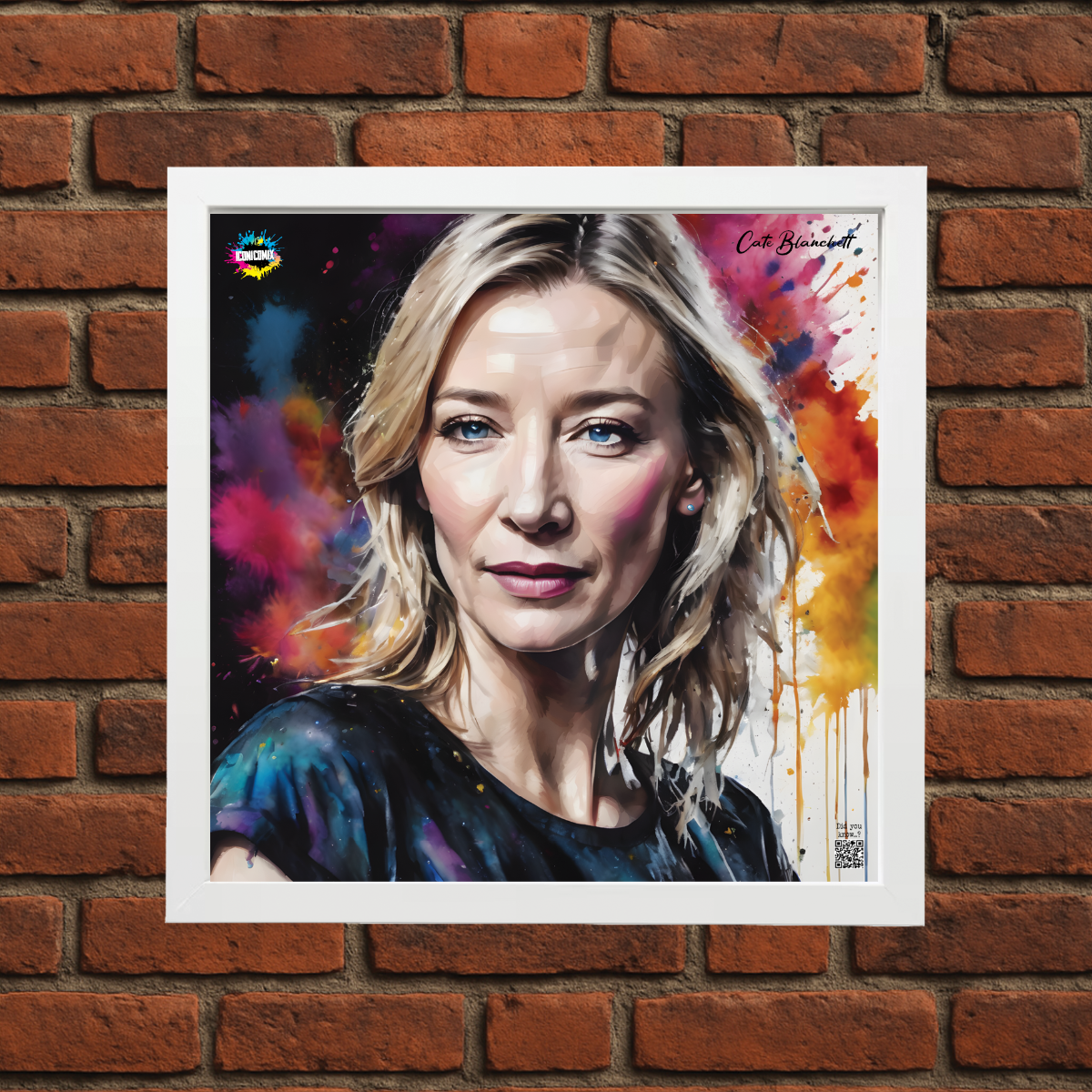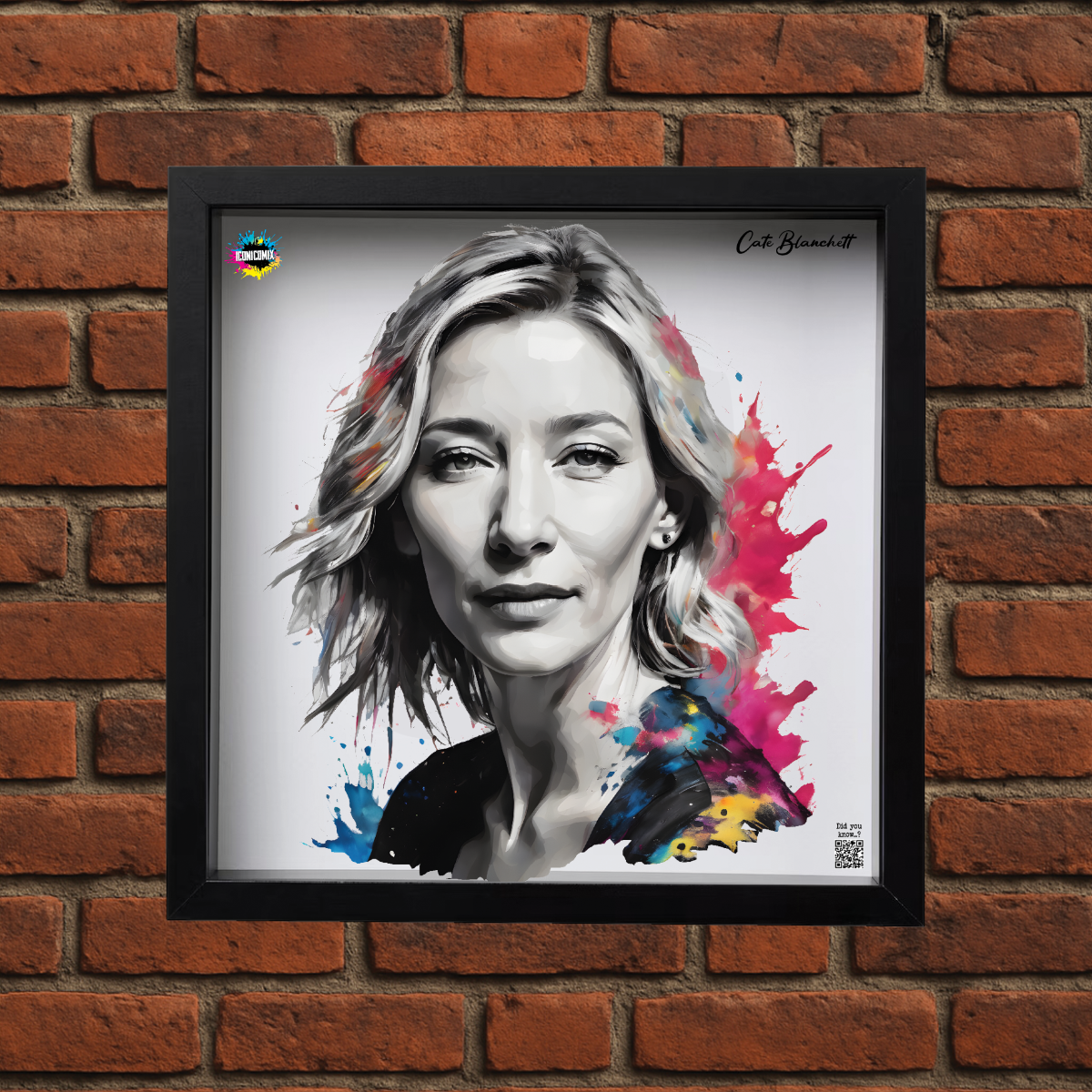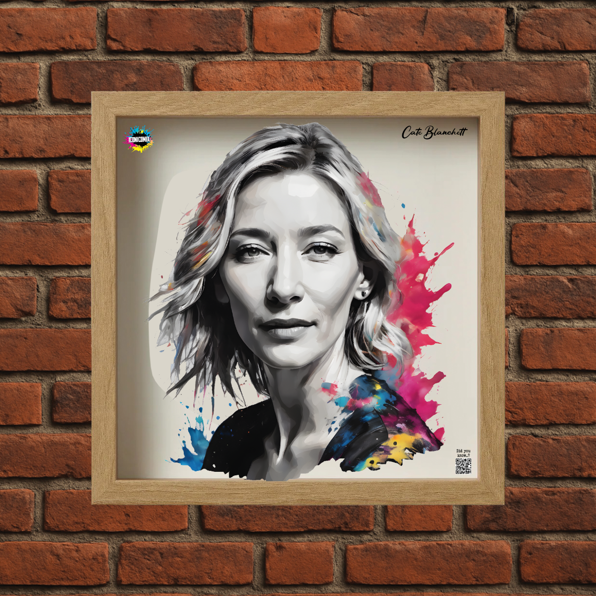 In ogni nostra grafica è presente anche un QR code che reindirizza al sito iconicomix.com, alla pagina ufficiale dell’icona che hai scelto. Una porta digitale che racconta la sua storia, le sue frasi e il suo mondo.