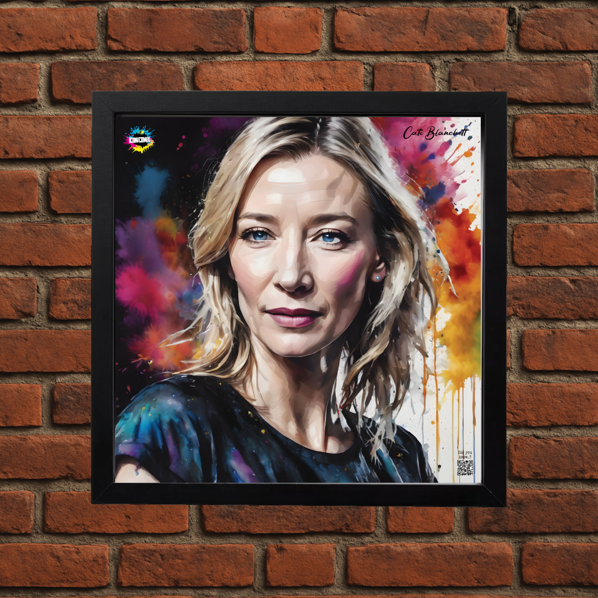 Each of our graphics also features a QR code that redirects you to the iconicomix.com website, the official page of the icon you've chosen. A digital gateway that tells its story, its phrases, and its world.
