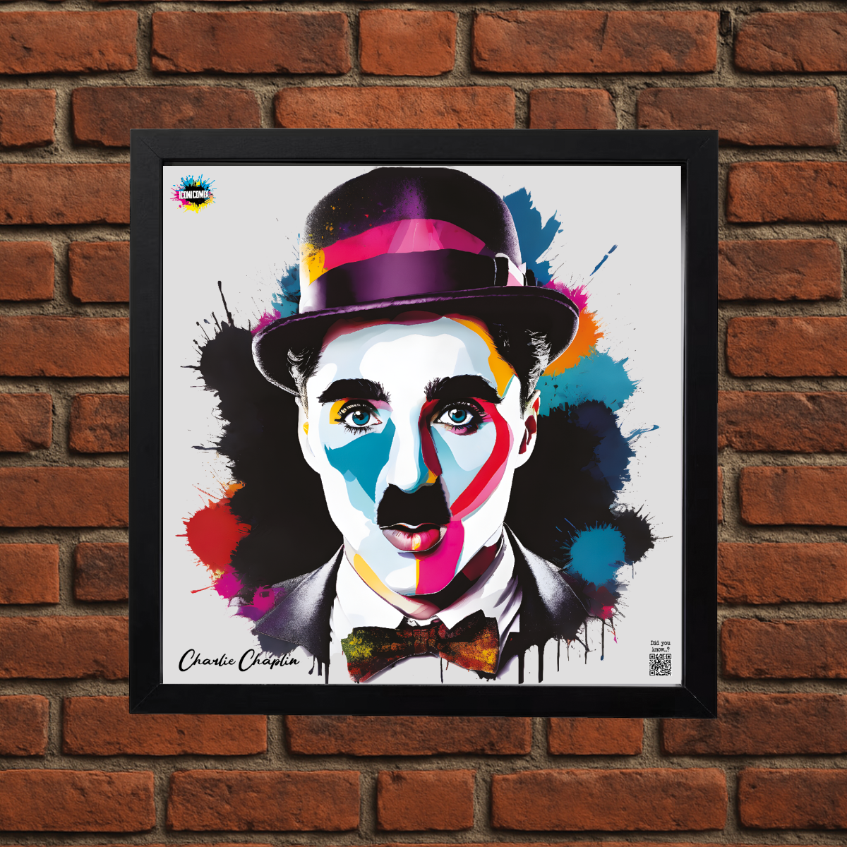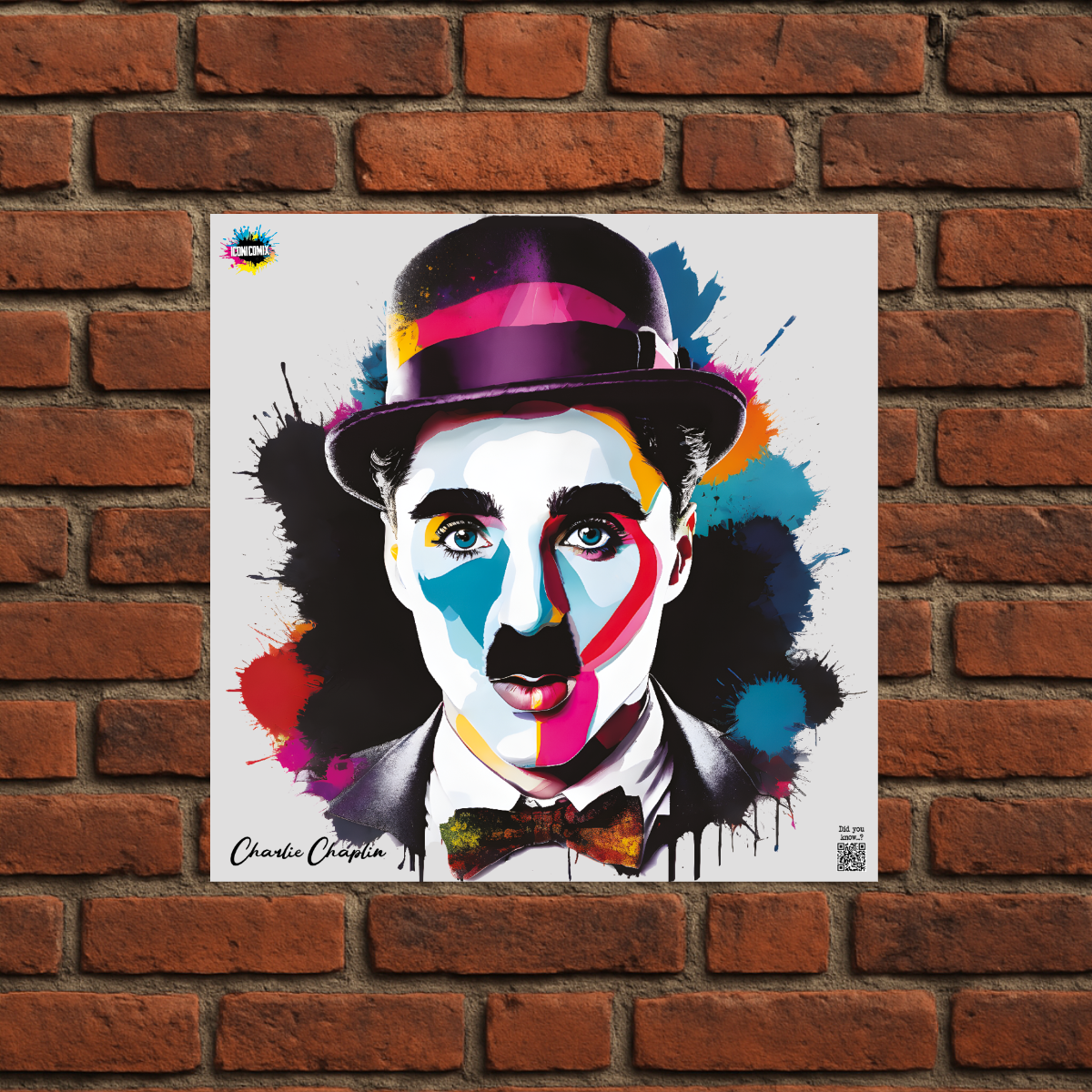 Cada uno de nuestros diseños incluye un código QR que te redirige a iconicomix.com, la página oficial del icono que has elegido. Un portal digital que narra su historia, sus frases y su universo.