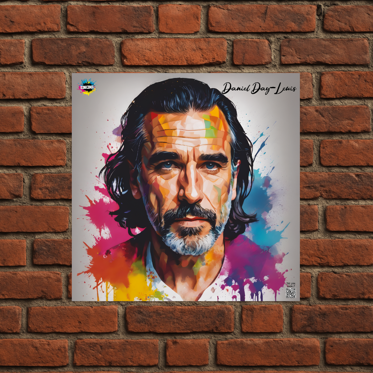 In ogni nostra grafica è presente anche un QR code che reindirizza al sito iconicomix.com, alla pagina ufficiale dell’icona che hai scelto. Una porta digitale che racconta la sua storia, le sue frasi e il suo mondo.