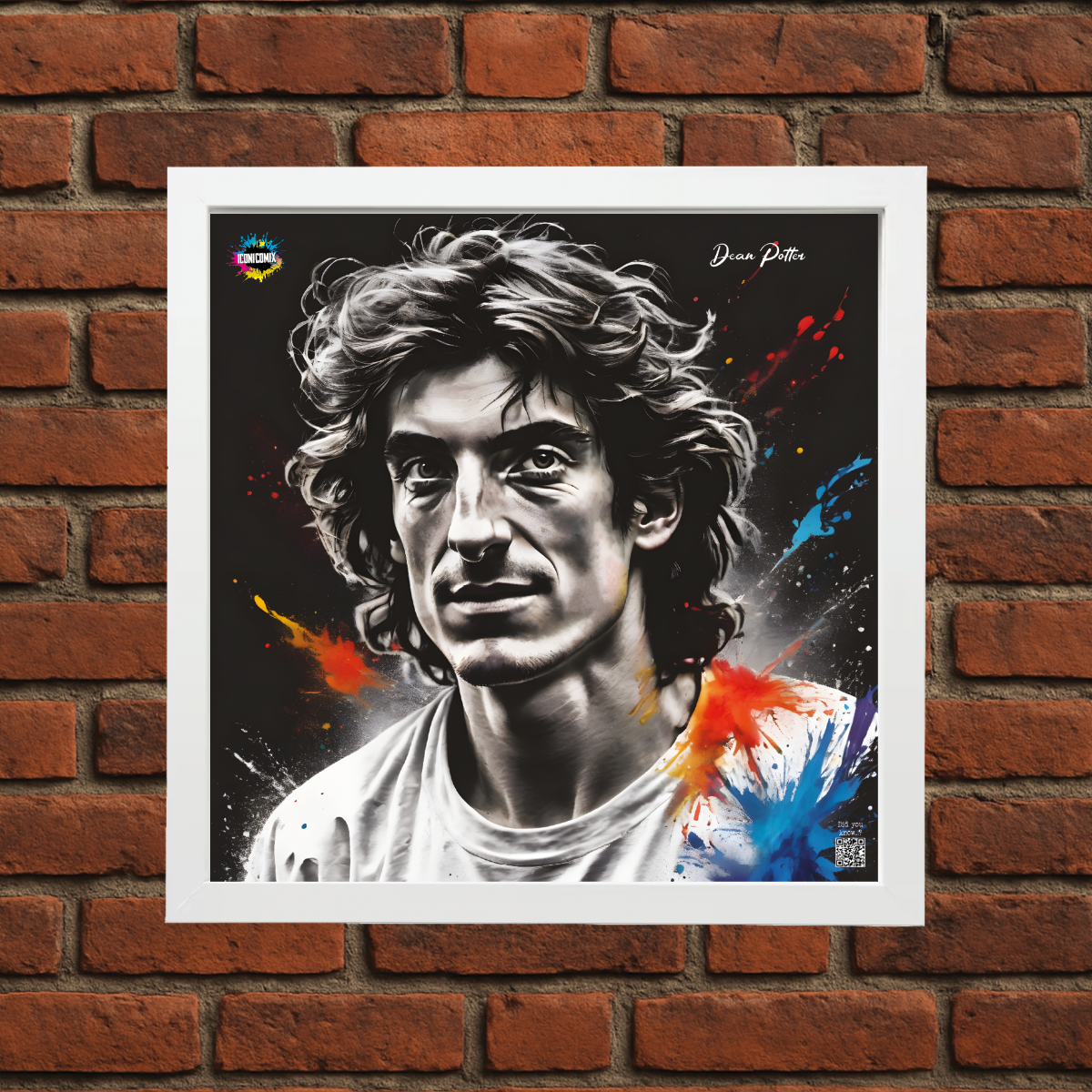 In ogni nostra grafica è presente anche un QR code che reindirizza al sito iconicomix.com, alla pagina ufficiale dell’icona che hai scelto. Una porta digitale che racconta la sua storia, le sue frasi e il suo mondo.