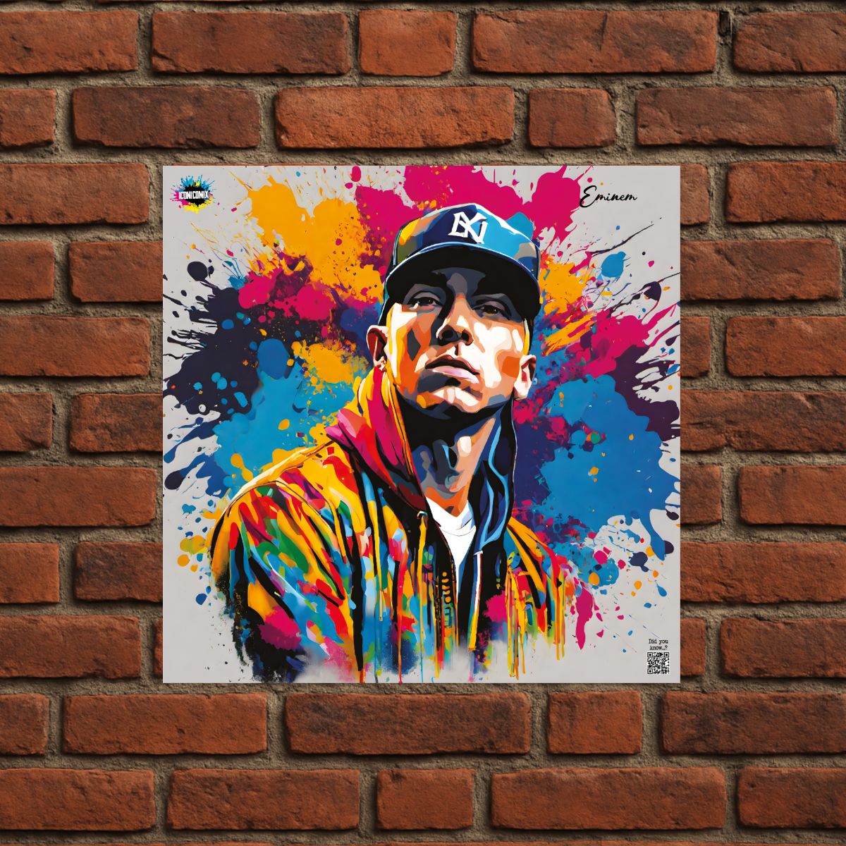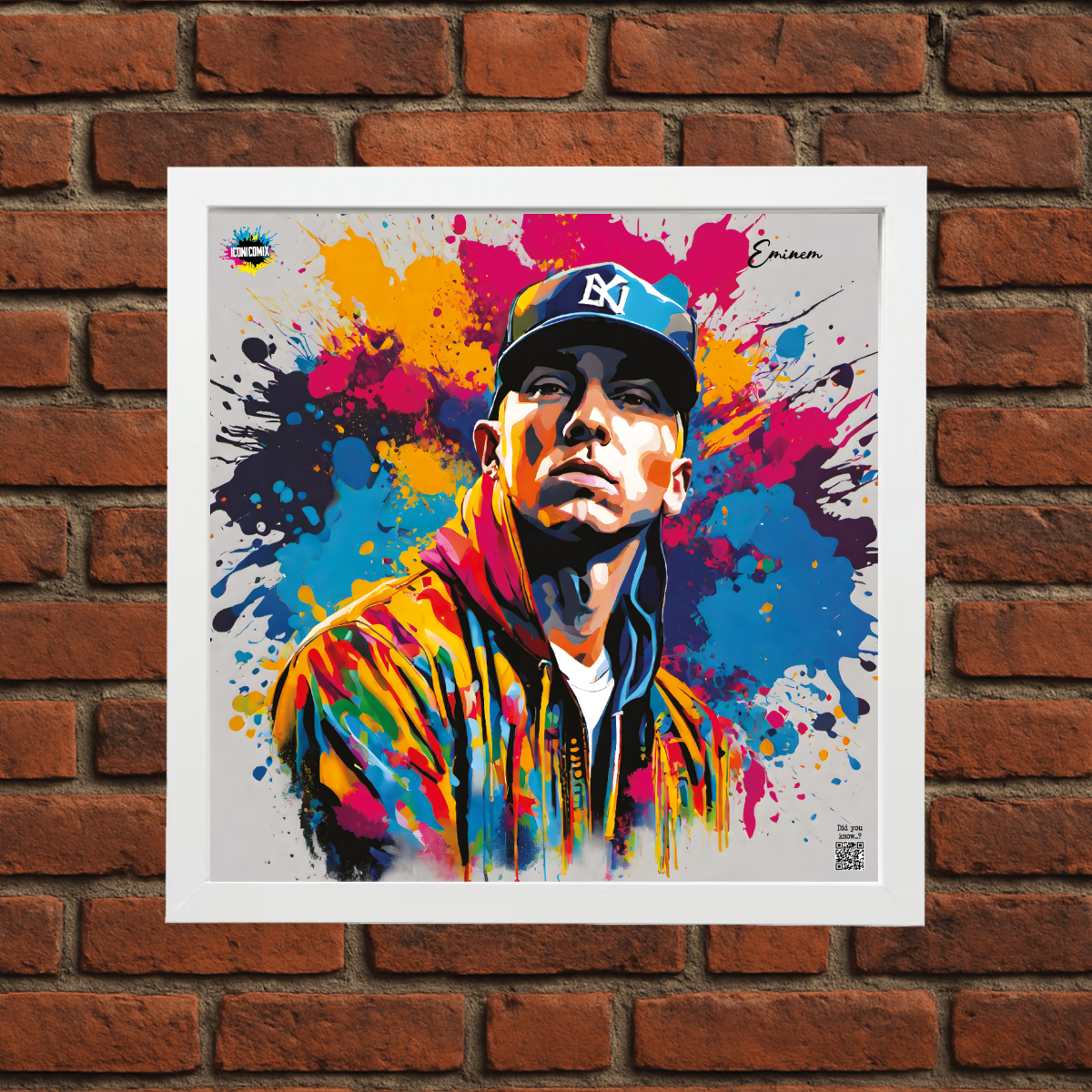 In ogni nostra grafica è presente anche un QR code che reindirizza al sito iconicomix.com, alla pagina ufficiale dell’icona che hai scelto. Una porta digitale che racconta la sua storia, le sue frasi e il suo mondo.