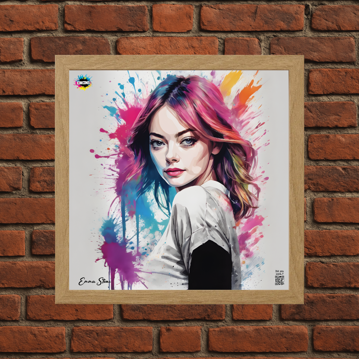 Each of our graphics also features a QR code that redirects you to the iconicomix.com website, the official page of the icon you've chosen. A digital gateway that tells its story, its phrases, and its world.