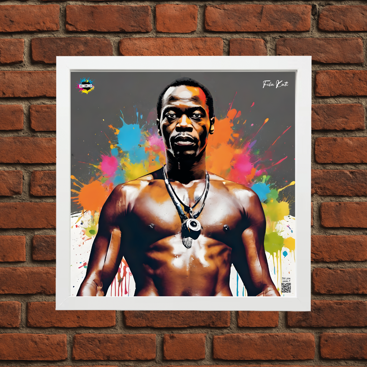 In ogni nostra grafica è presente anche un QR code che reindirizza al sito iconicomix.com, alla pagina ufficiale dell’icona che hai scelto. Una porta digitale che racconta la sua storia, le sue frasi e il suo mondo.
