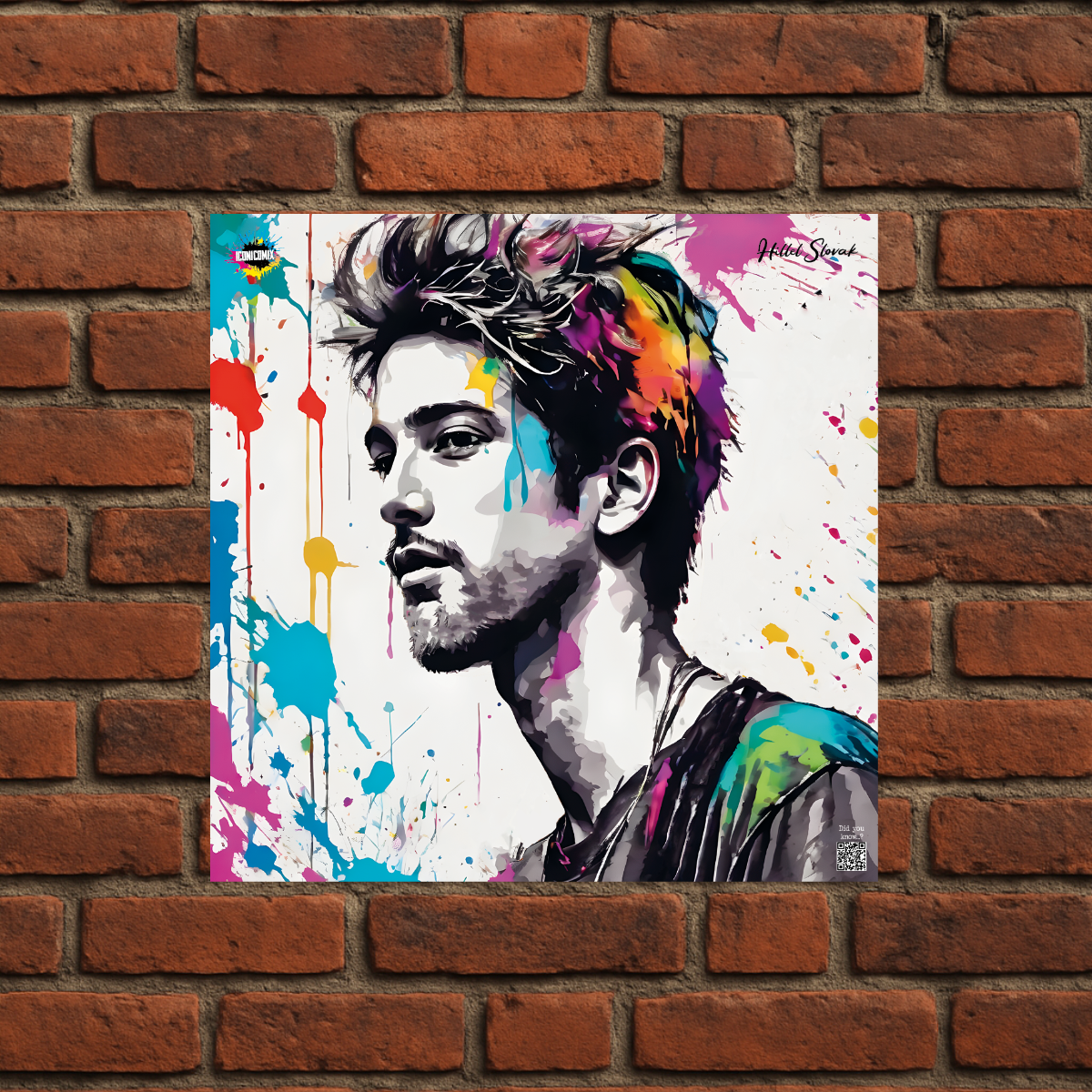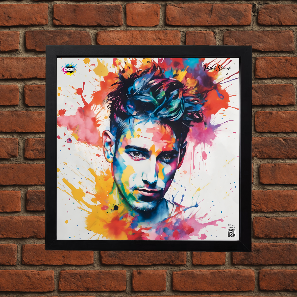 In ogni nostra grafica è presente anche un QR code che reindirizza al sito iconicomix.com, alla pagina ufficiale dell’icona che hai scelto. Una porta digitale che racconta la sua storia, le sue frasi e il suo mondo.