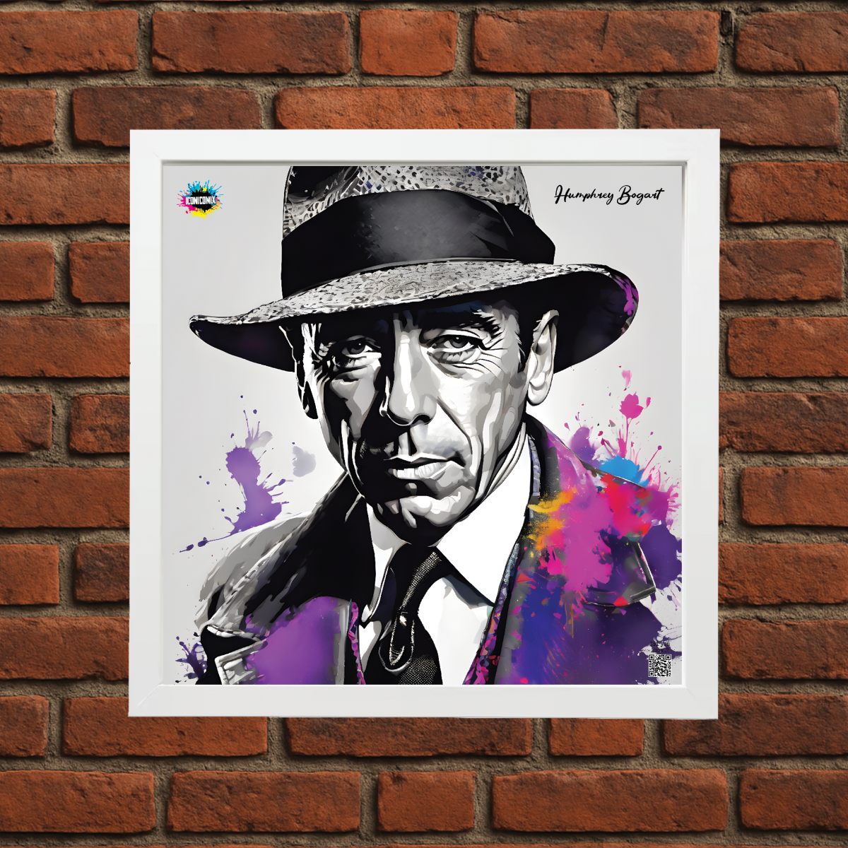 In ogni nostra grafica è presente anche un QR code che reindirizza al sito iconicomix.com, alla pagina ufficiale dell’icona che hai scelto. Una porta digitale che racconta la sua storia, le sue frasi e il suo mondo.