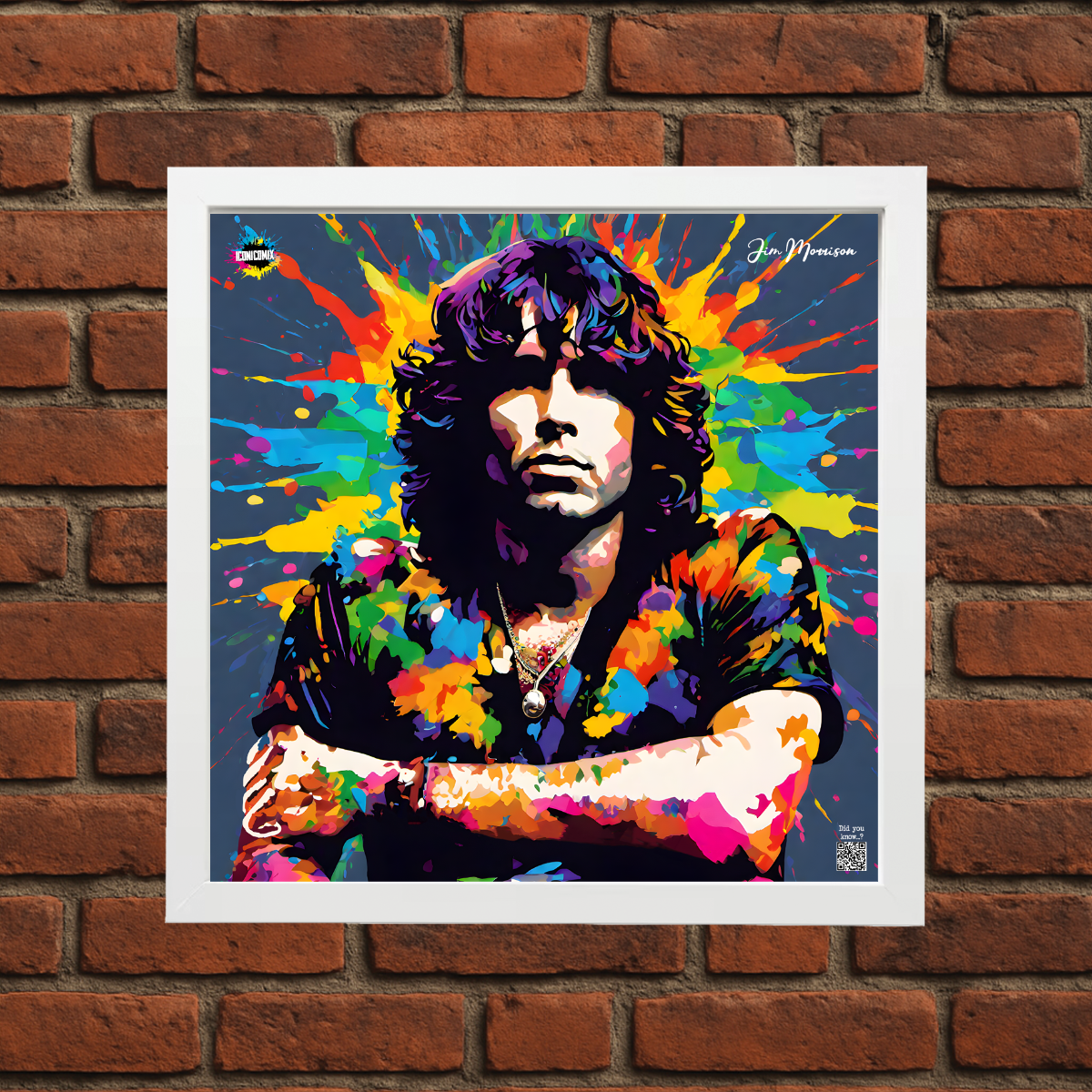 Chacun de nos visuels comporte également un code QR qui vous redirige vers le site web iconicomix.com, la page officielle de l'icône choisie. Une passerelle numérique qui vous dévoile son histoire, ses slogans et son univers.
