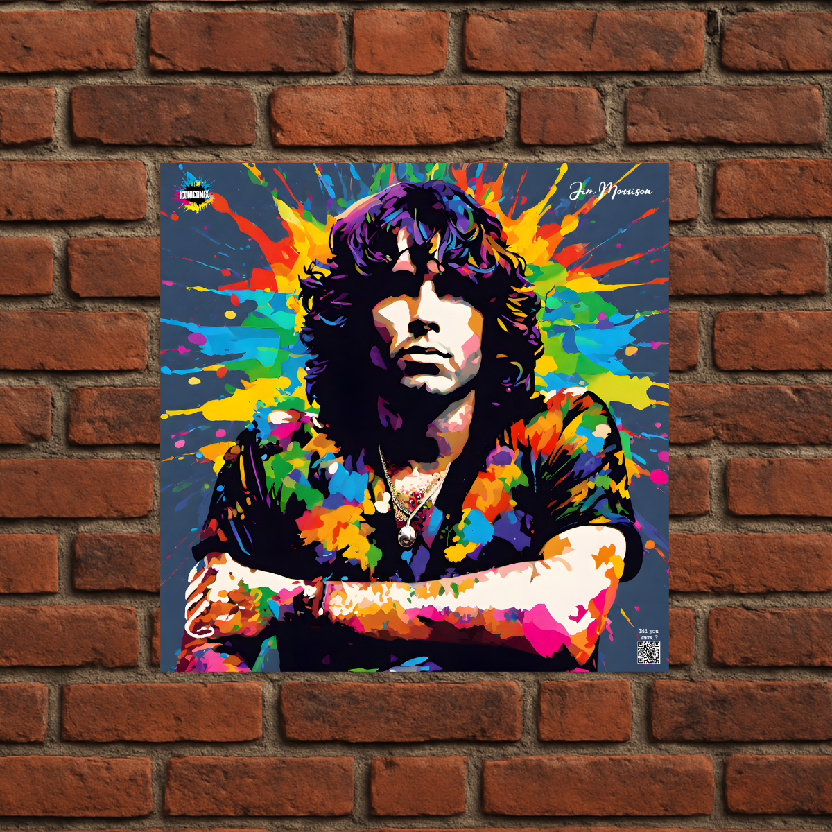 Chacun de nos visuels comporte également un code QR qui vous redirige vers le site web iconicomix.com, la page officielle de l'icône choisie. Une passerelle numérique qui vous dévoile son histoire, ses slogans et son univers.