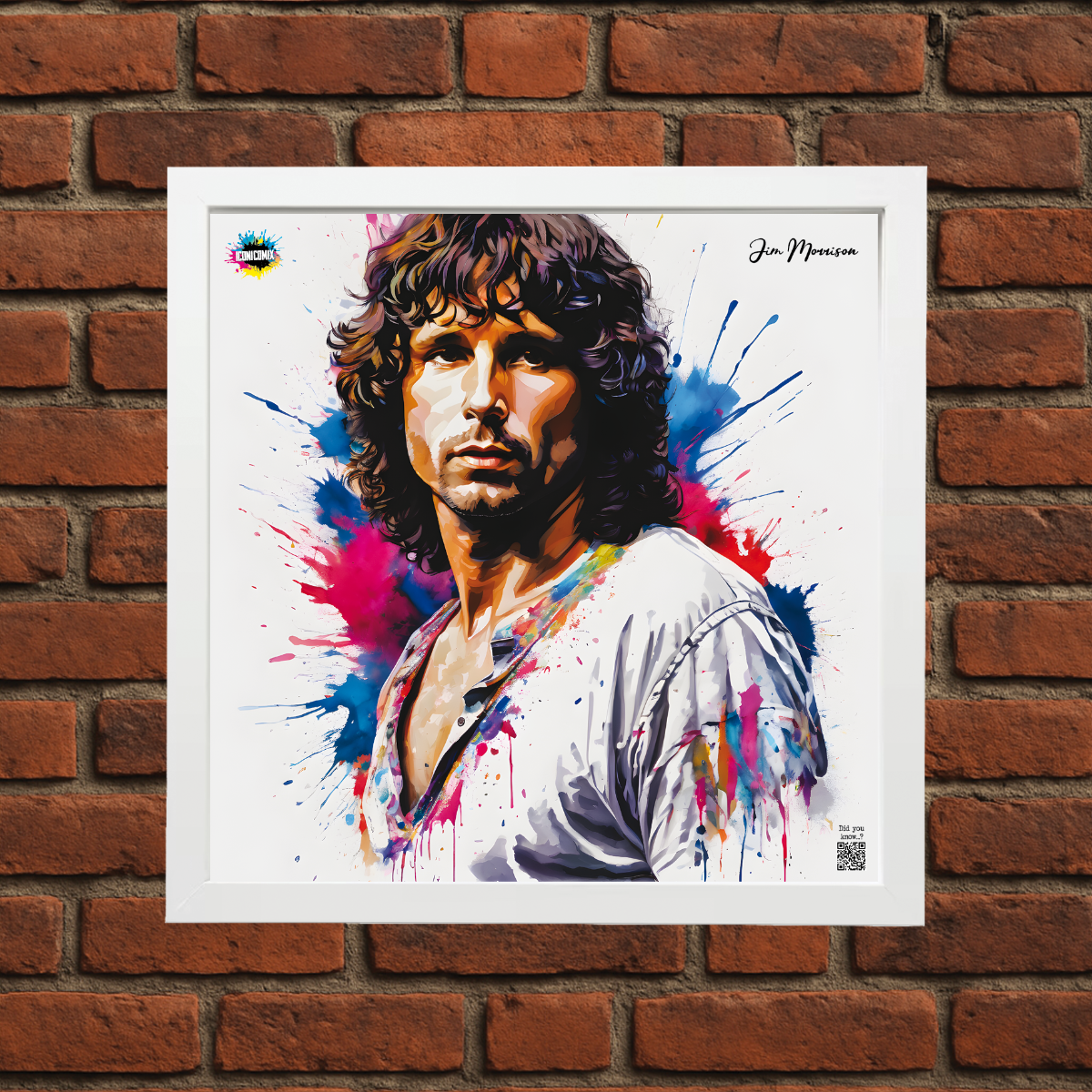 In ogni nostra grafica è presente anche un QR code che reindirizza al sito iconicomix.com, alla pagina ufficiale dell’icona che hai scelto. Una porta digitale che racconta la sua storia, le sue frasi e il suo mondo.
