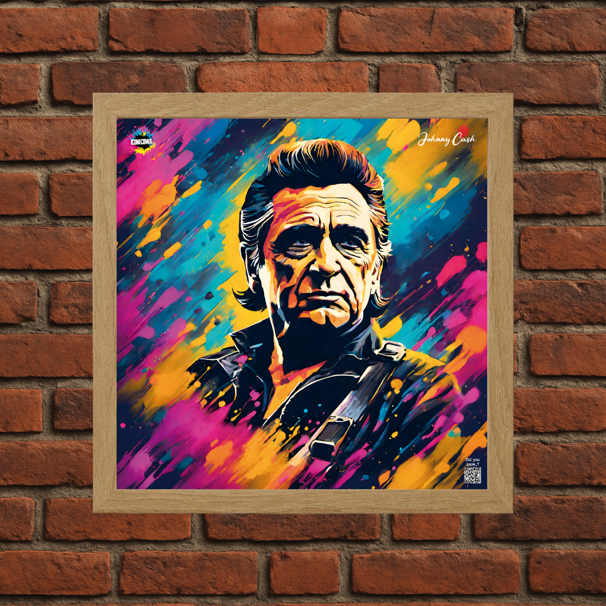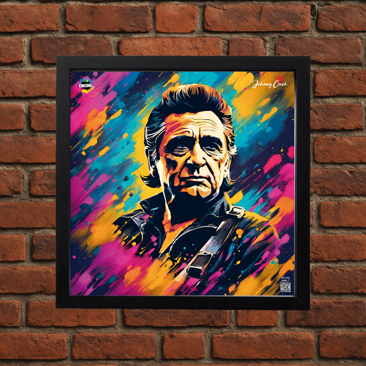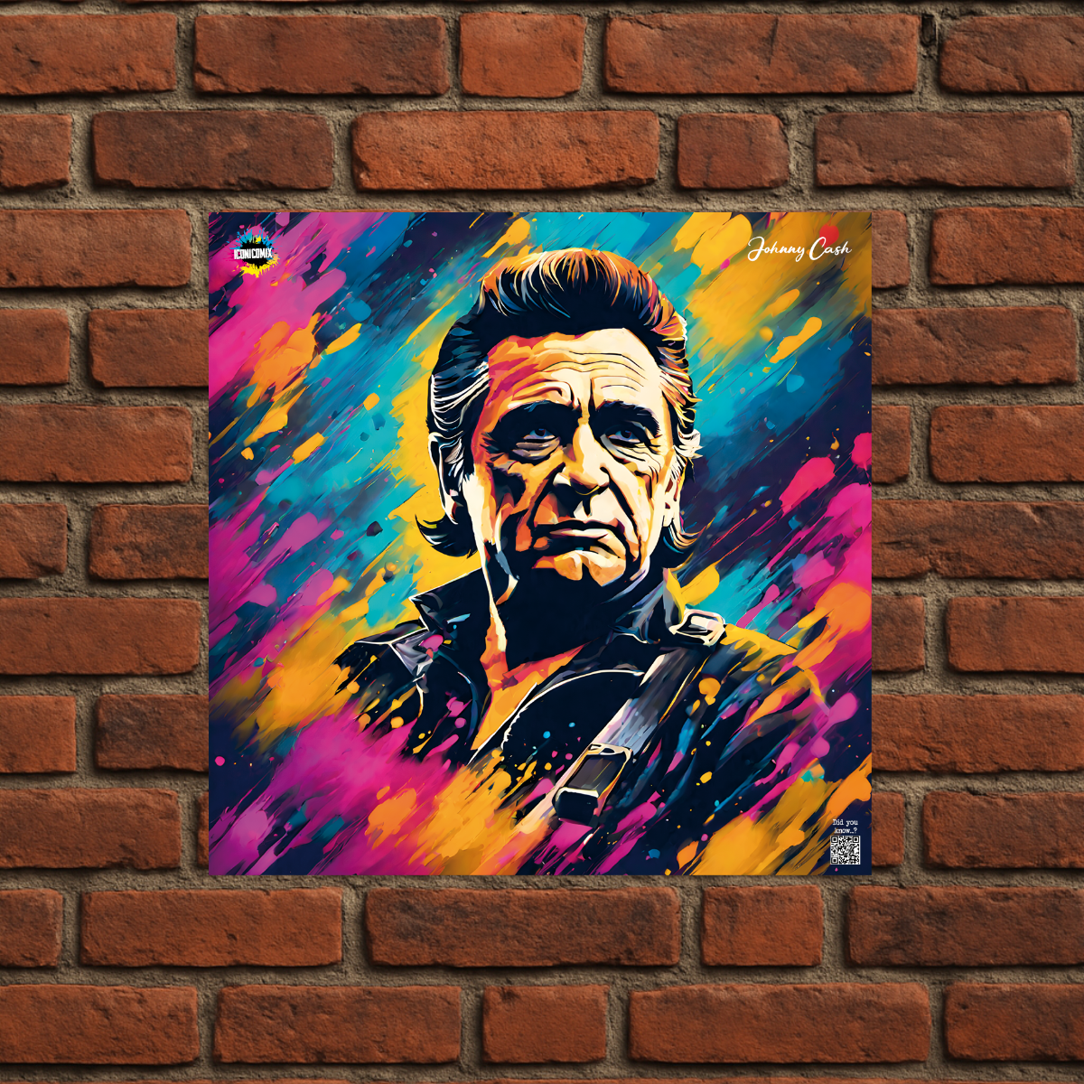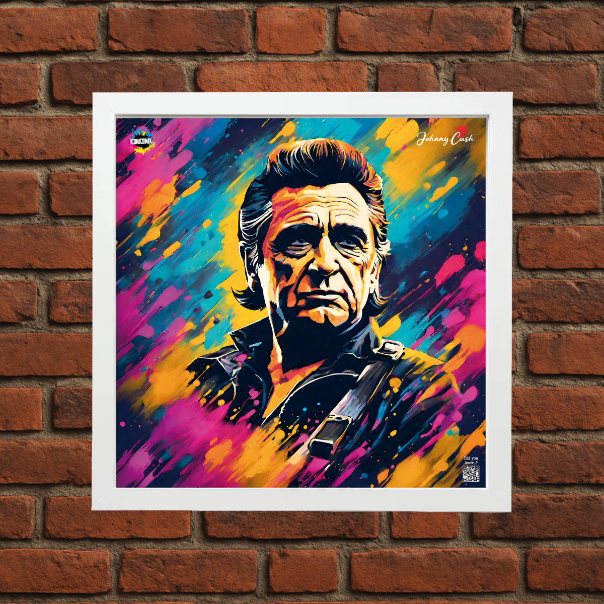 In ogni nostra grafica è presente anche un QR code che reindirizza al sito iconicomix.com, alla pagina ufficiale dell’icona che hai scelto. Una porta digitale che racconta la sua storia, le sue frasi e il suo mondo.