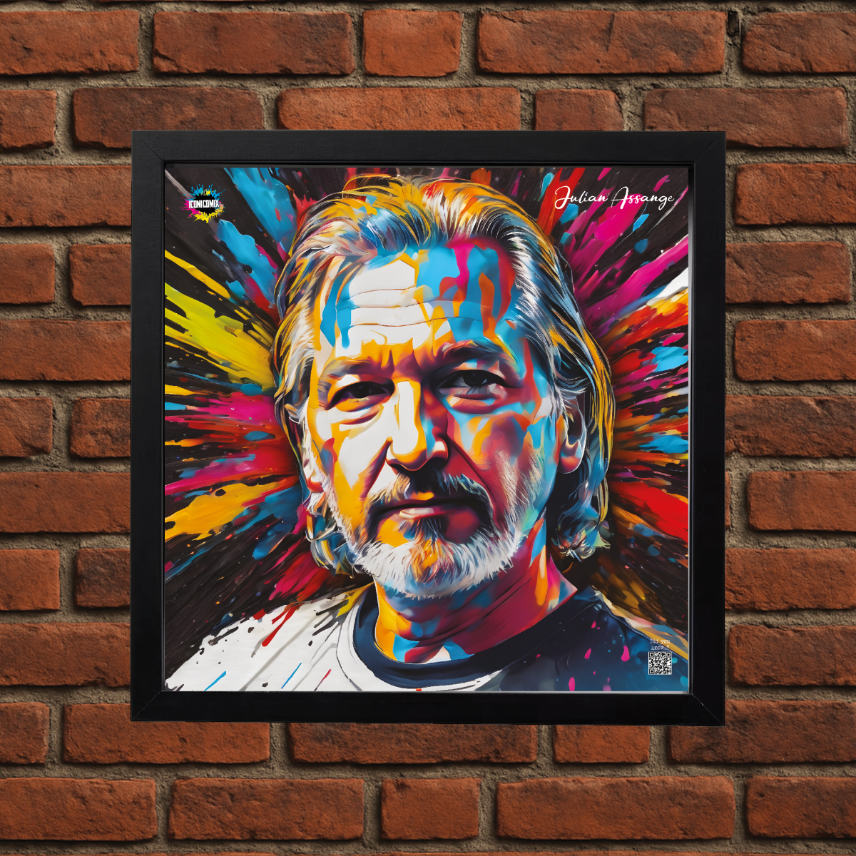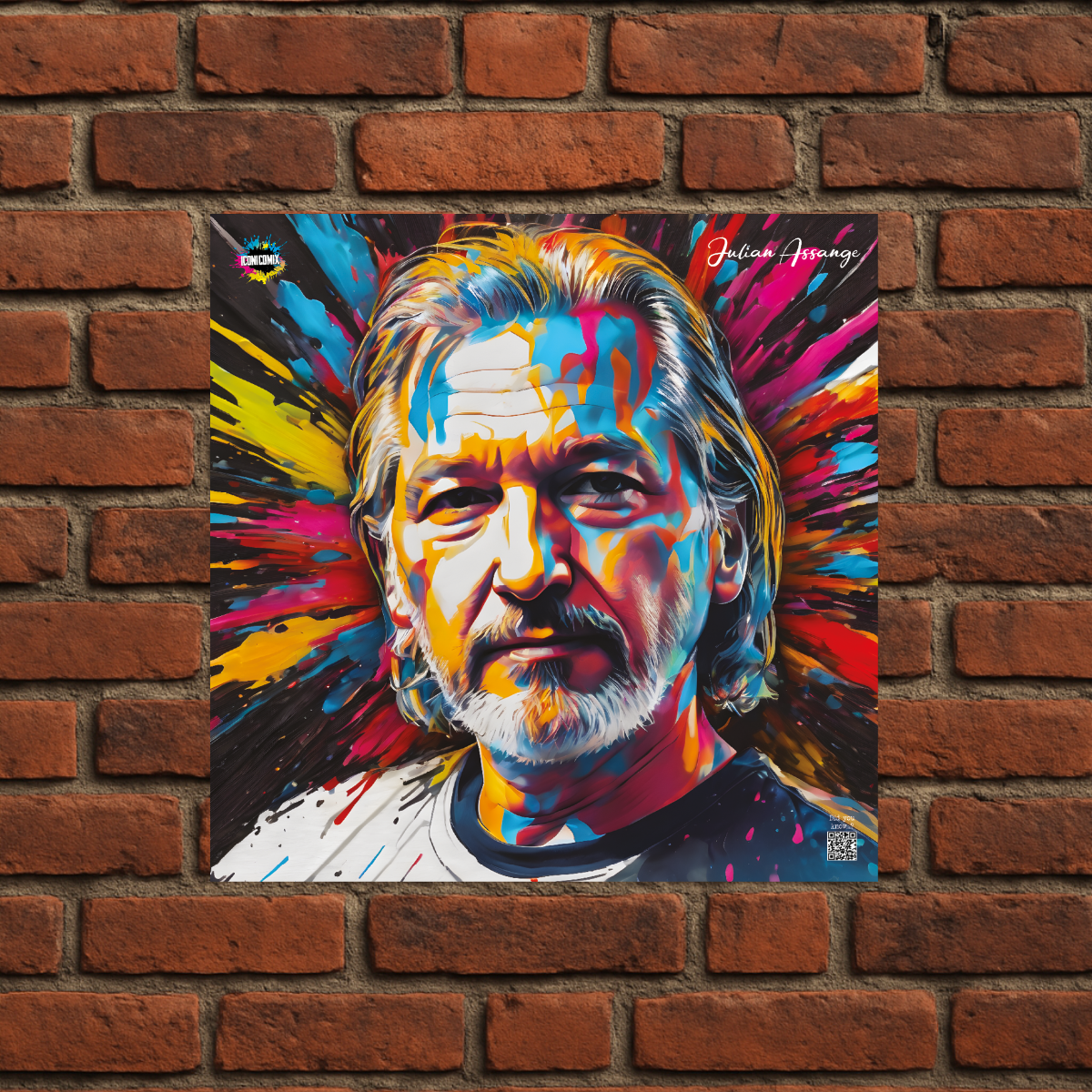 Each of our graphics also features a QR code that redirects you to the iconicomix.com website, the official page of the icon you've chosen. A digital gateway that tells its story, its phrases, and its world.