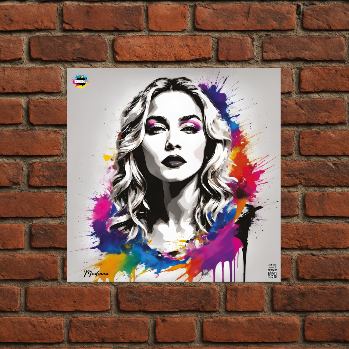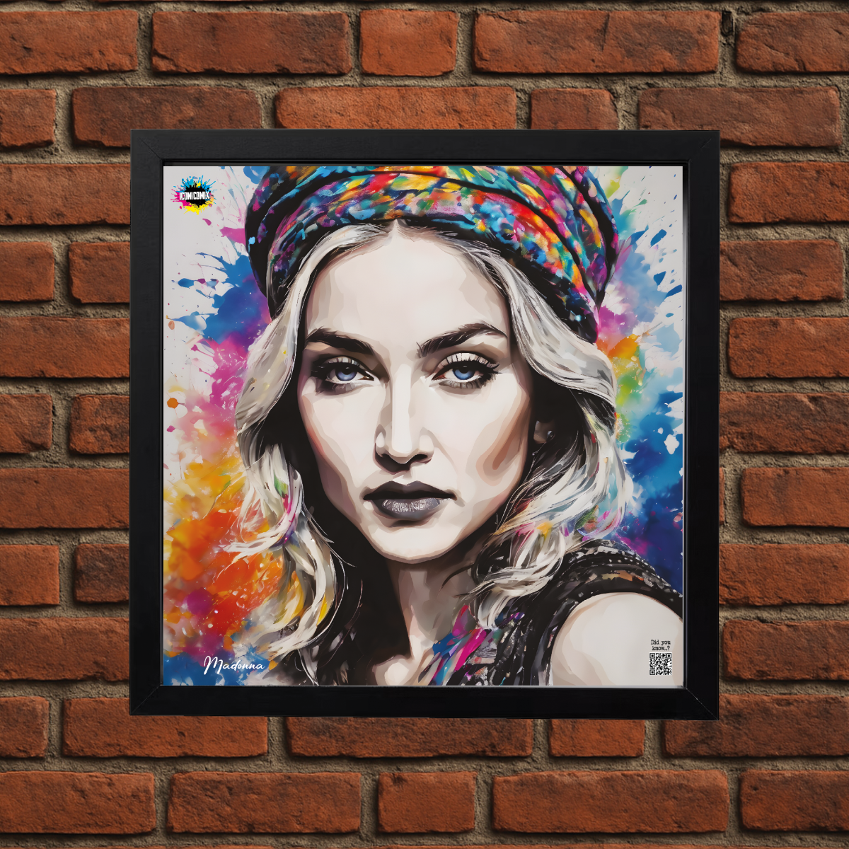 Cada uno de nuestros diseños incluye un código QR que te redirige a iconicomix.com, la página oficial del icono que has elegido. Un portal digital que narra su historia, sus frases y su universo.