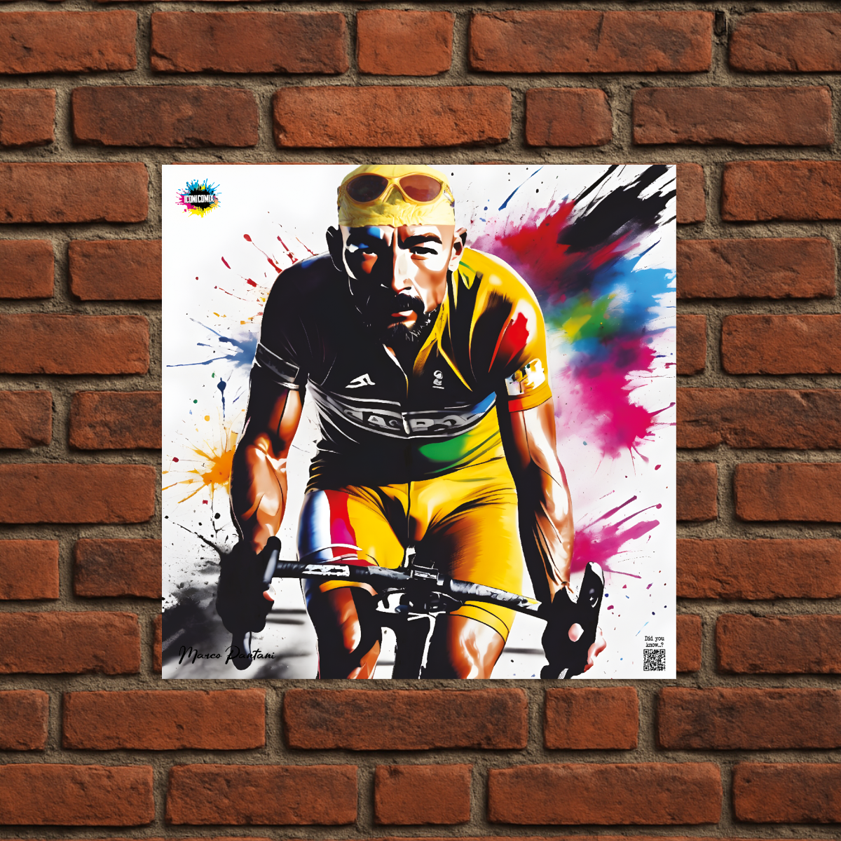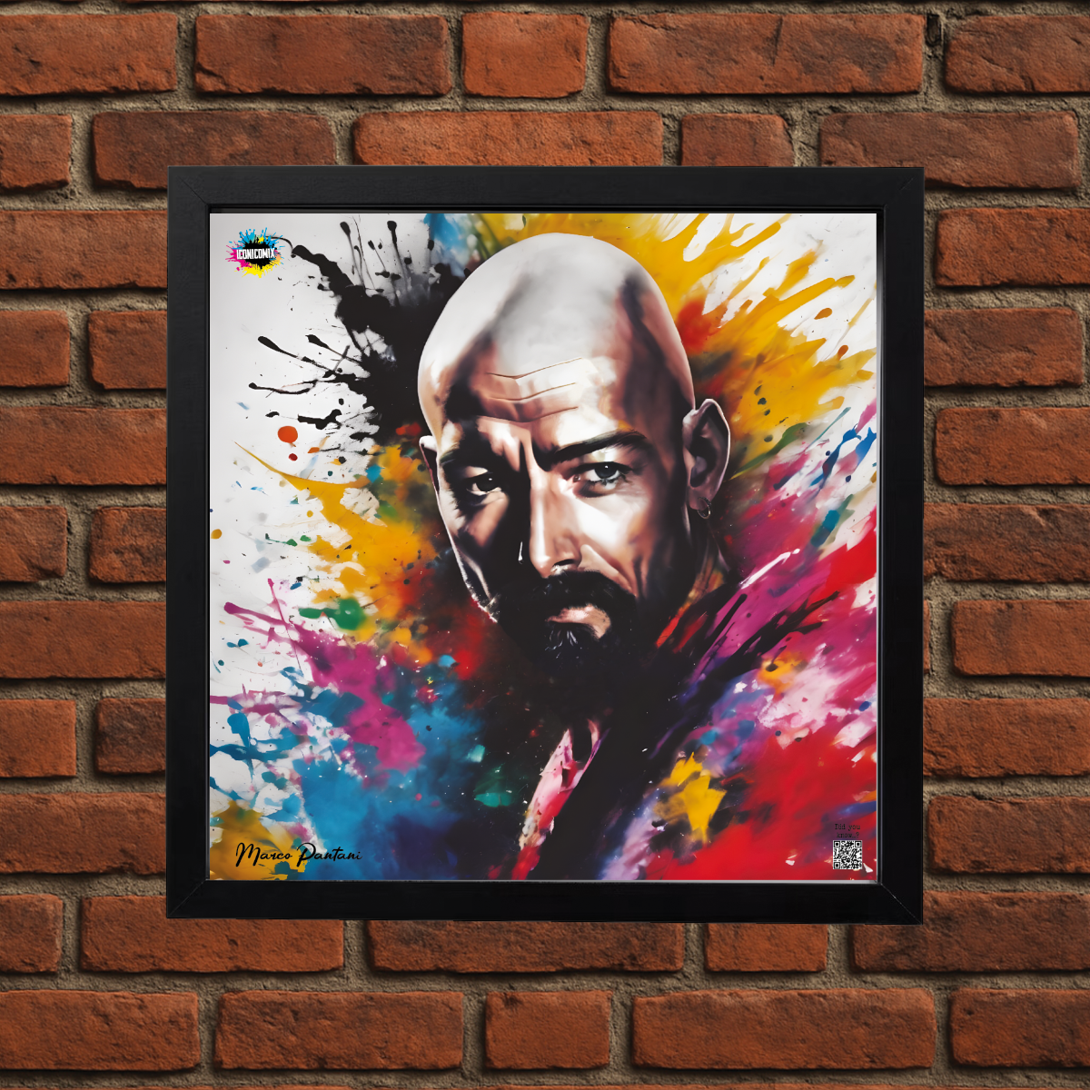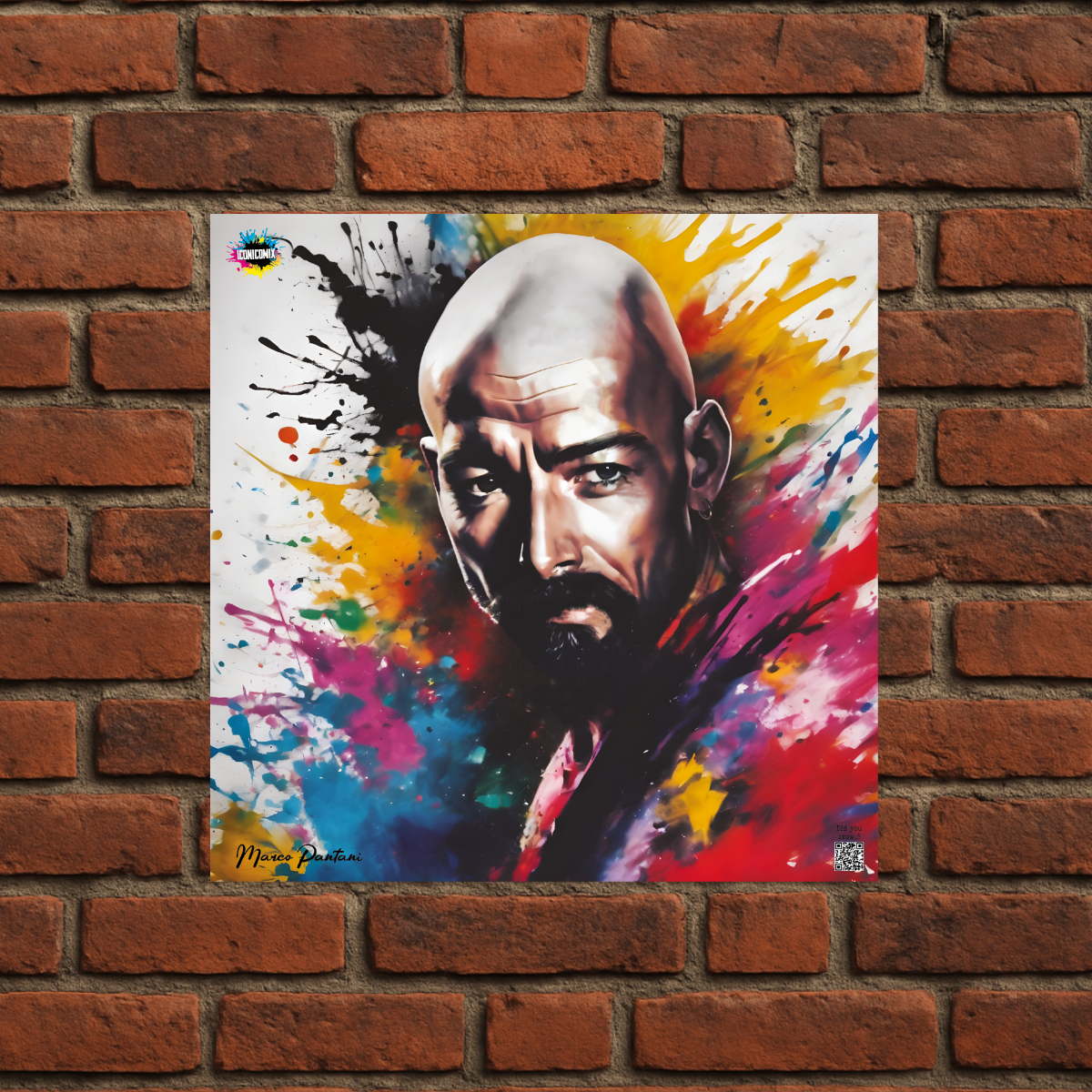 In ogni nostra grafica è presente anche un QR code che reindirizza al sito iconicomix.com, alla pagina ufficiale dell’icona che hai scelto. Una porta digitale che racconta la sua storia, le sue frasi e il suo mondo.