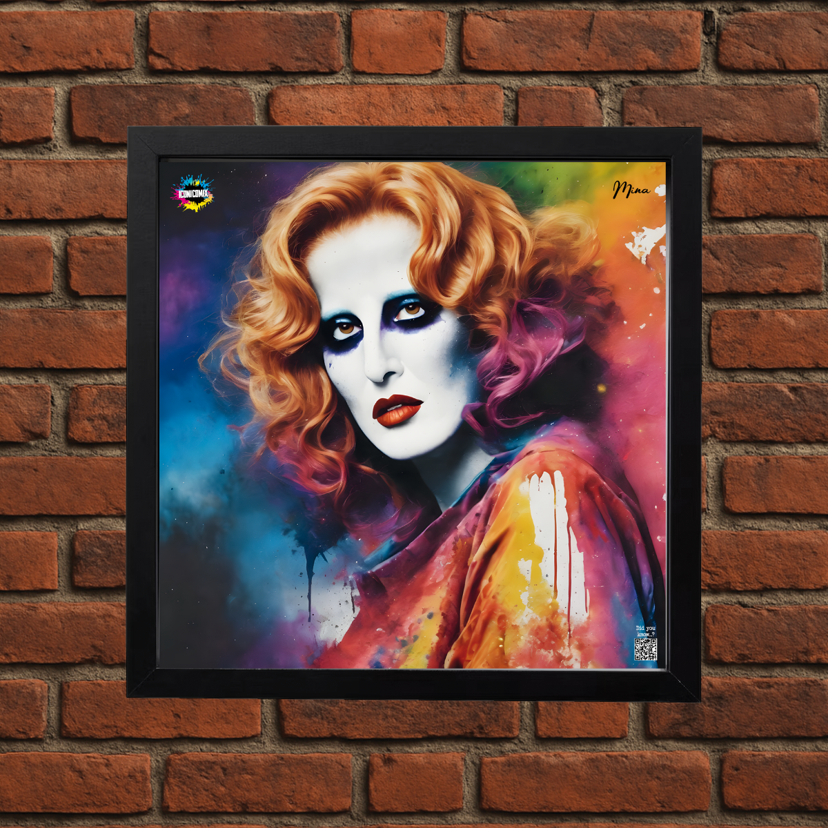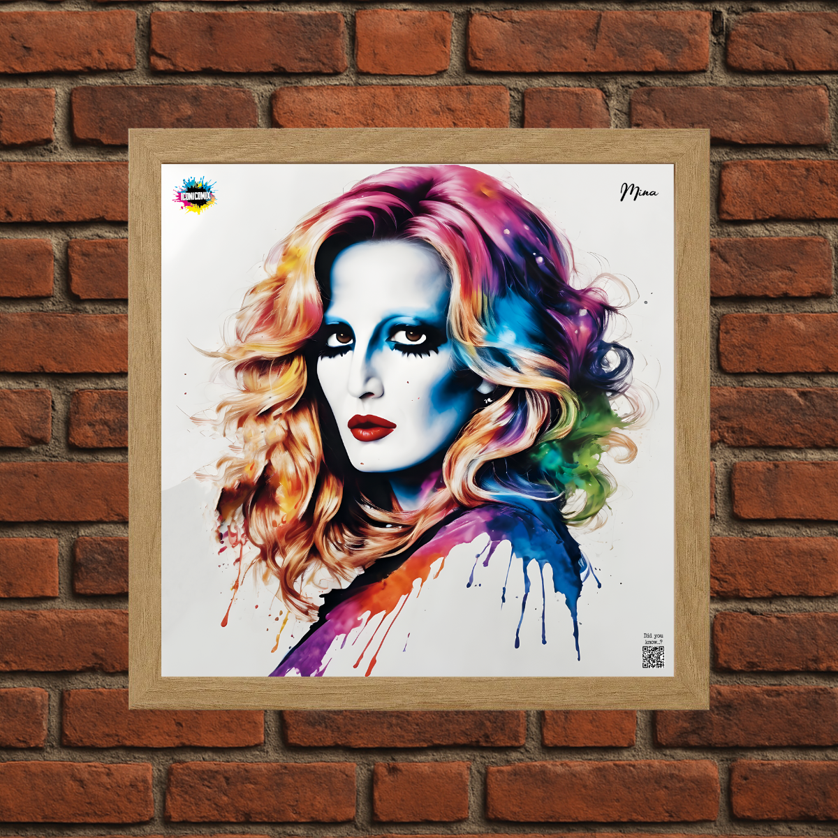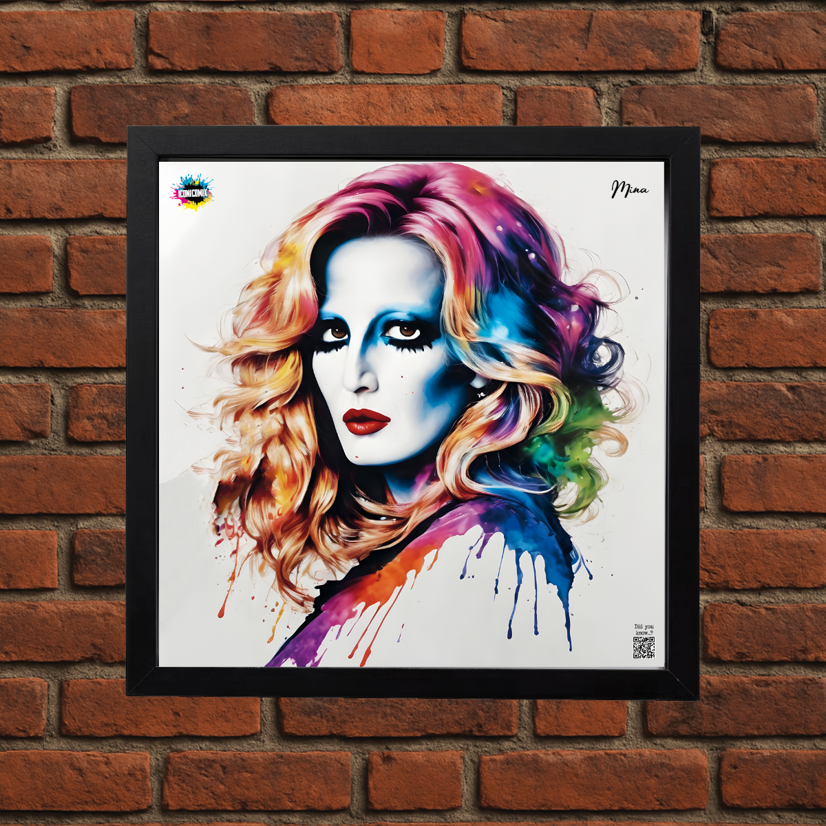 In ogni nostra grafica è presente anche un QR code che reindirizza al sito iconicomix.com, alla pagina ufficiale dell’icona che hai scelto. Una porta digitale che racconta la sua storia, le sue frasi e il suo mondo.