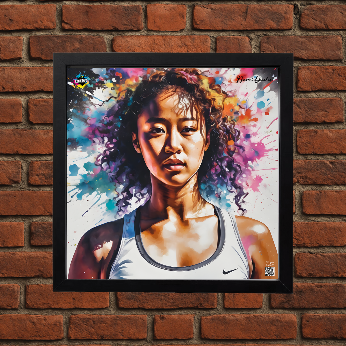 In ogni nostra grafica è presente anche un QR code che reindirizza al sito iconicomix.com, alla pagina ufficiale dell’icona che hai scelto. Una porta digitale che racconta la sua storia, le sue frasi e il suo mondo.
