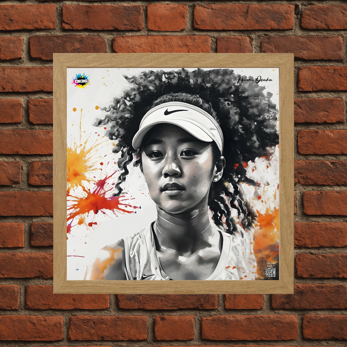 In ogni nostra grafica è presente anche un QR code che reindirizza al sito iconicomix.com, alla pagina ufficiale dell’icona che hai scelto. Una porta digitale che racconta la sua storia, le sue frasi e il suo mondo.
