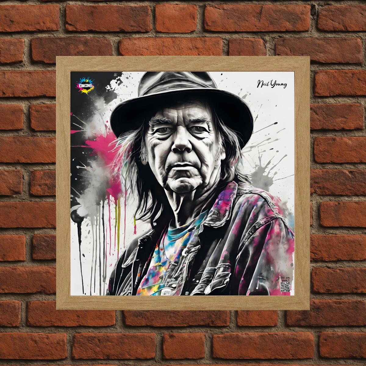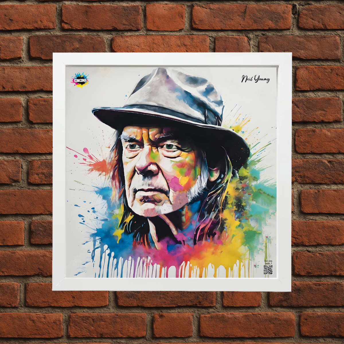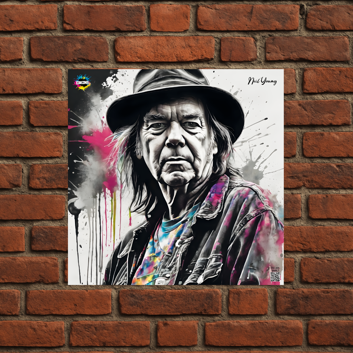 In ogni nostra grafica è presente anche un QR code che reindirizza al sito iconicomix.com, alla pagina ufficiale dell’icona che hai scelto. Una porta digitale che racconta la sua storia, le sue frasi e il suo mondo.