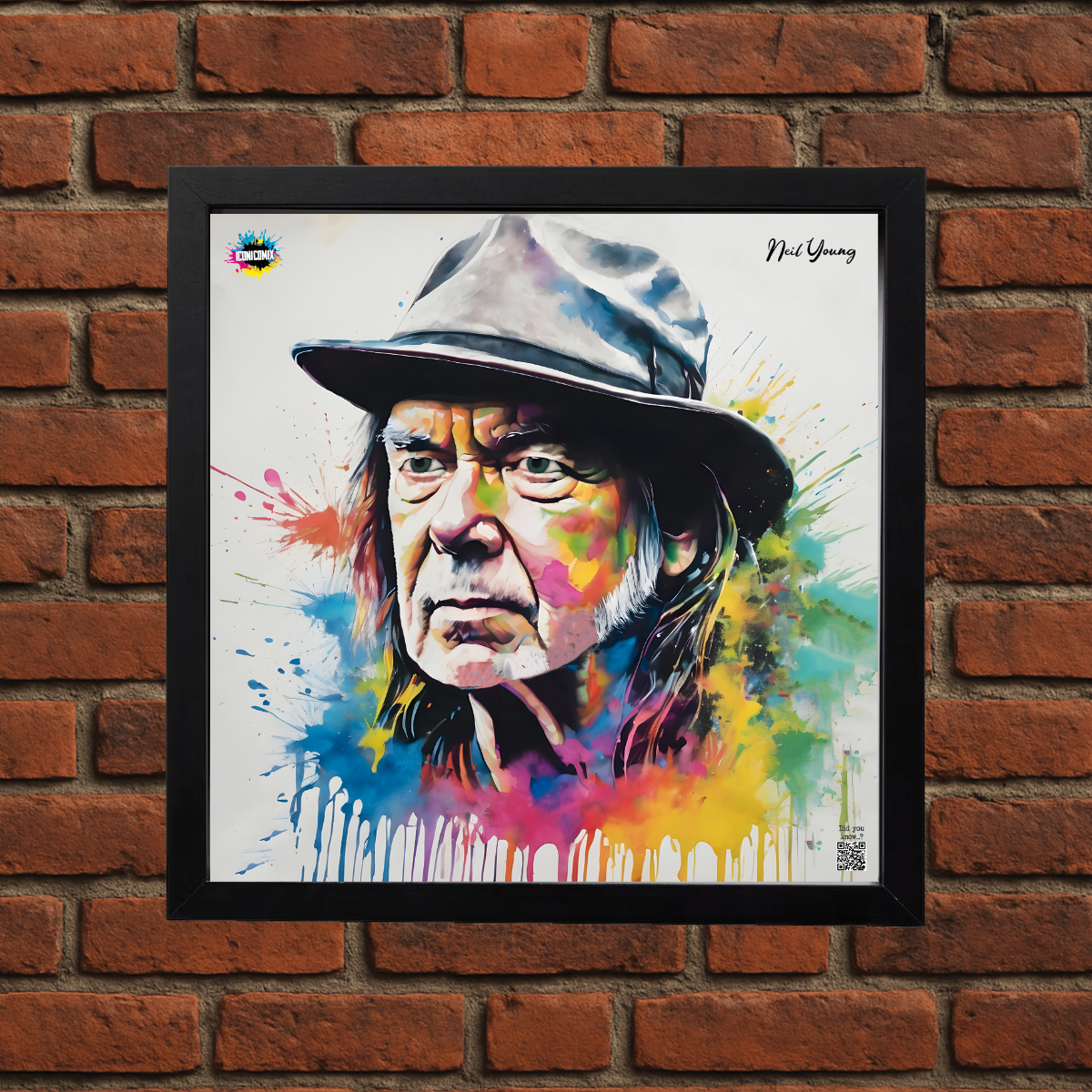 In ogni nostra grafica è presente anche un QR code che reindirizza al sito iconicomix.com, alla pagina ufficiale dell’icona che hai scelto. Una porta digitale che racconta la sua storia, le sue frasi e il suo mondo.