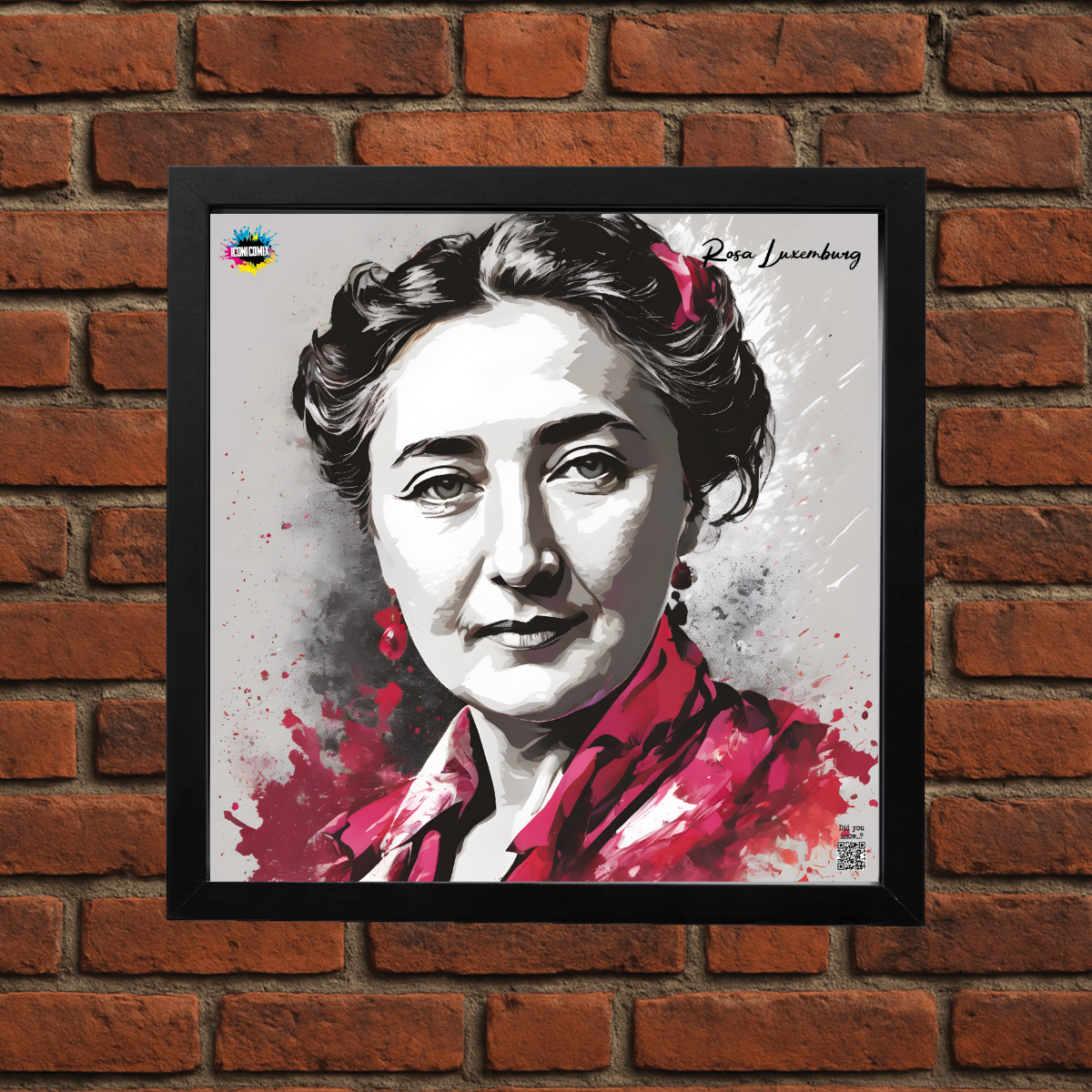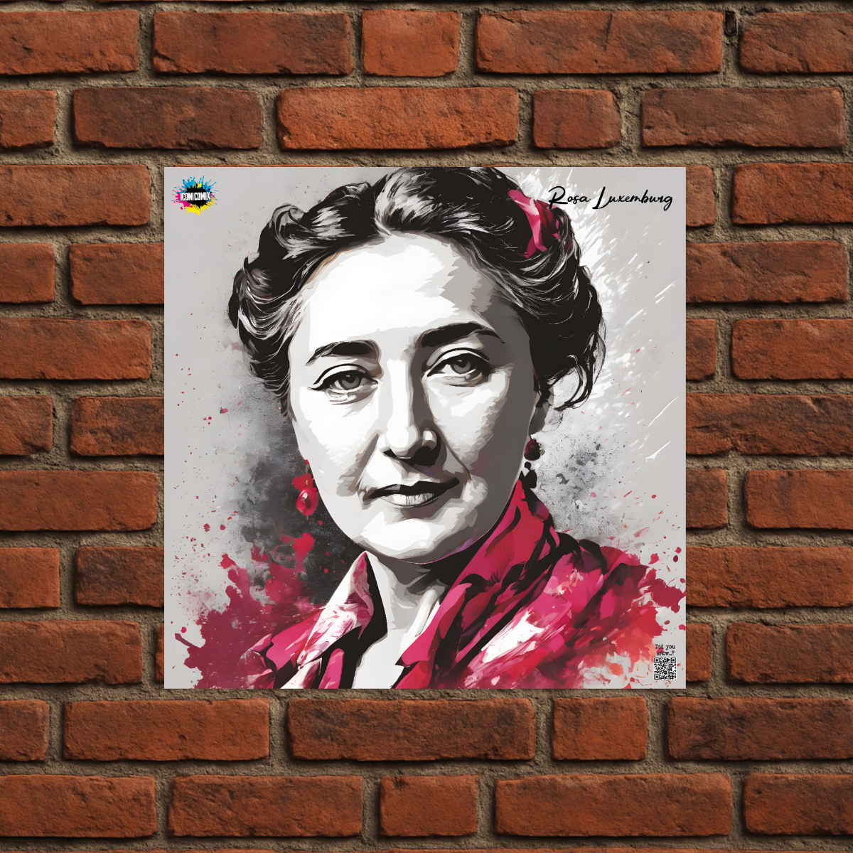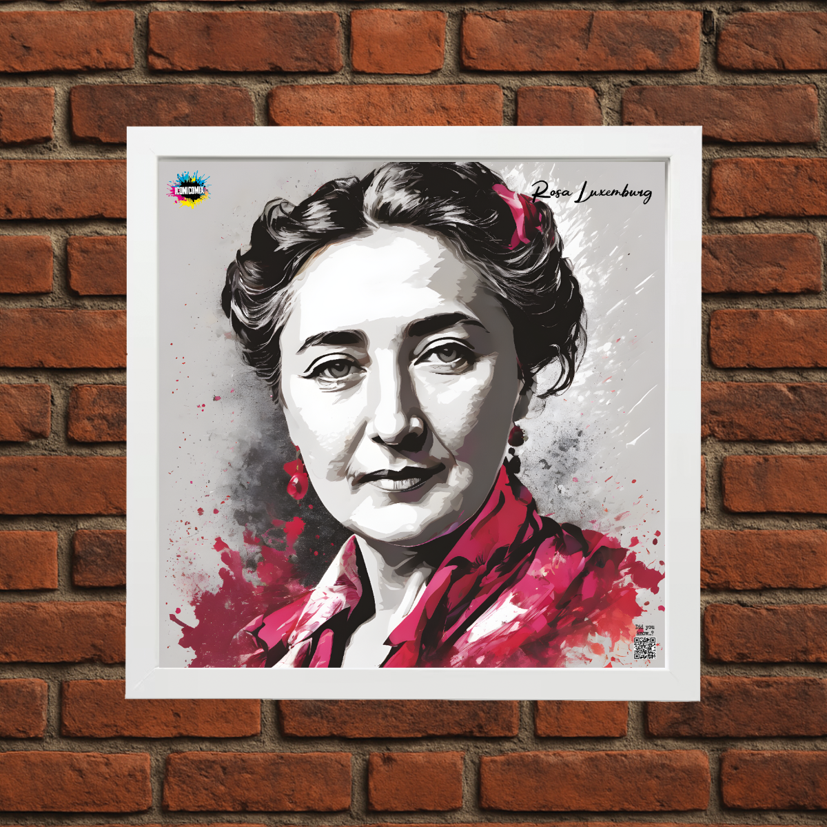 Chacun de nos visuels comporte également un code QR qui vous redirige vers le site web iconicomix.com, la page officielle de l'icône choisie. Une passerelle numérique qui vous dévoile son histoire, ses slogans et son univers.