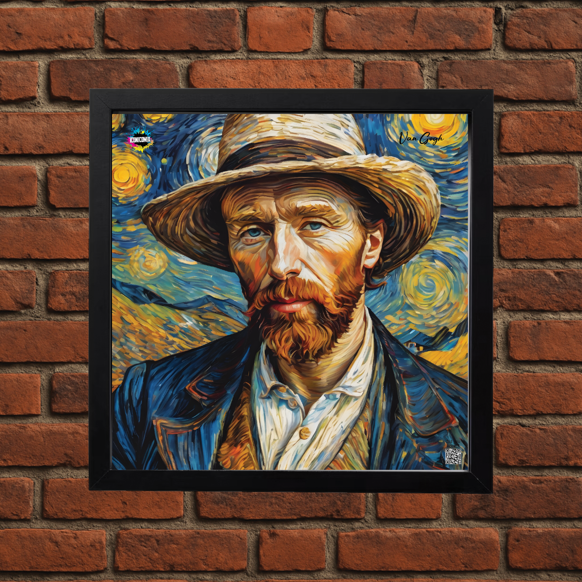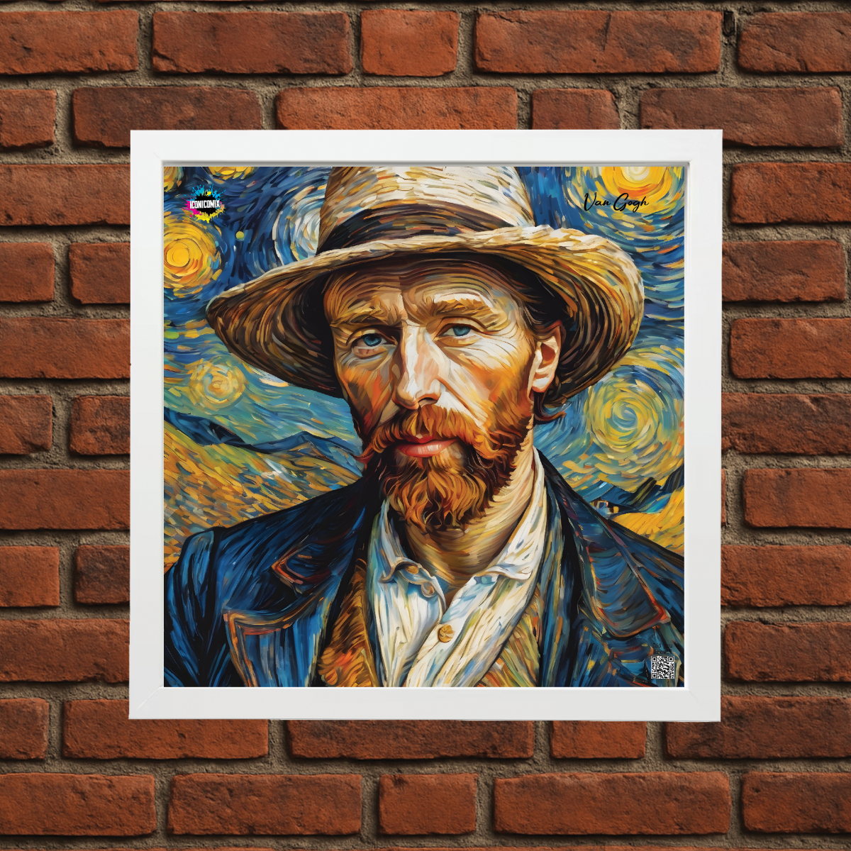 In ogni nostra grafica è presente anche un QR code che reindirizza al sito iconicomix.com, alla pagina ufficiale dell’icona che hai scelto. Una porta digitale che racconta la sua storia, le sue frasi e il suo mondo.