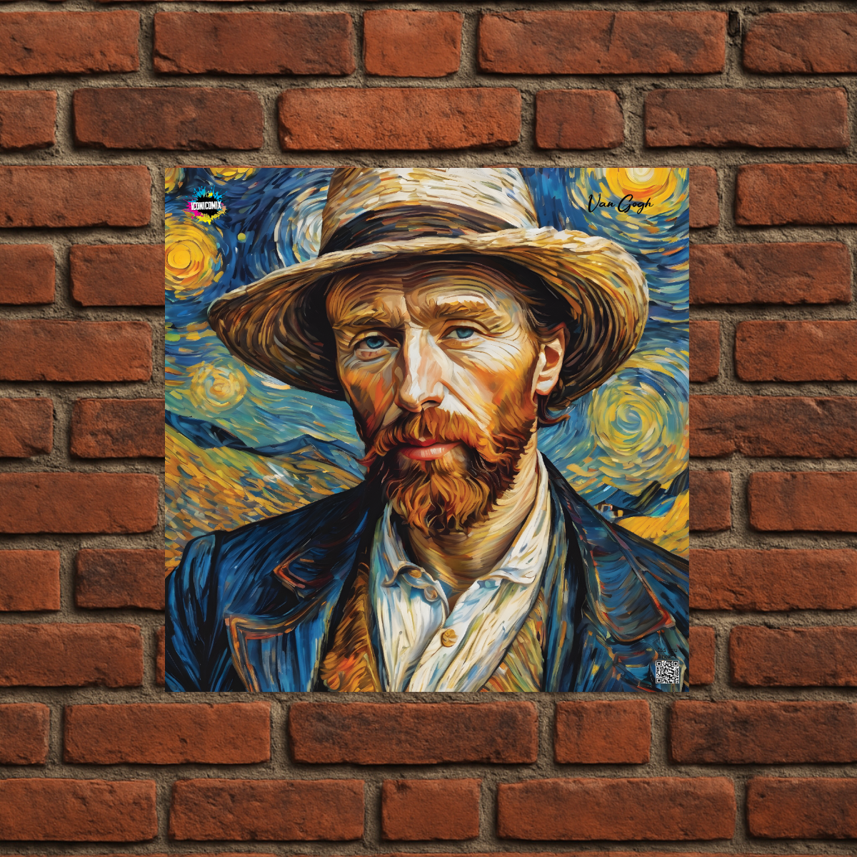 In ogni nostra grafica è presente anche un QR code che reindirizza al sito iconicomix.com, alla pagina ufficiale dell’icona che hai scelto. Una porta digitale che racconta la sua storia, le sue frasi e il suo mondo.