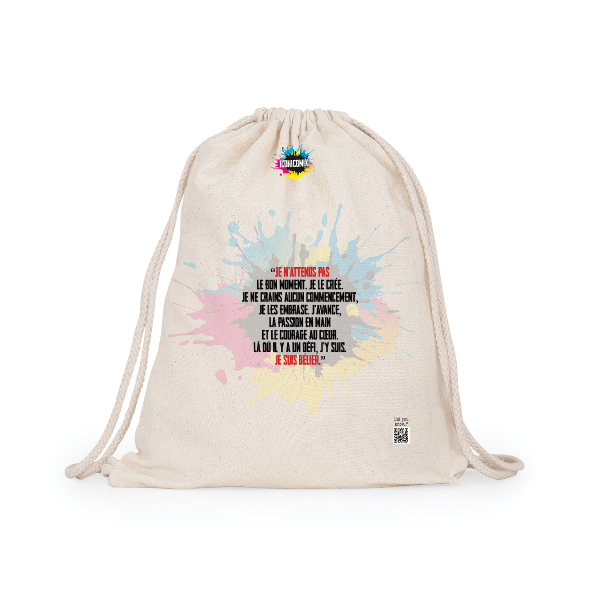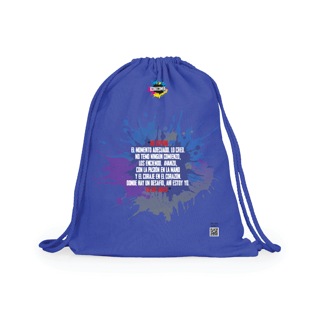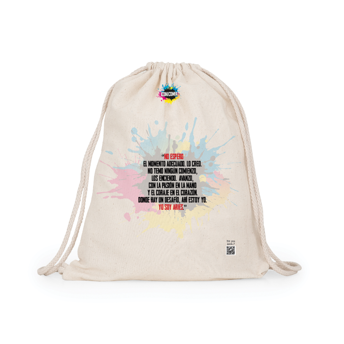 Zaino multiuso in cotone. Cordoni regolabili nella schiena in tinta di 8mm di spessore. 100% cotone,140 g/m².  Misure 37cm / 41cm