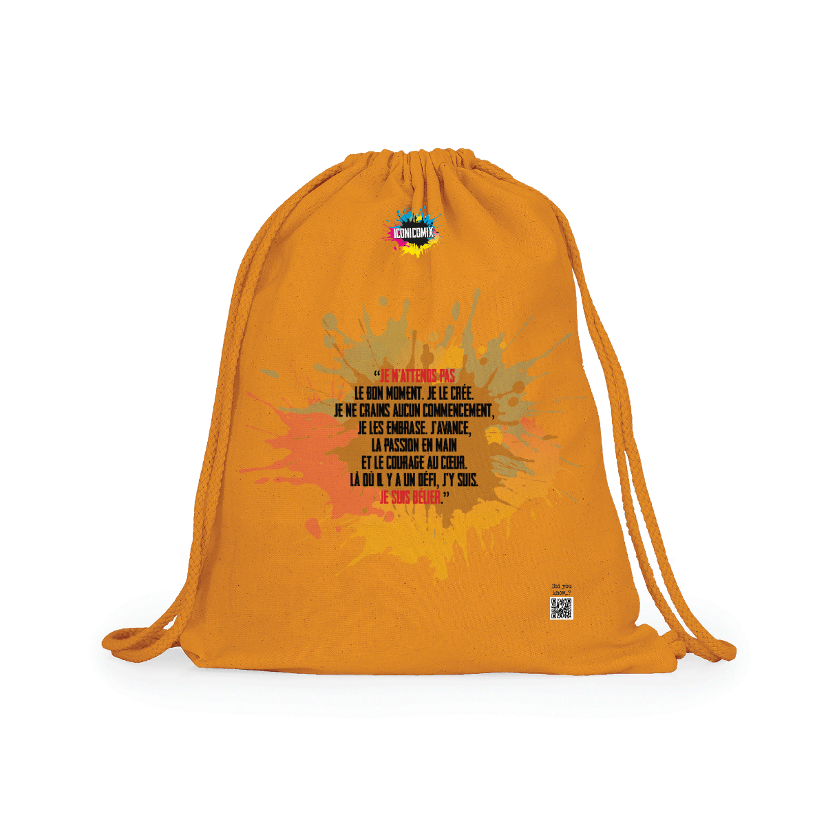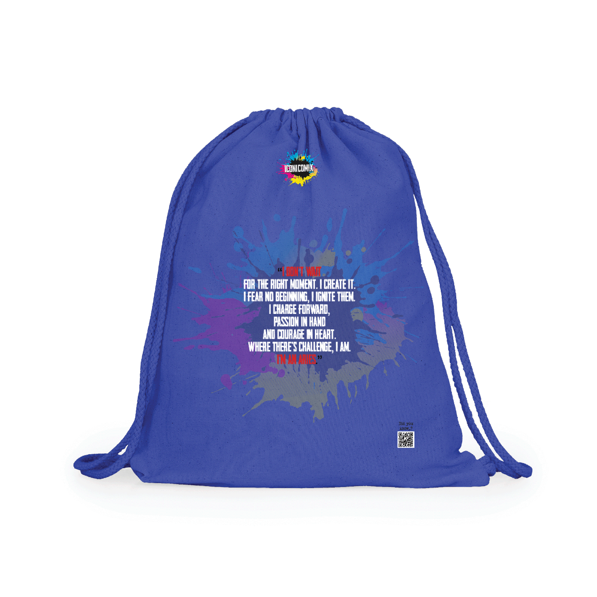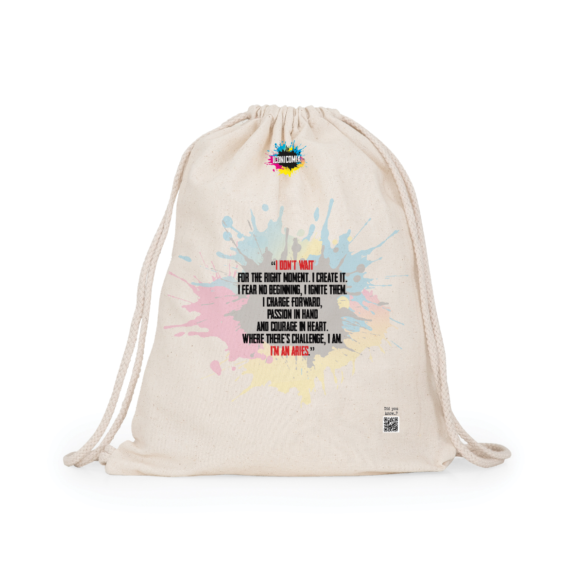 Zaino multiuso in cotone. Cordoni regolabili nella schiena in tinta di 8mm di spessore. 100% cotone,140 g/m².  Misure 37cm / 41cm