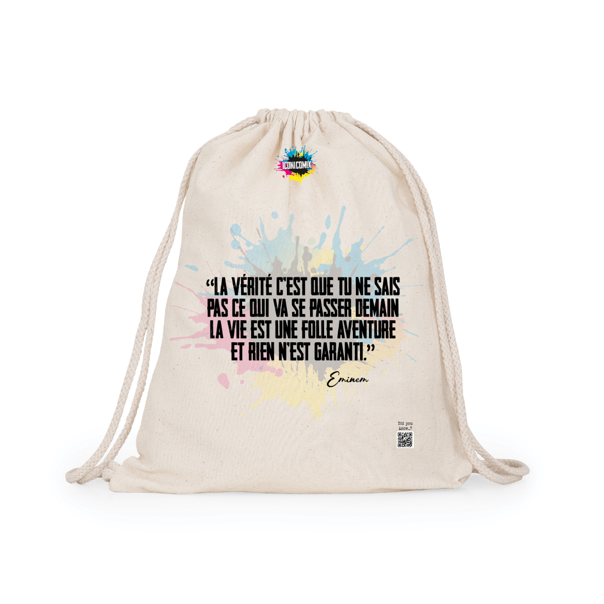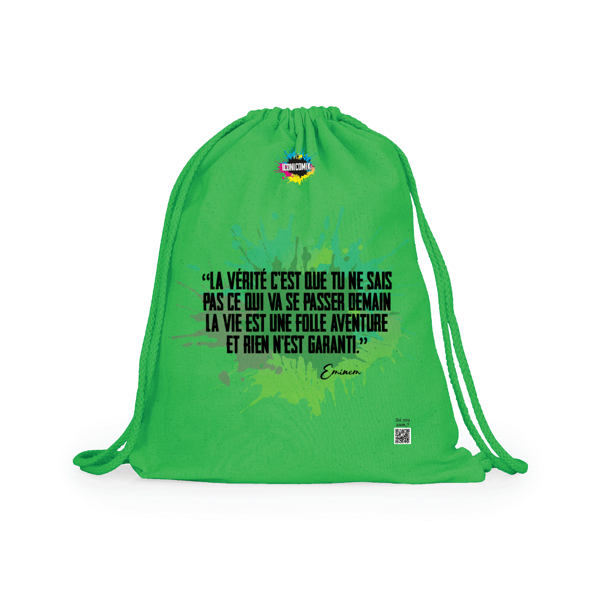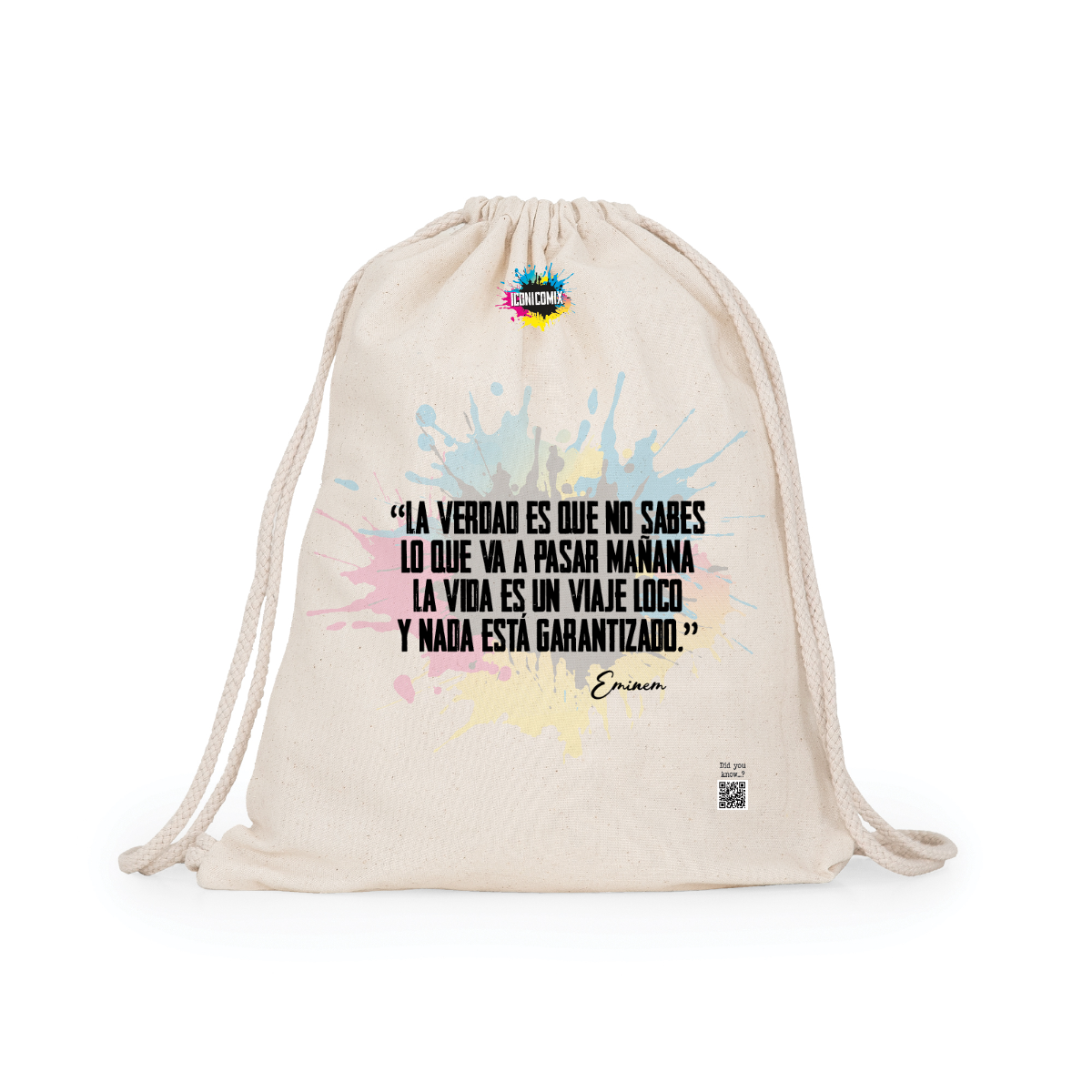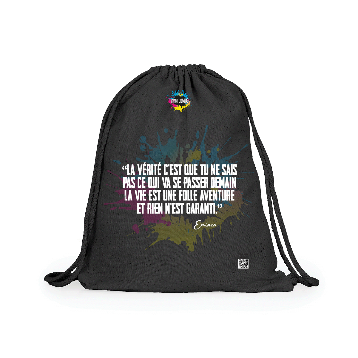 In ogni nostra grafica è presente anche un QR code che reindirizza al sito iconicomix.com, alla pagina ufficiale dell’icona che hai scelto. Una porta digitale che racconta la sua storia, le sue frasi e il suo mondo.