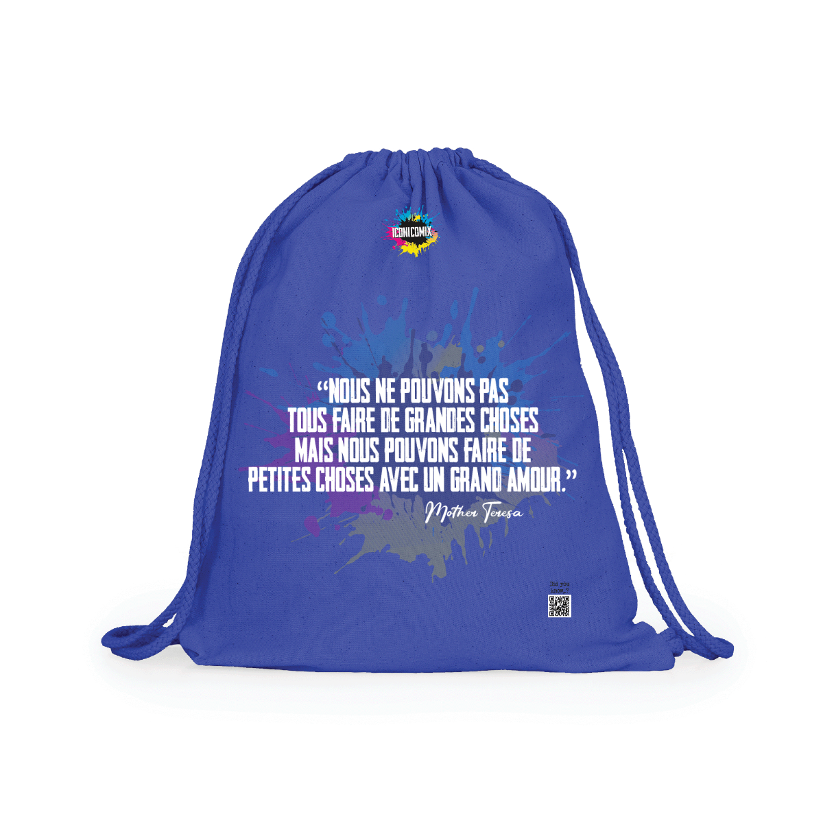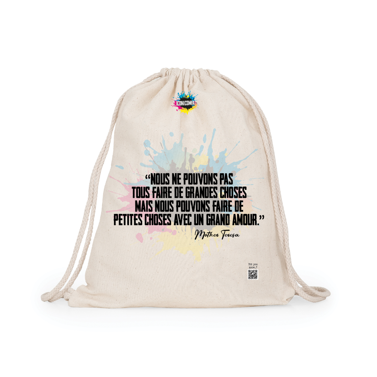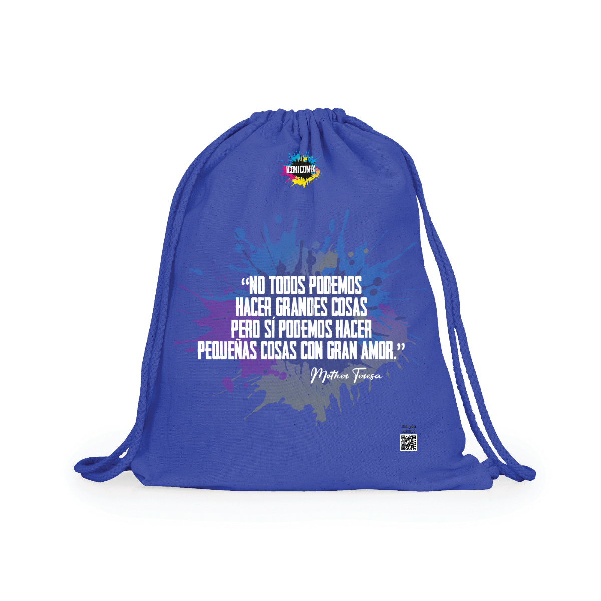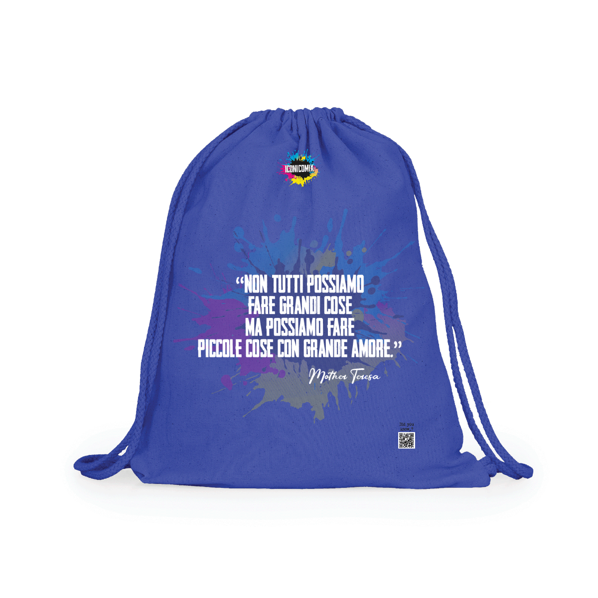 In ogni nostra grafica è presente anche un QR code che reindirizza al sito iconicomix.com, alla pagina ufficiale dell’icona che hai scelto. Una porta digitale che racconta la sua storia, le sue frasi e il suo mondo.