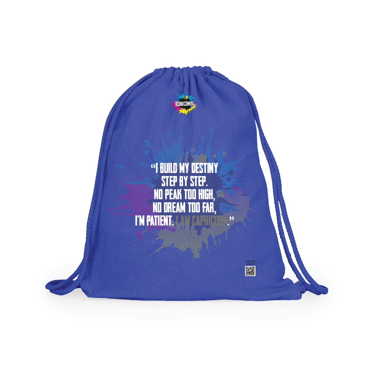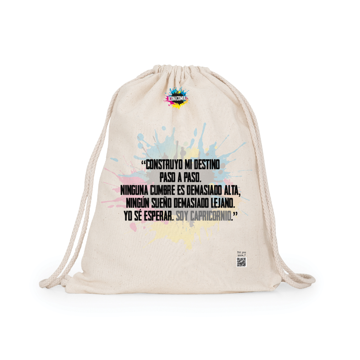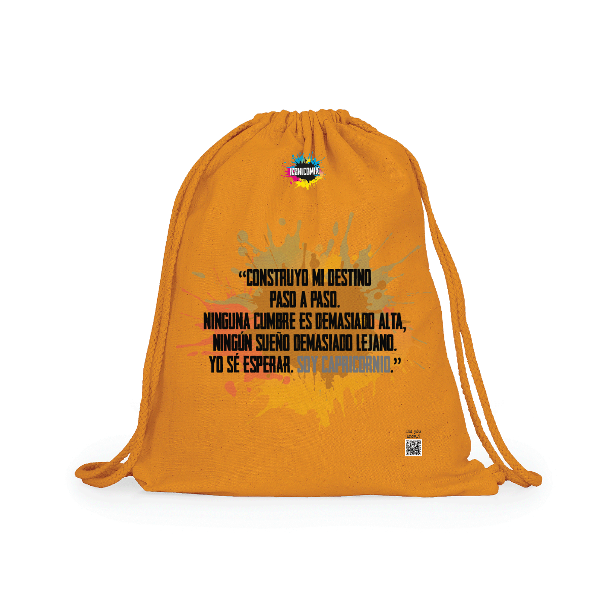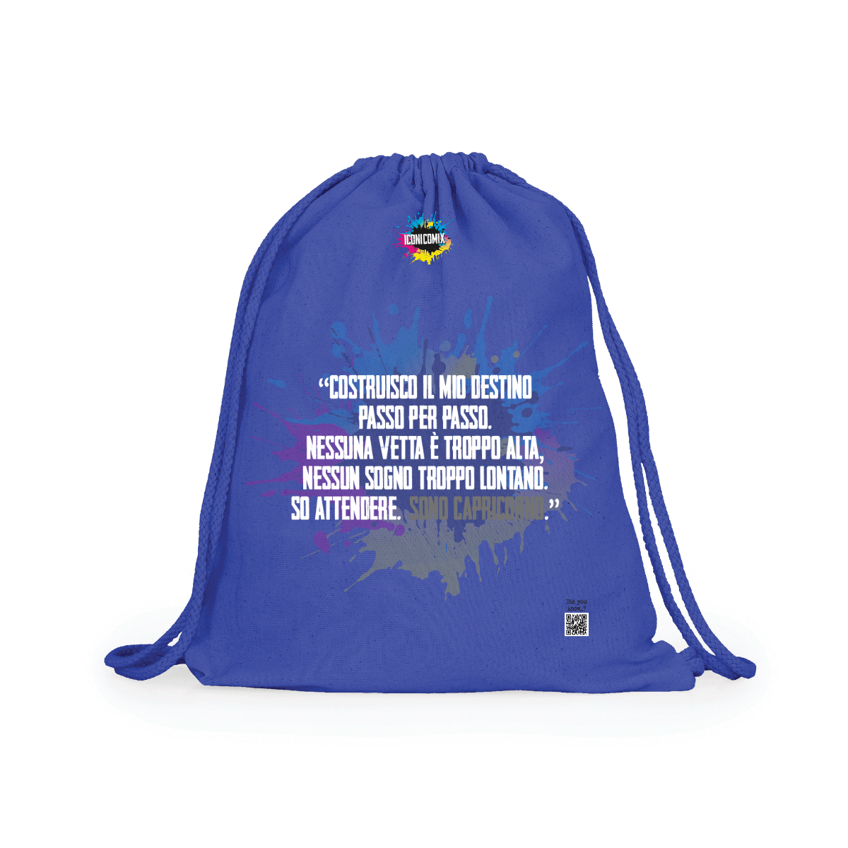 Zaino multiuso in cotone. Cordoni regolabili nella schiena in tinta di 8mm di spessore. 100% cotone,140 g/m².  Misure 37cm / 41cm