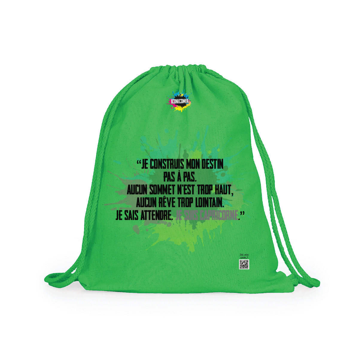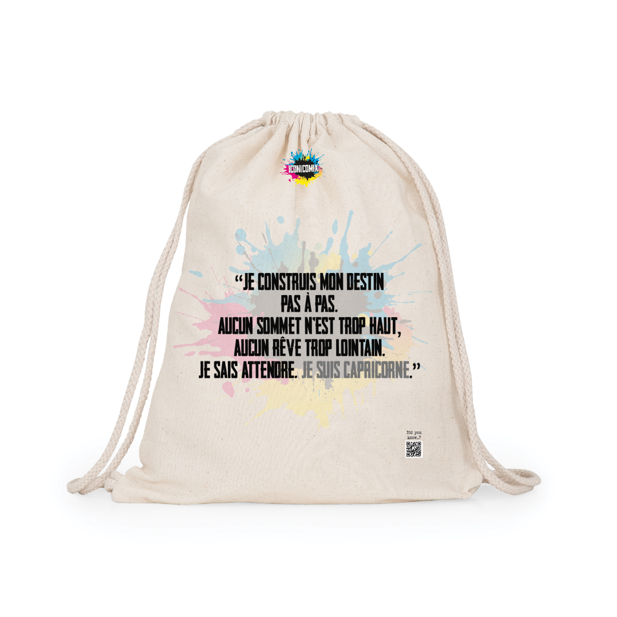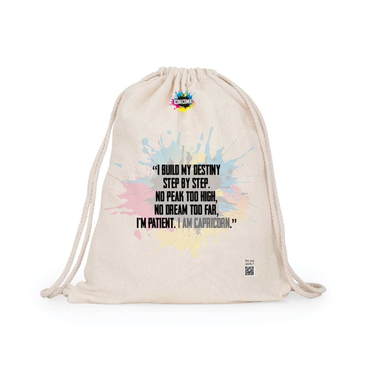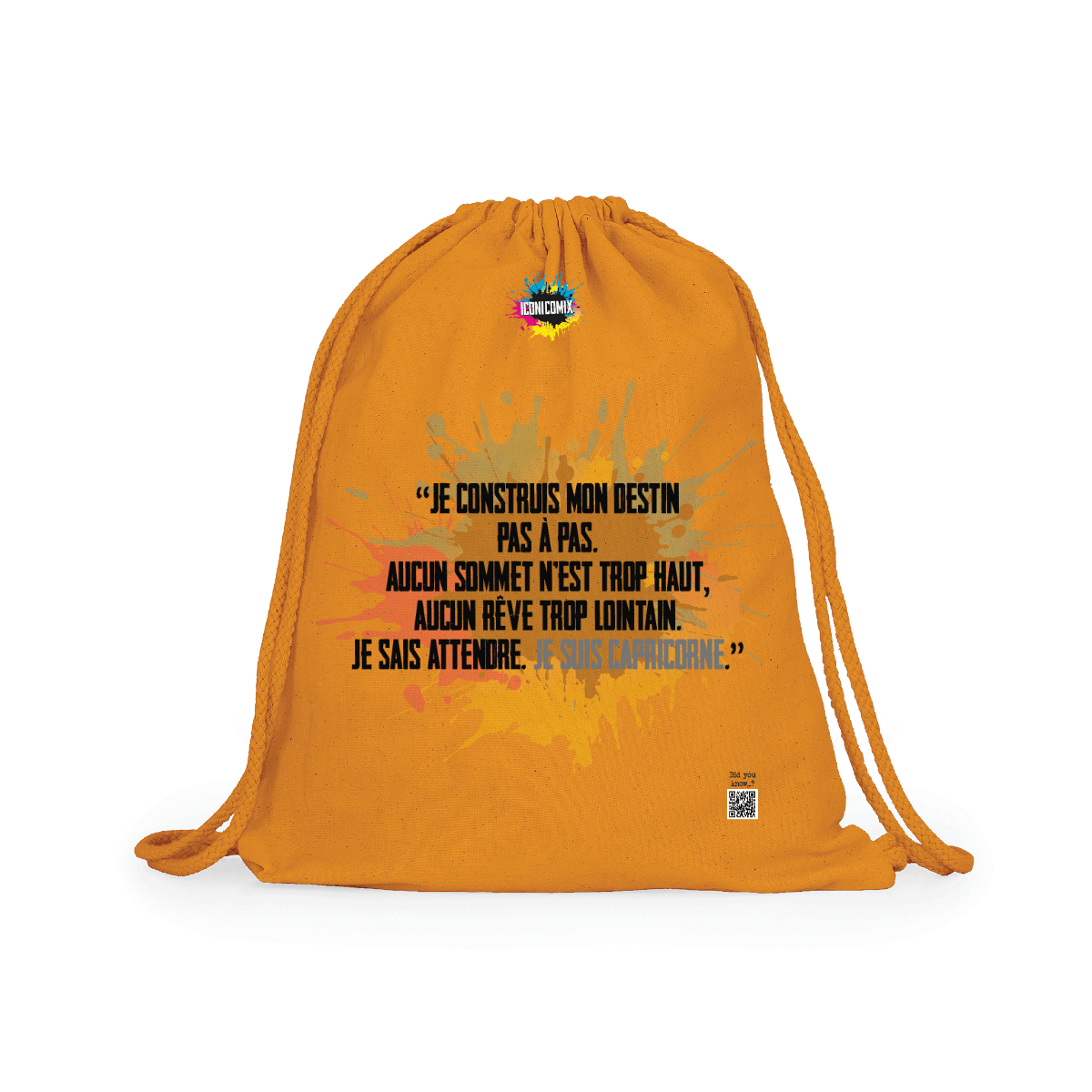 Zaino multiuso in cotone. Cordoni regolabili nella schiena in tinta di 8mm di spessore. 100% cotone,140 g/m².  Misure 37cm / 41cm