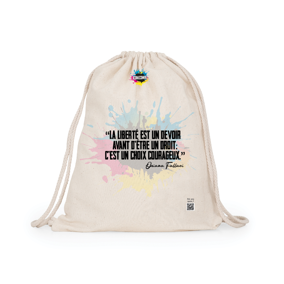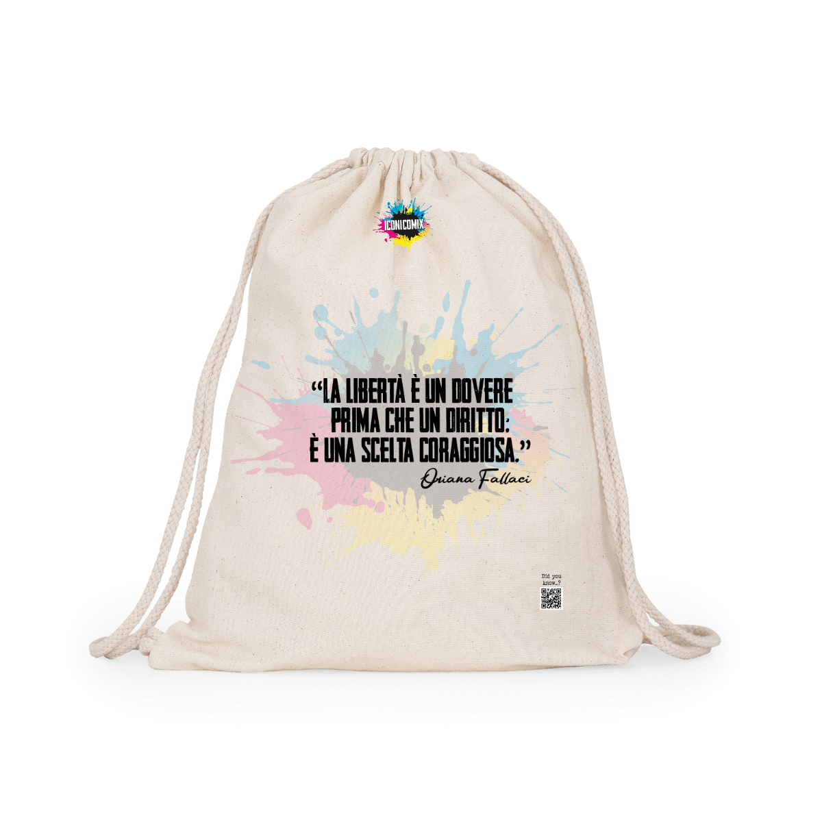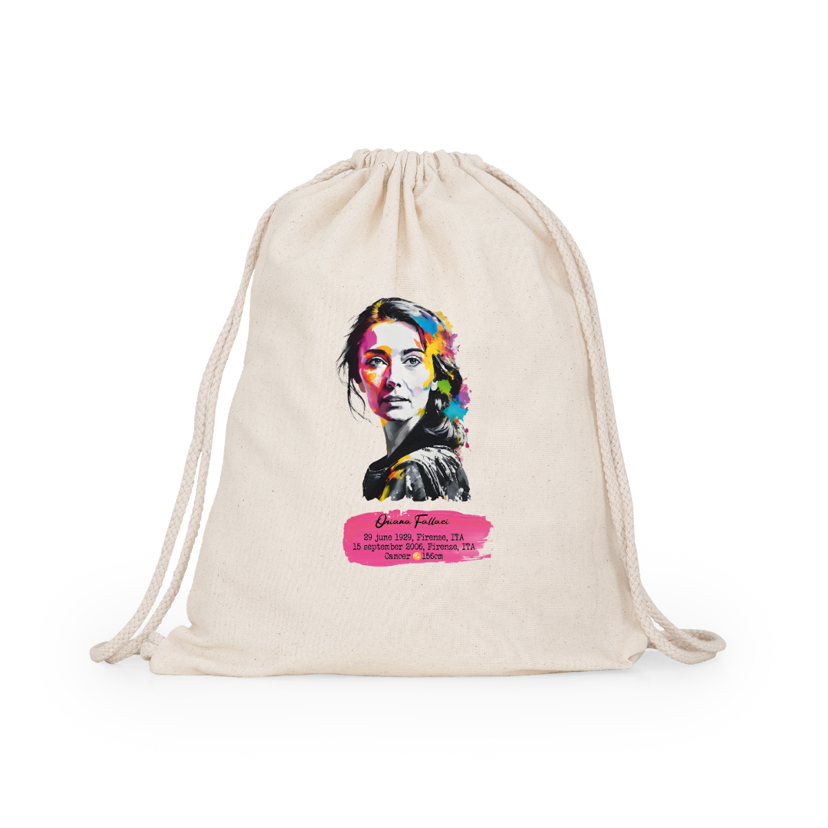 Zaino multiuso in cotone. Cordoni regolabili nella schiena in tinta di 8mm di spessore. 100% cotone,140 g/m².  Misure 37cm / 41cm