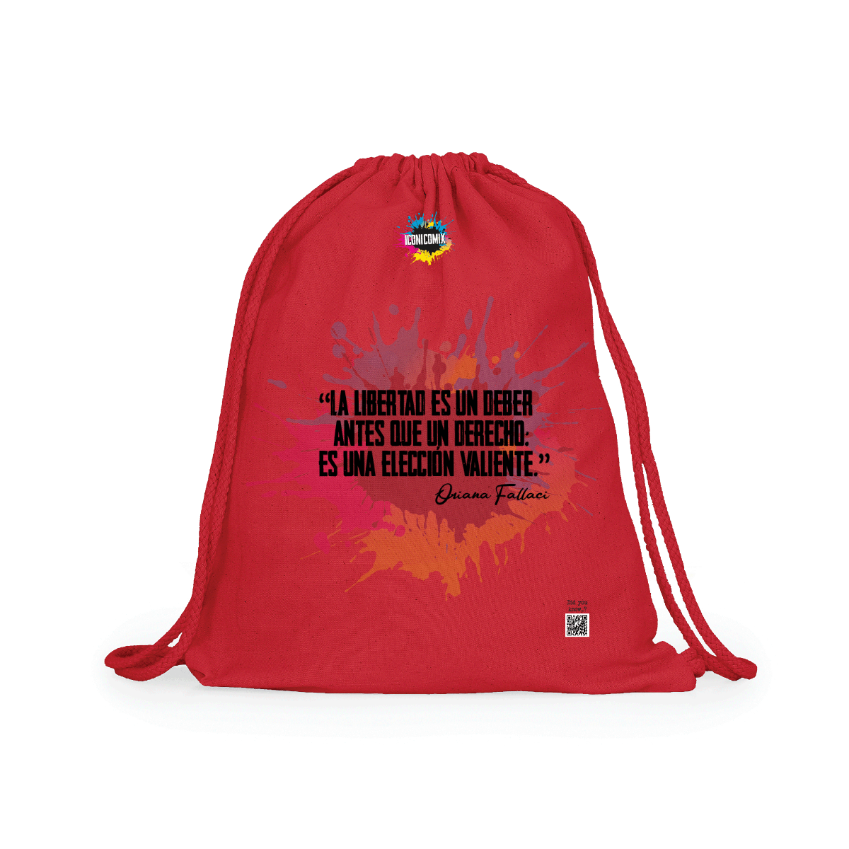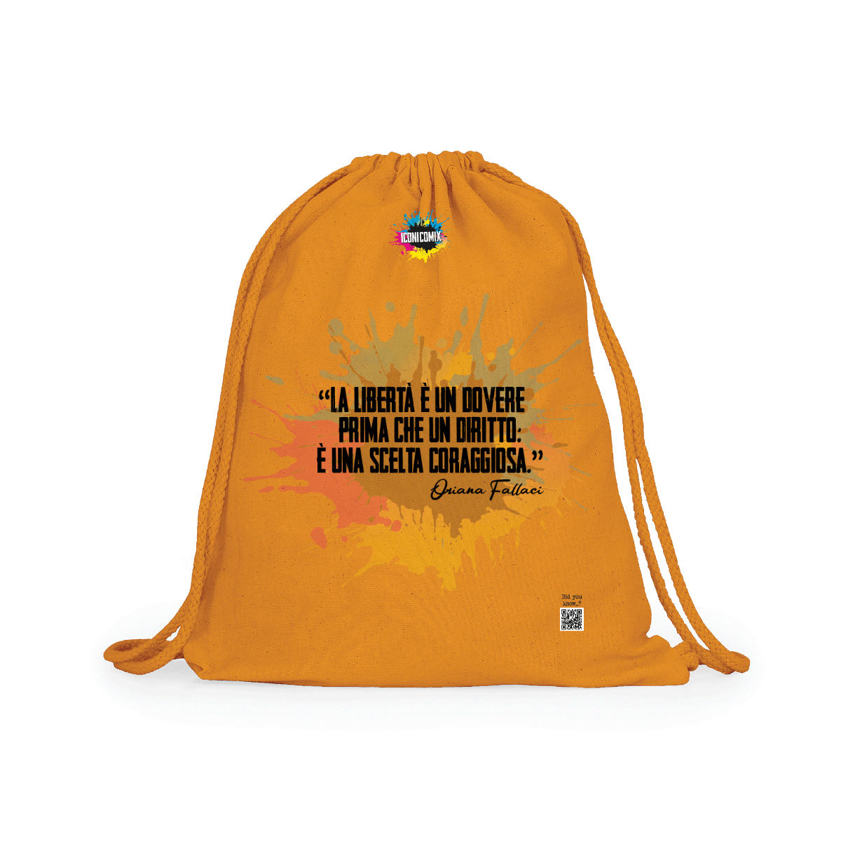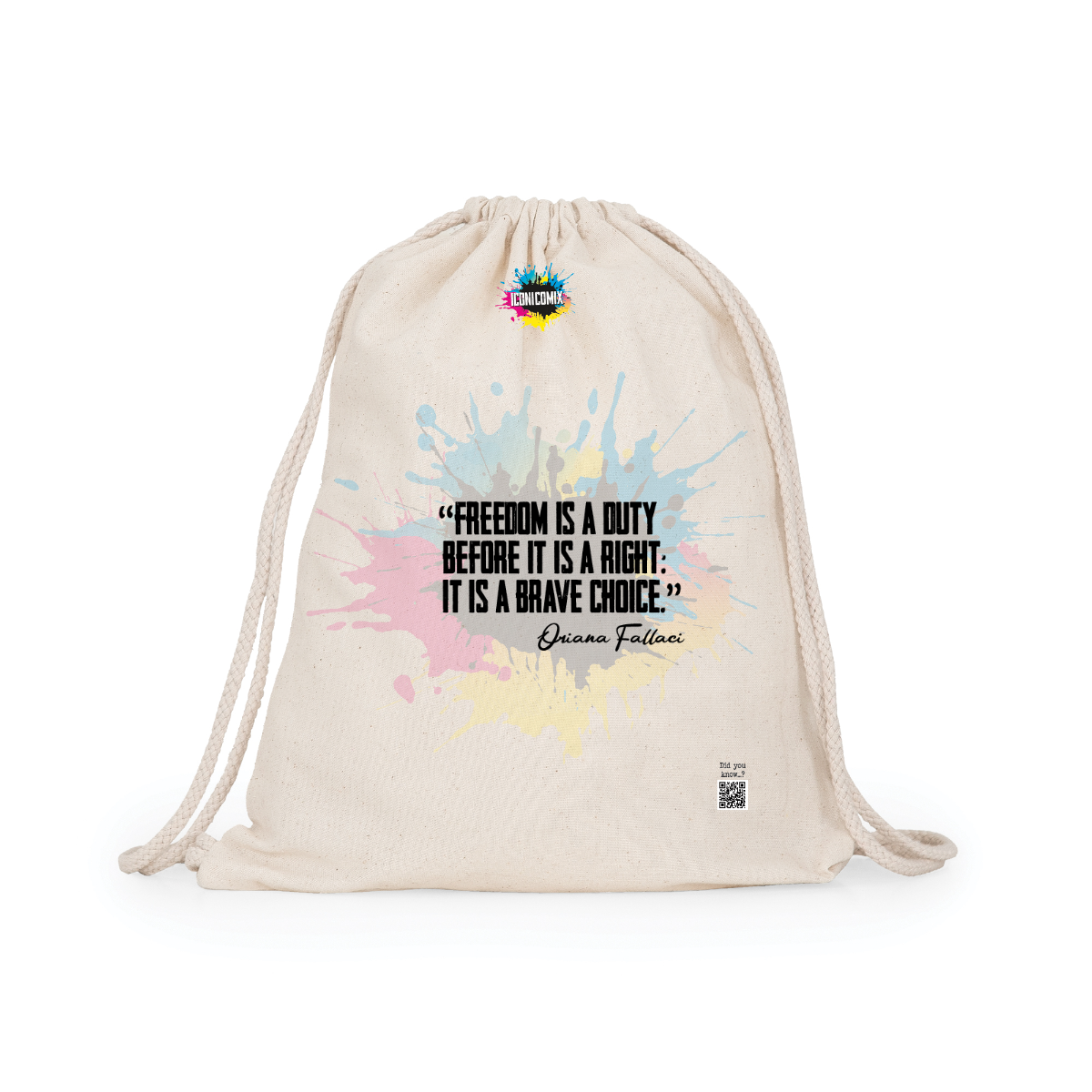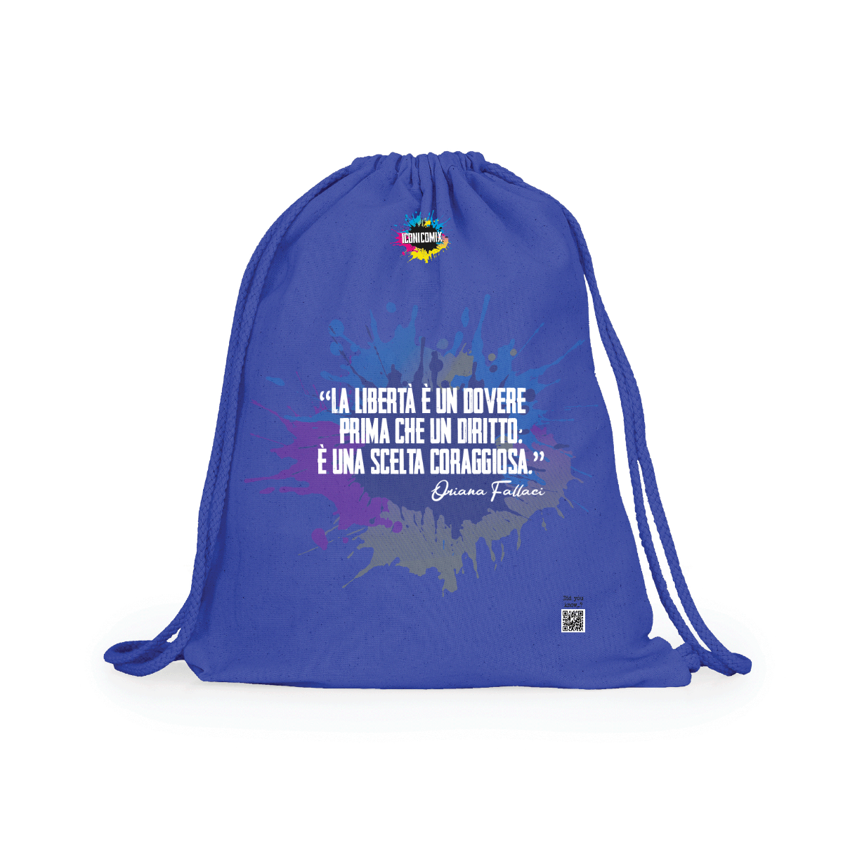 Zaino multiuso in cotone. Cordoni regolabili nella schiena in tinta di 8mm di spessore. 100% cotone,140 g/m².  Misure 37cm / 41cm