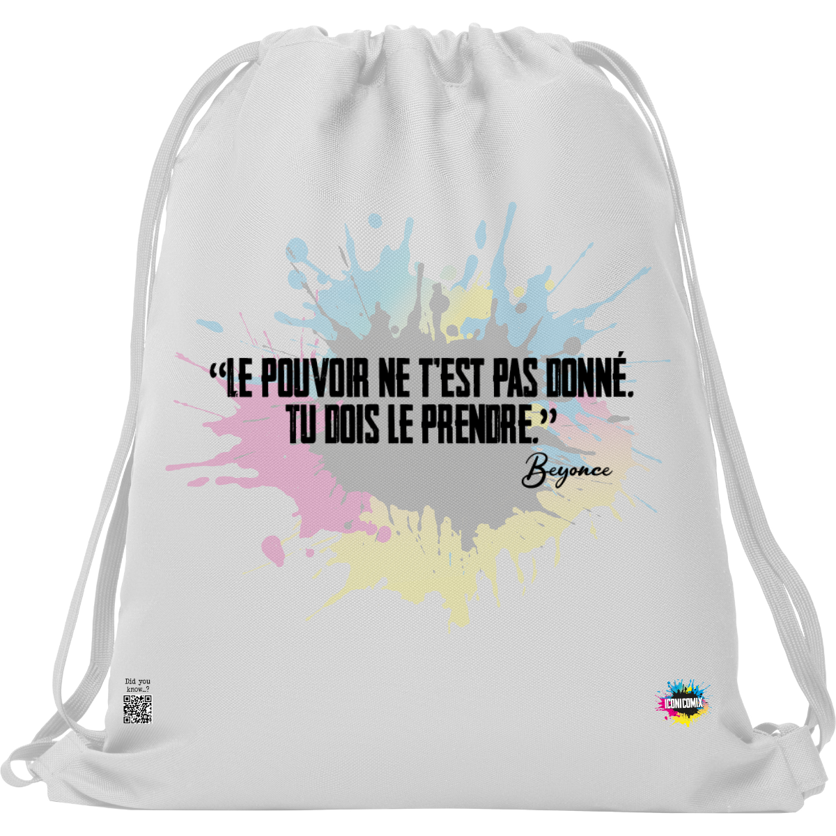Multipurpose cotton backpack. Adjustable matching drawstrings on the back, 8 mm thick. 100% cotton, 140 g/m². Measures 37cm / 41cm