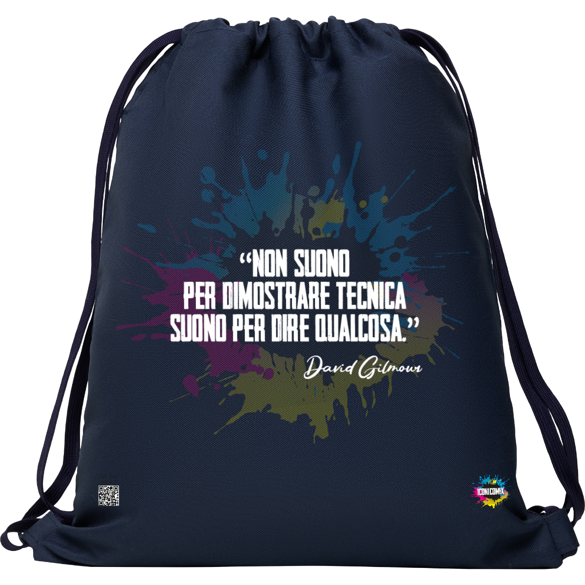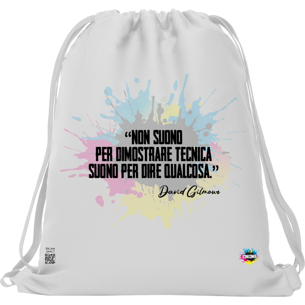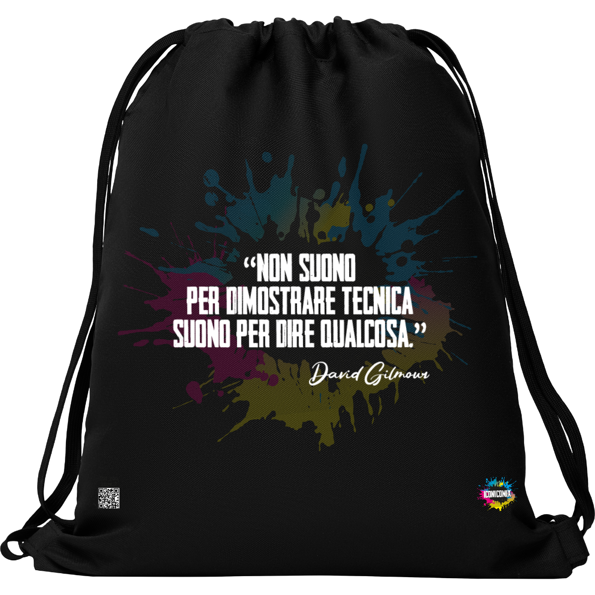In ogni nostra grafica è presente anche un QR code che reindirizza al sito iconicomix.com, alla pagina ufficiale dell’icona che hai scelto. Una porta digitale che racconta la sua storia, le sue frasi e il suo mondo.
