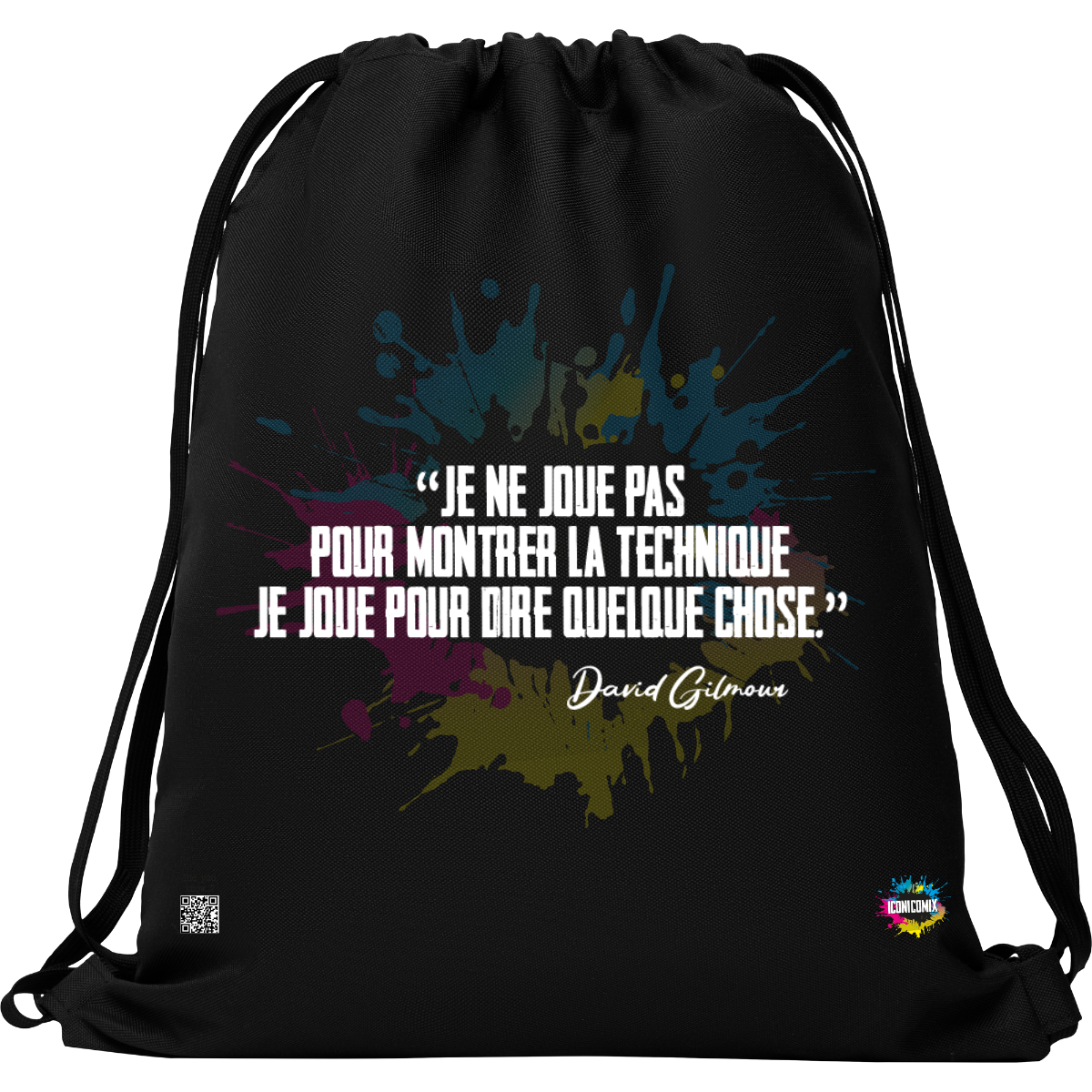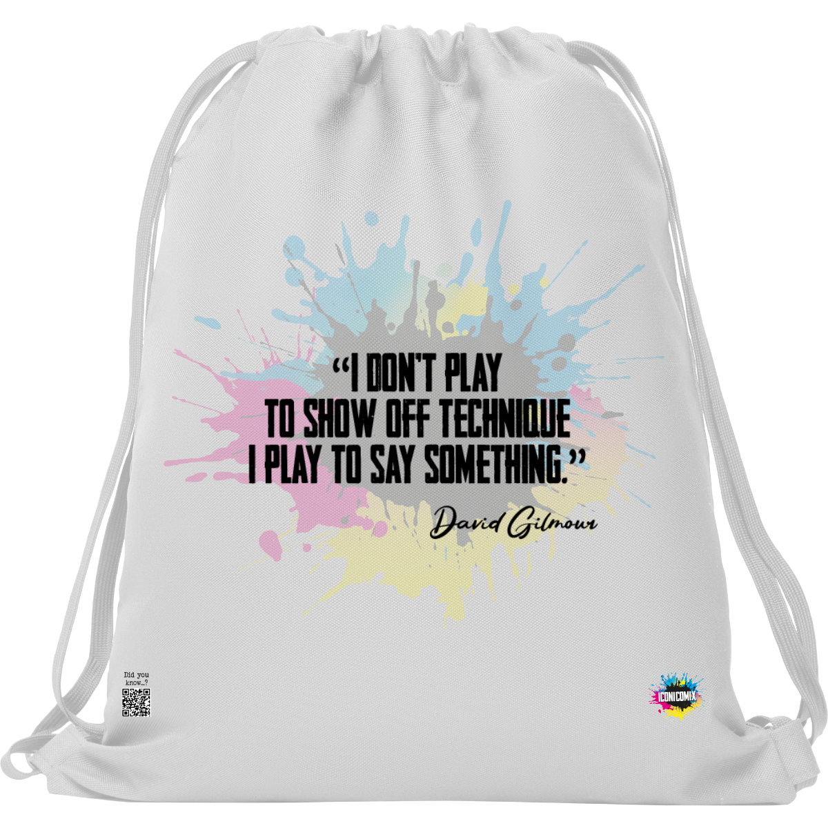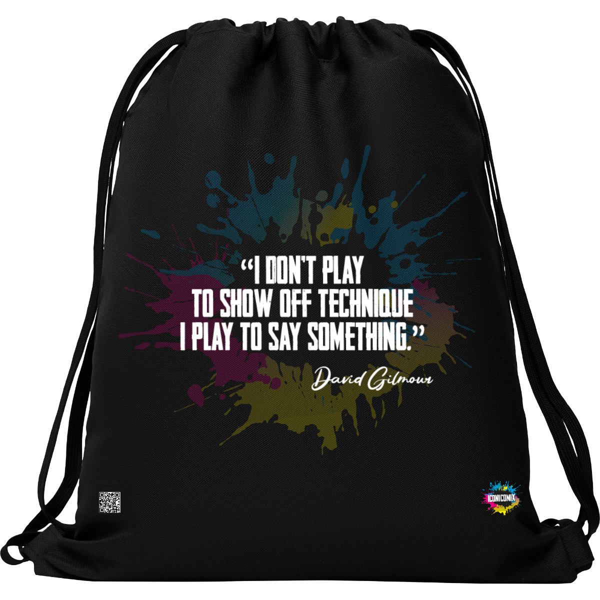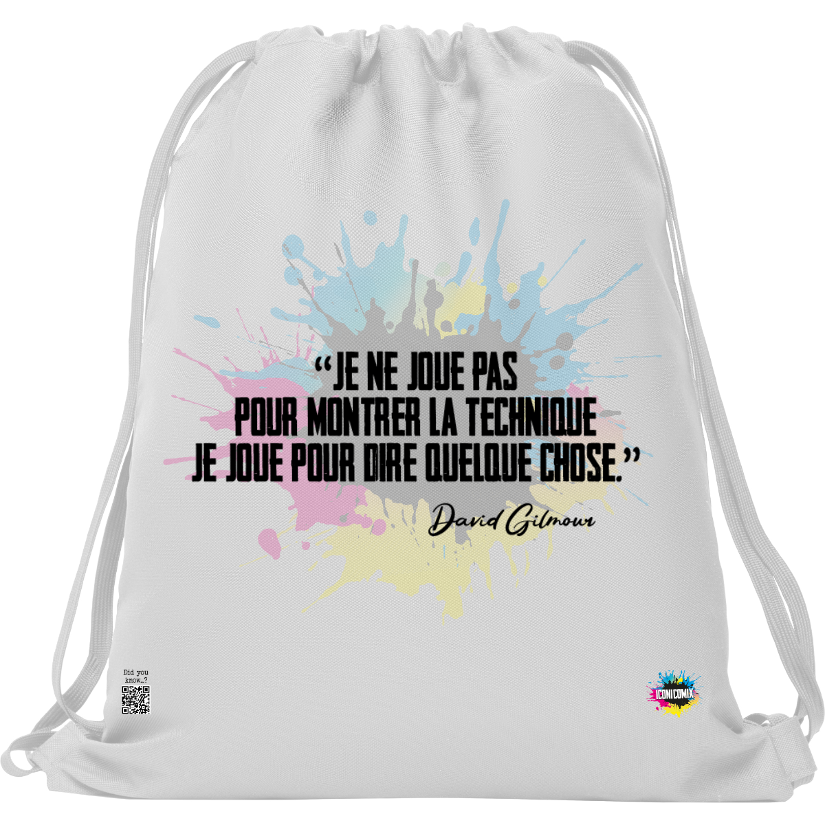 In ogni nostra grafica è presente anche un QR code che reindirizza al sito iconicomix.com, alla pagina ufficiale dell’icona che hai scelto. Una porta digitale che racconta la sua storia, le sue frasi e il suo mondo.