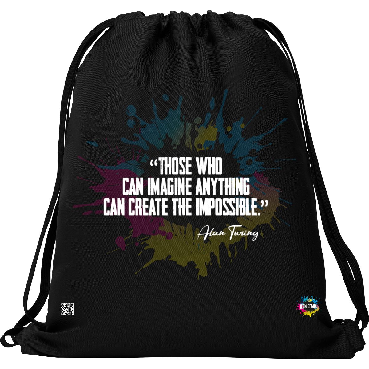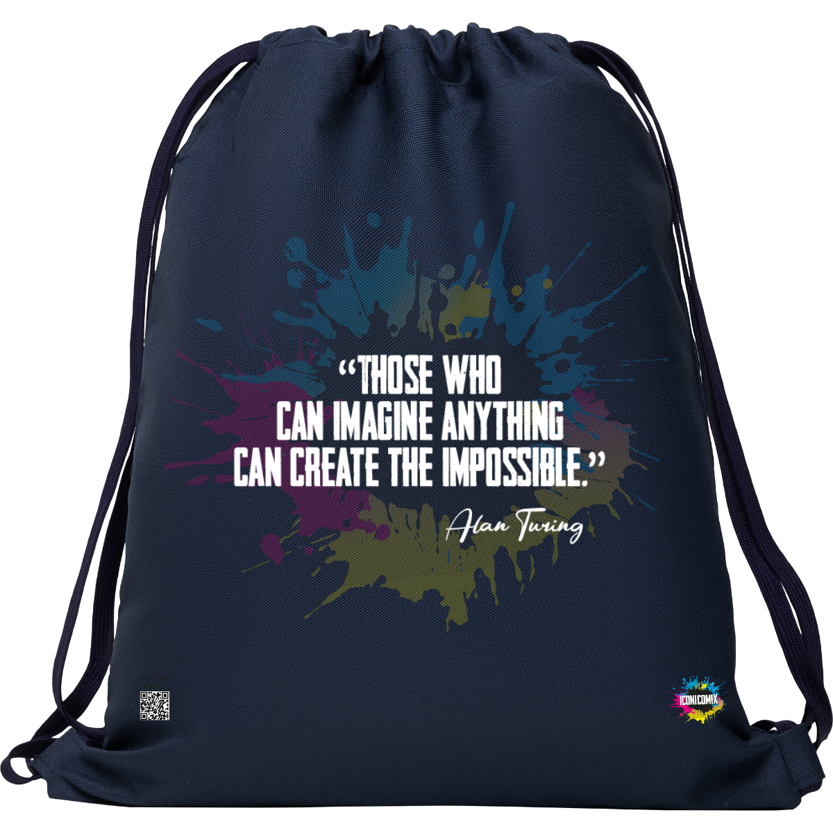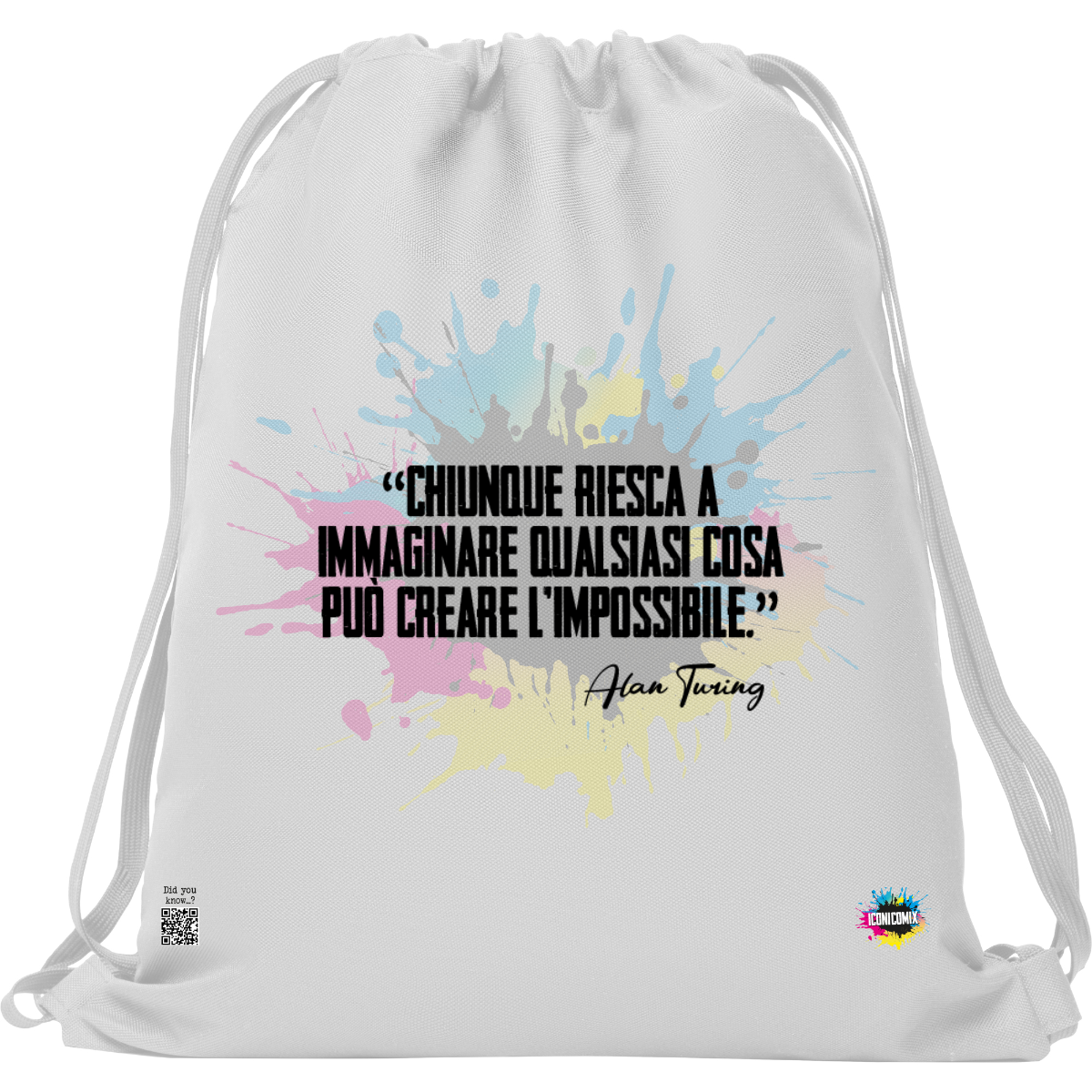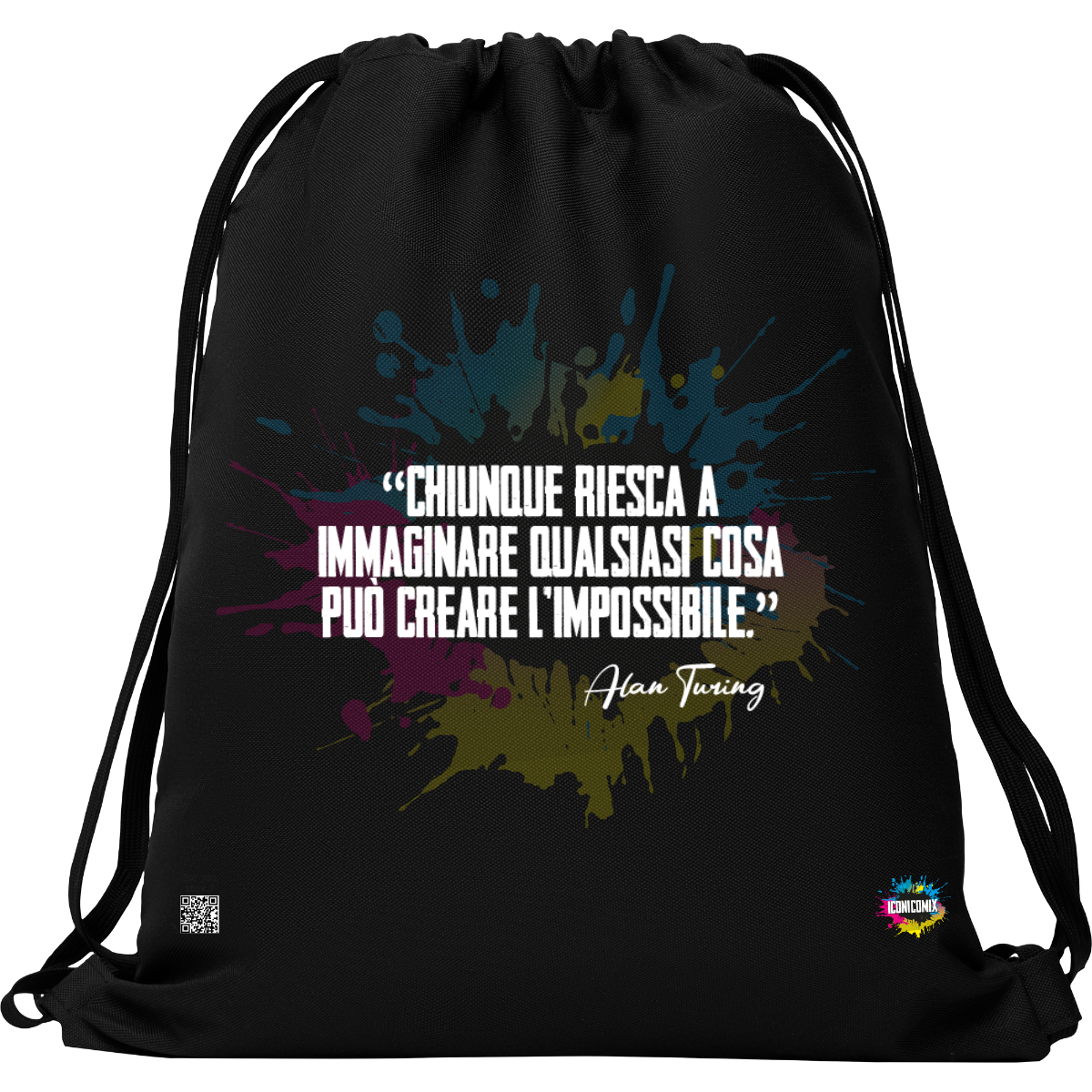 In ogni nostra grafica è presente anche un QR code che reindirizza al sito iconicomix.com, alla pagina ufficiale dell’icona che hai scelto. Una porta digitale che racconta la sua storia, le sue frasi e il suo mondo.