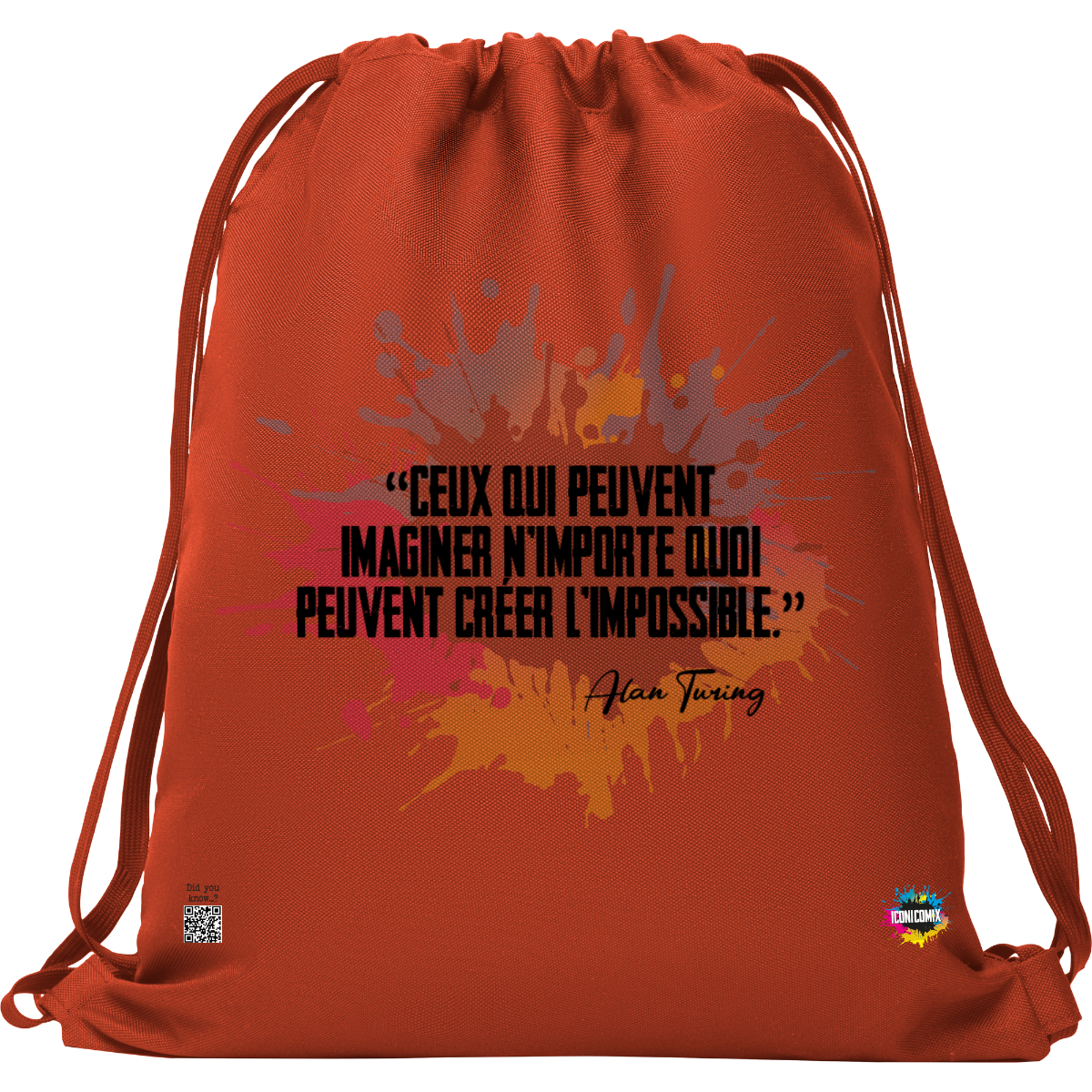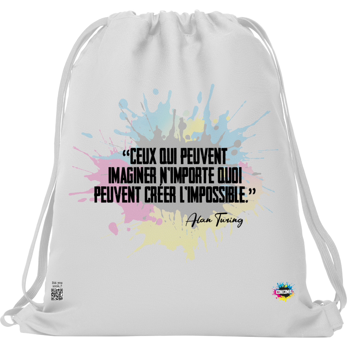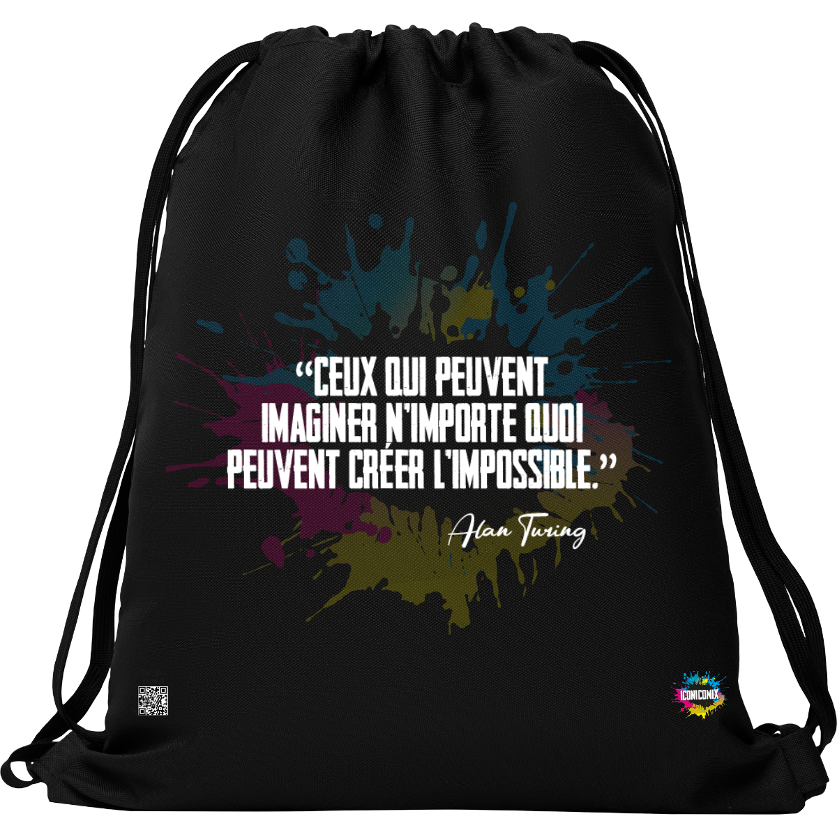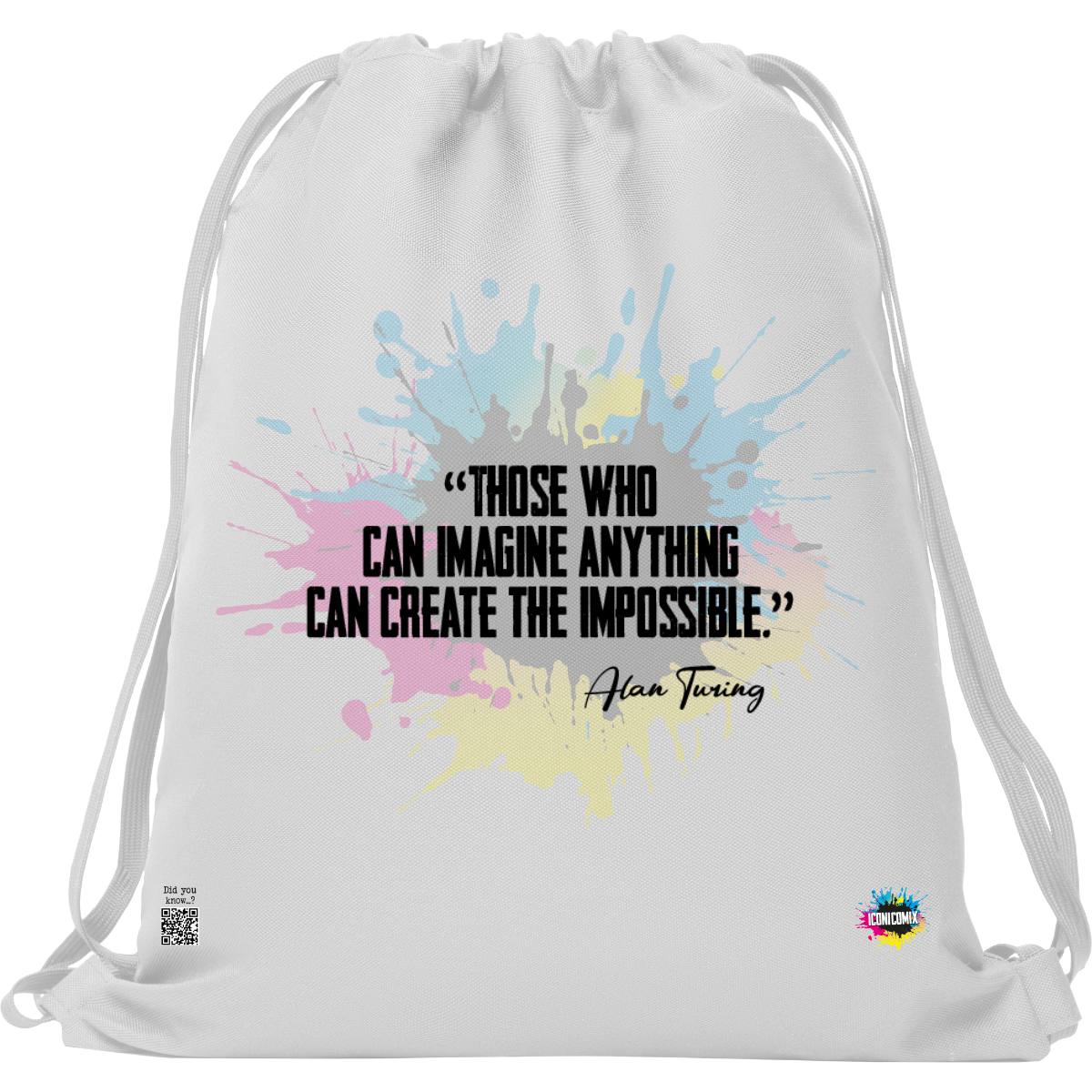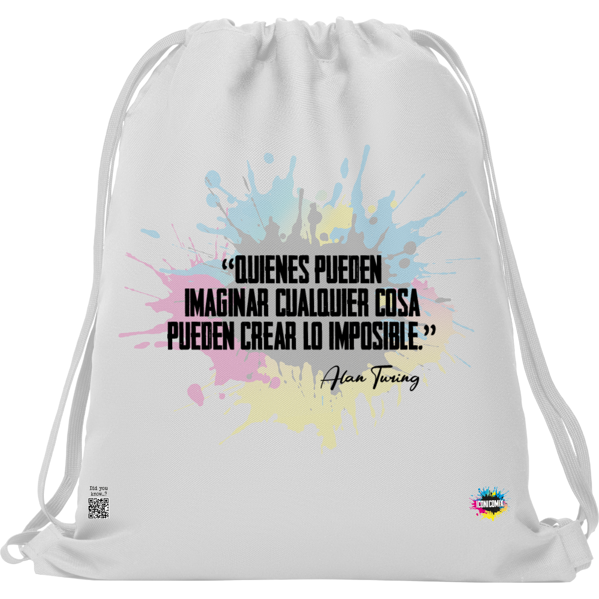 In ogni nostra grafica è presente anche un QR code che reindirizza al sito iconicomix.com, alla pagina ufficiale dell’icona che hai scelto. Una porta digitale che racconta la sua storia, le sue frasi e il suo mondo.