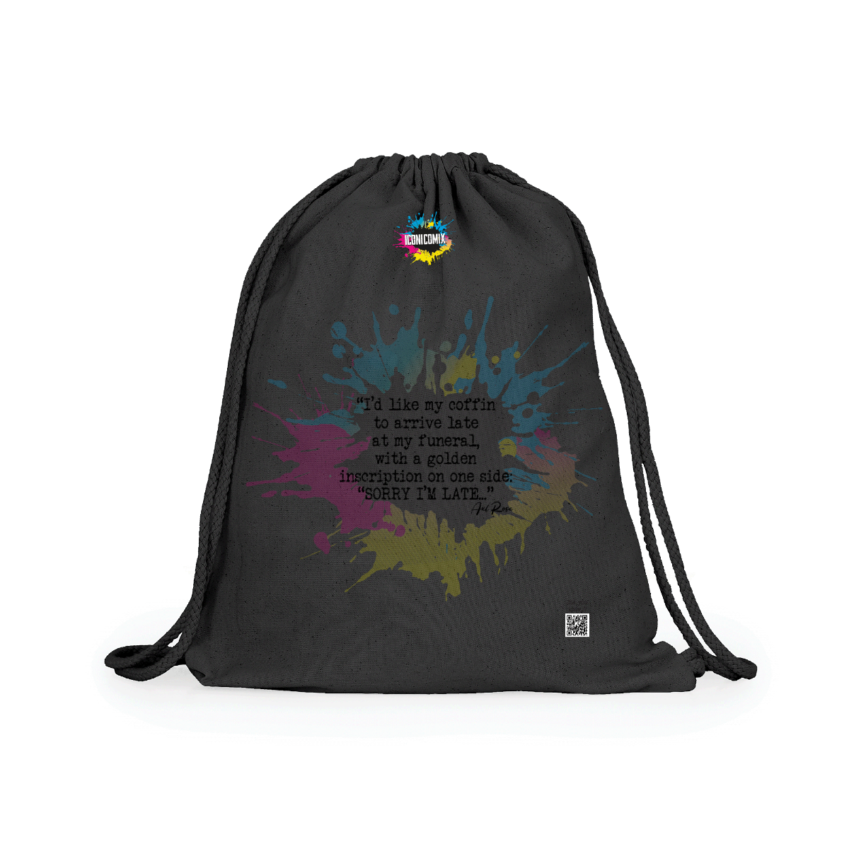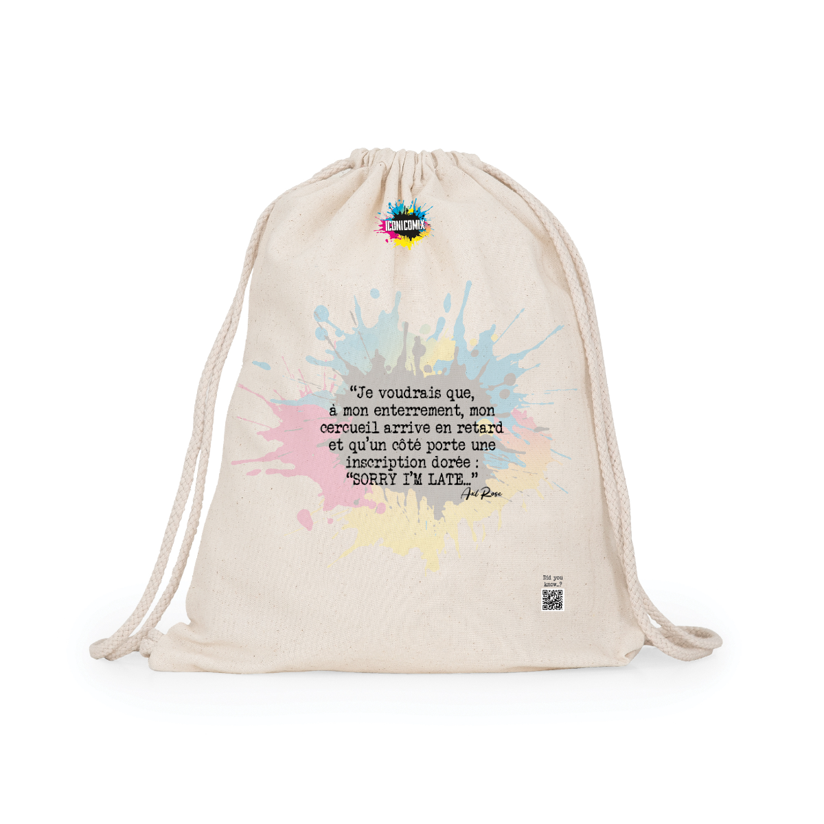 Sac à dos polyvalent en coton. Cordons réglables assortis à l'arrière, d'une épaisseur de 8 mm. 100 % coton, 140 g/m².  Dimensions 37 cm / 41 cm