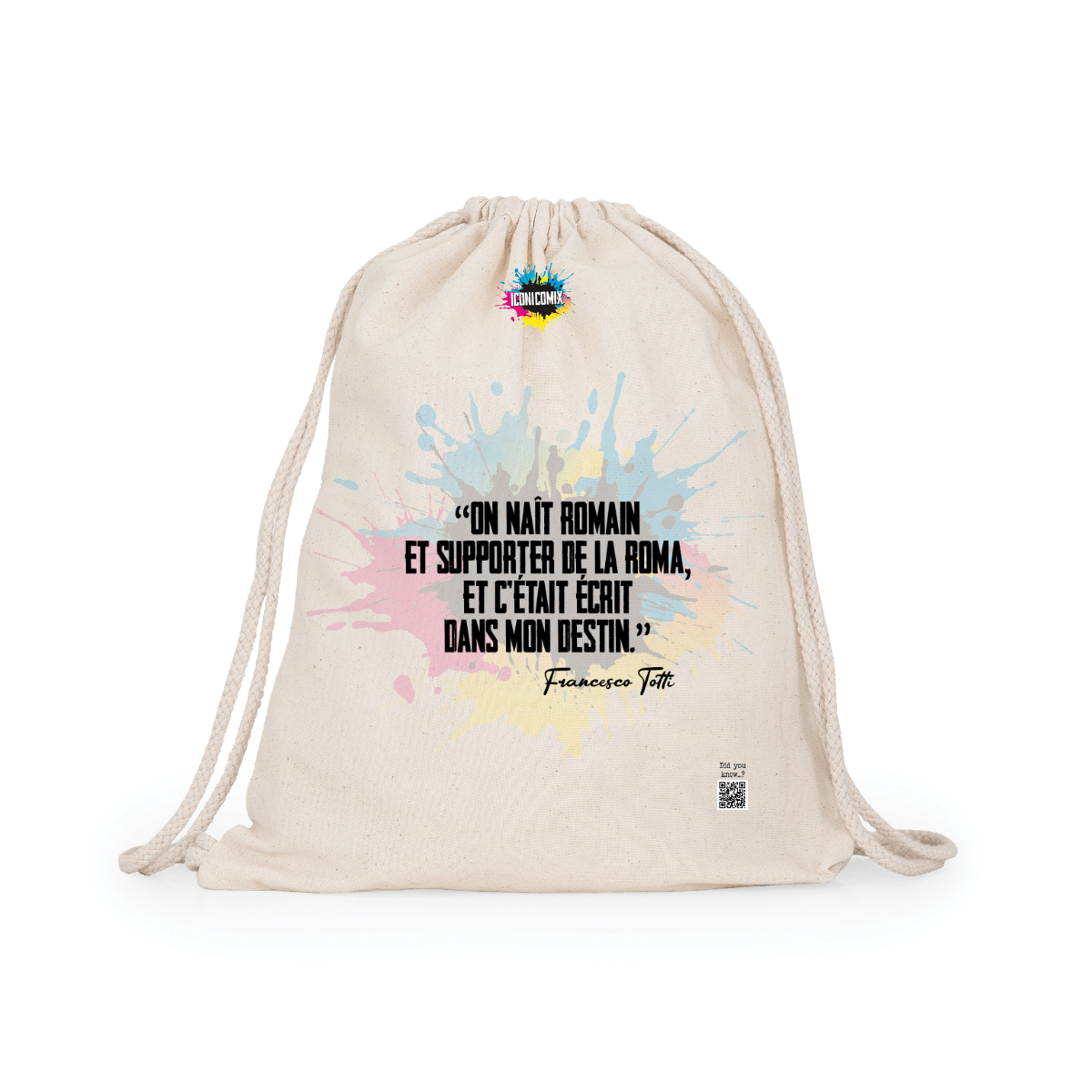 Sac à dos polyvalent en coton. Cordons réglables assortis à l'arrière, d'une épaisseur de 8 mm. 100 % coton, 140 g/m².  Dimensions 37 cm / 41 cm